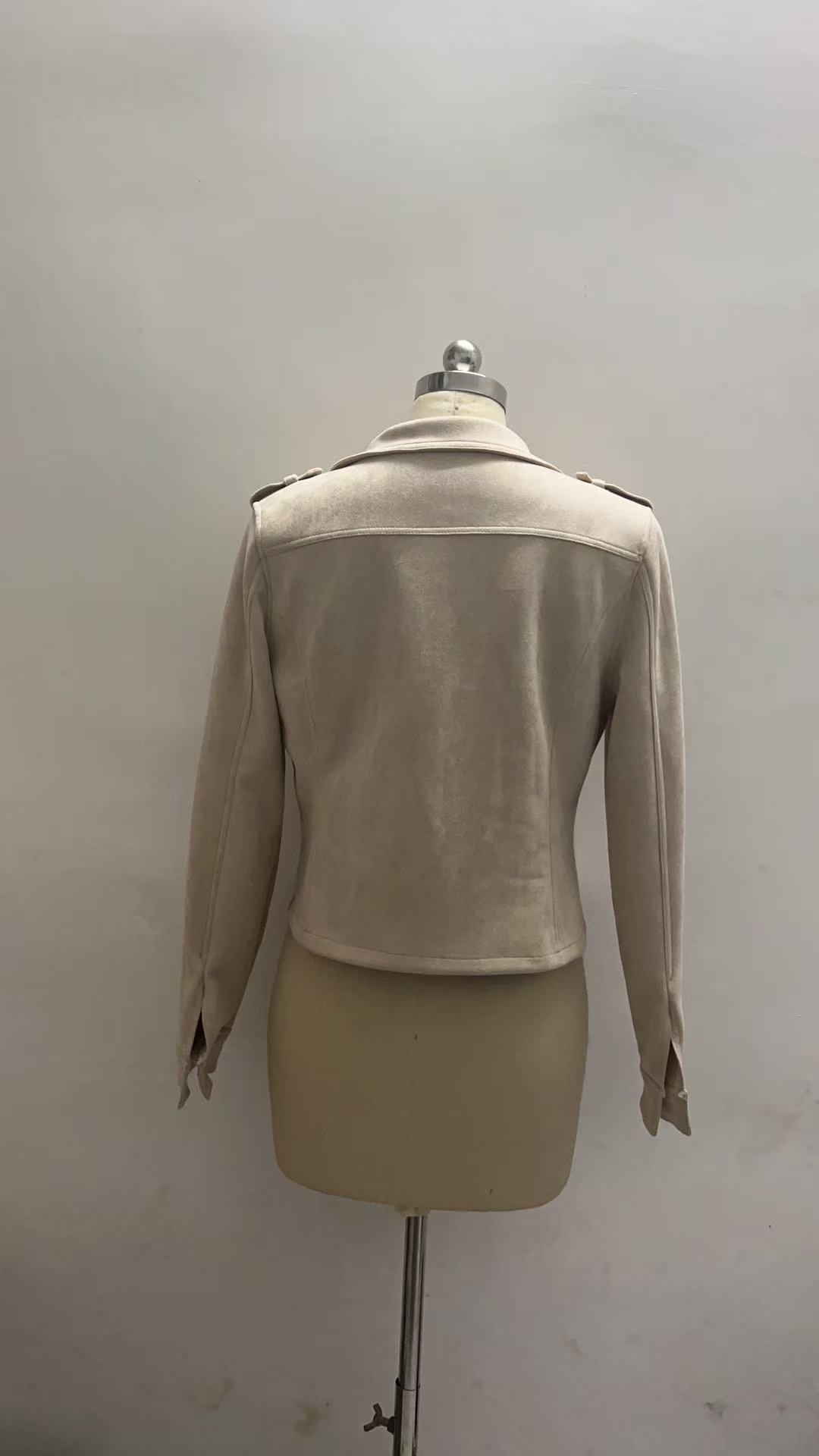 Chaqueta corta con cremallera y parte superior de terciopelo de piel de ciervo con cremallera oblicua europea y americana de Amazon AliExpress.