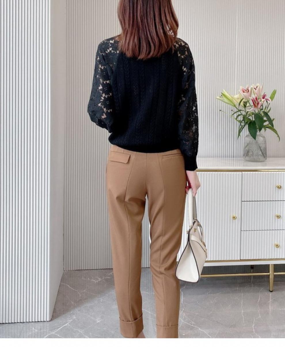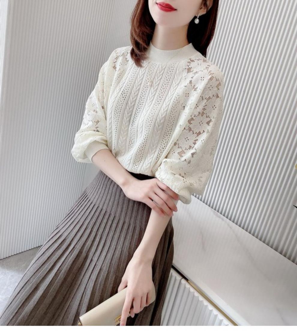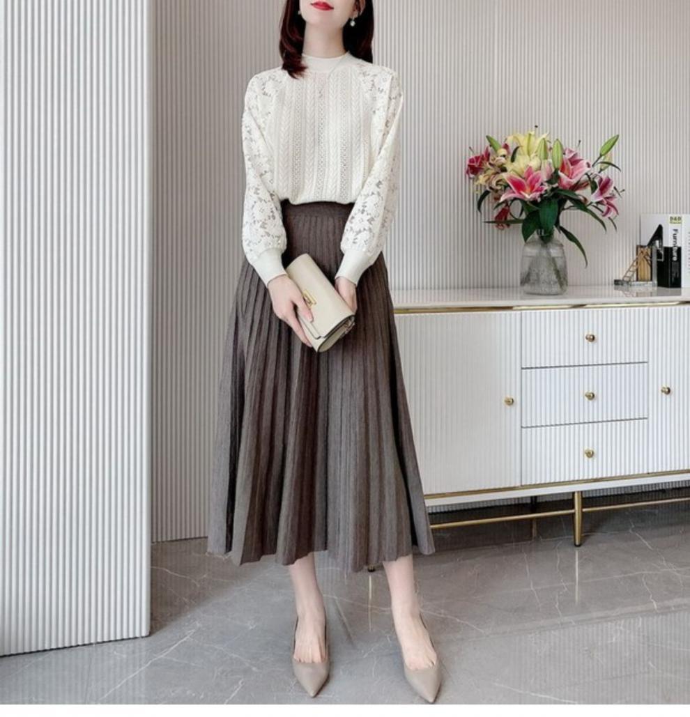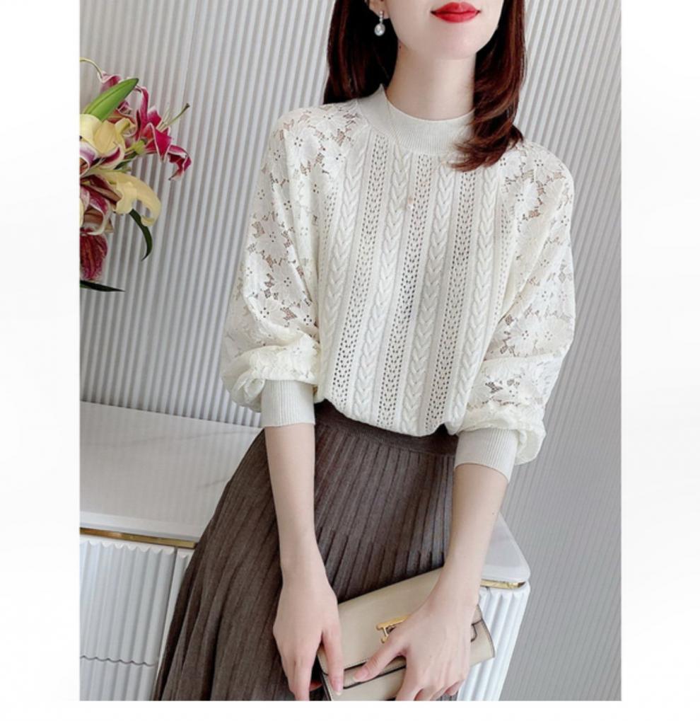2024 Mercancía de Cola Francesa Filtrada Ropa de Mujer Original Único Retiro Encaje Empalmado Fondo Prendas de Punto Exteriores para Mujer
