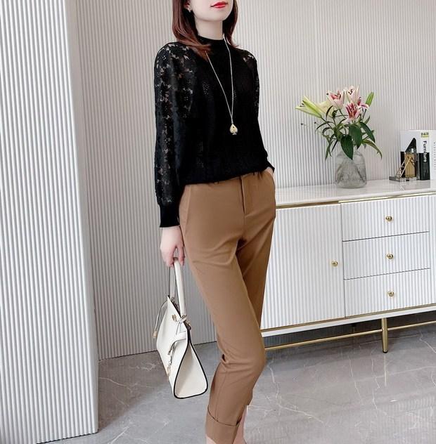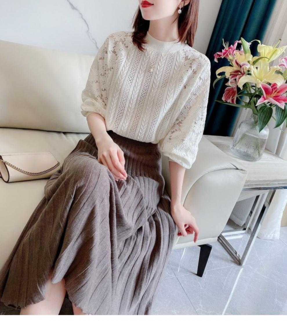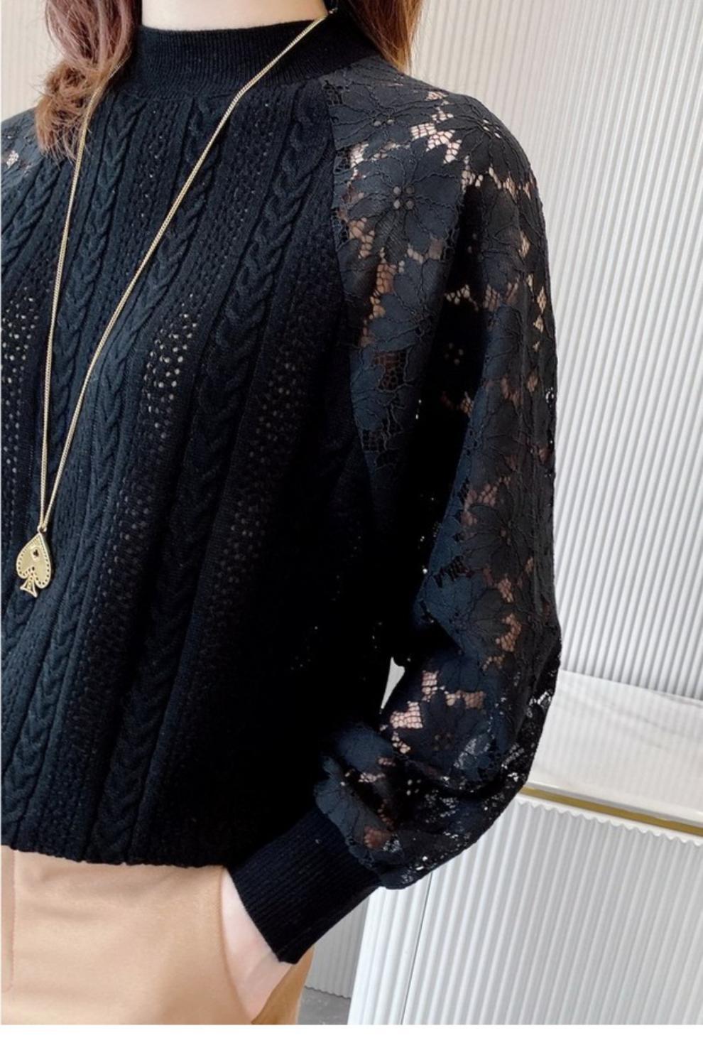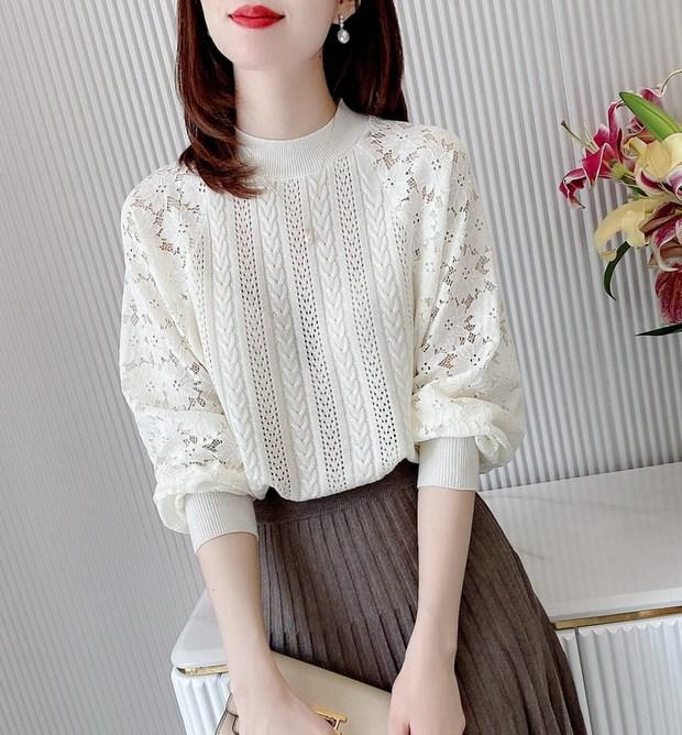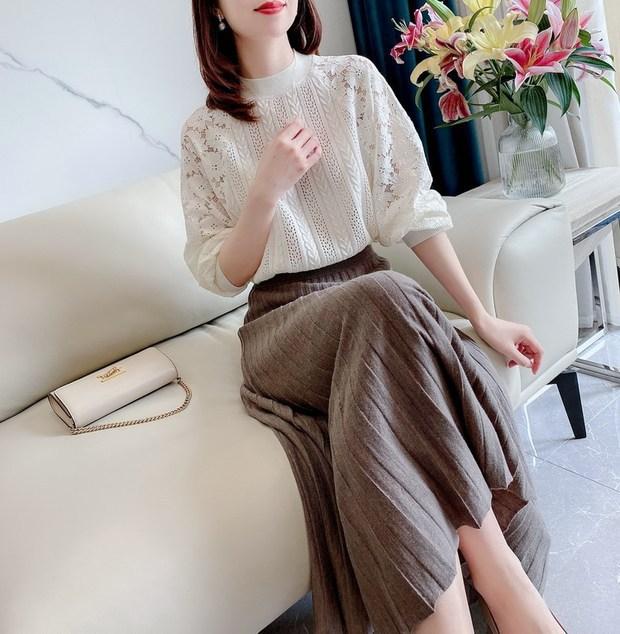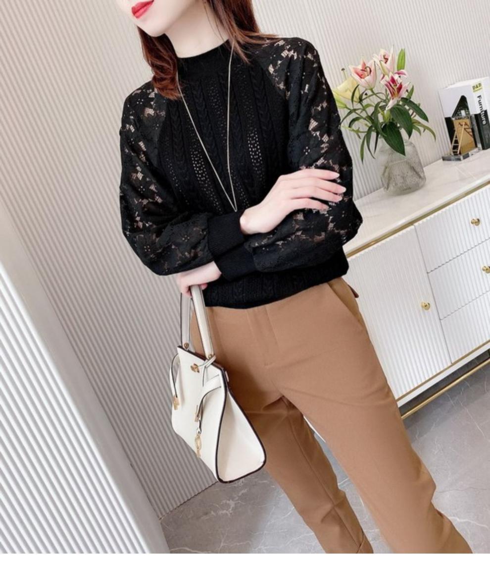 2024 Mercancía de Cola Francesa Filtrada Ropa de Mujer Original Único Retiro Encaje Empalmado Fondo Prendas de Punto Exteriores para Mujer
