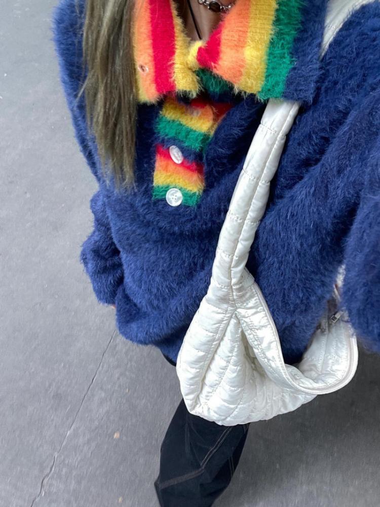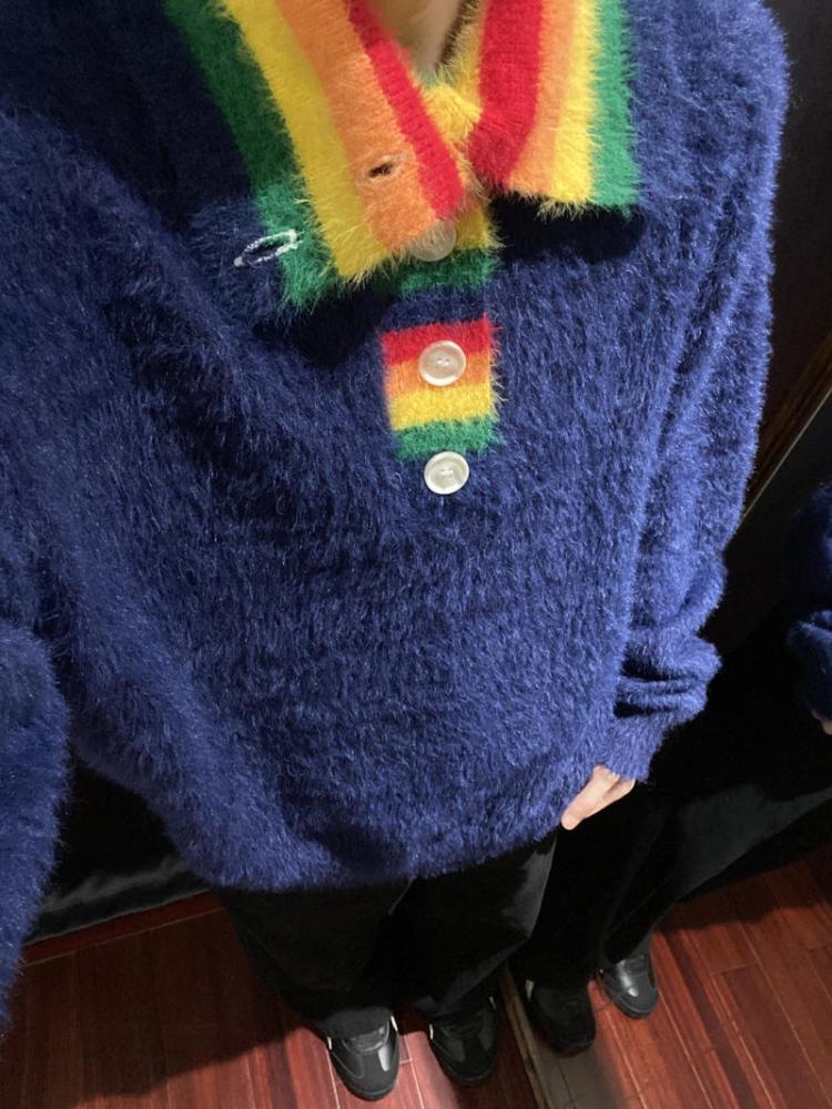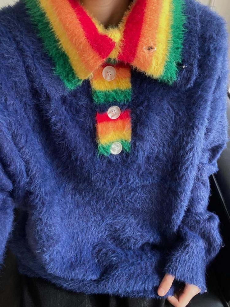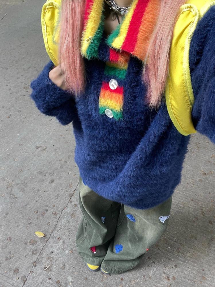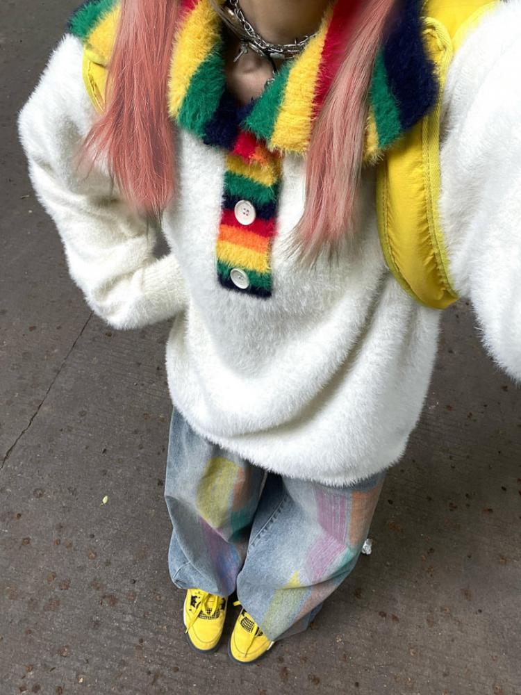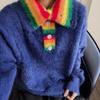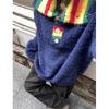 Suéter de Punto de Lana Arcoíris con Cuello en V para Mujer Otoño e Invierno Diseño de Estilo Holgado Perezoso Niche Suéter Pulóver Top