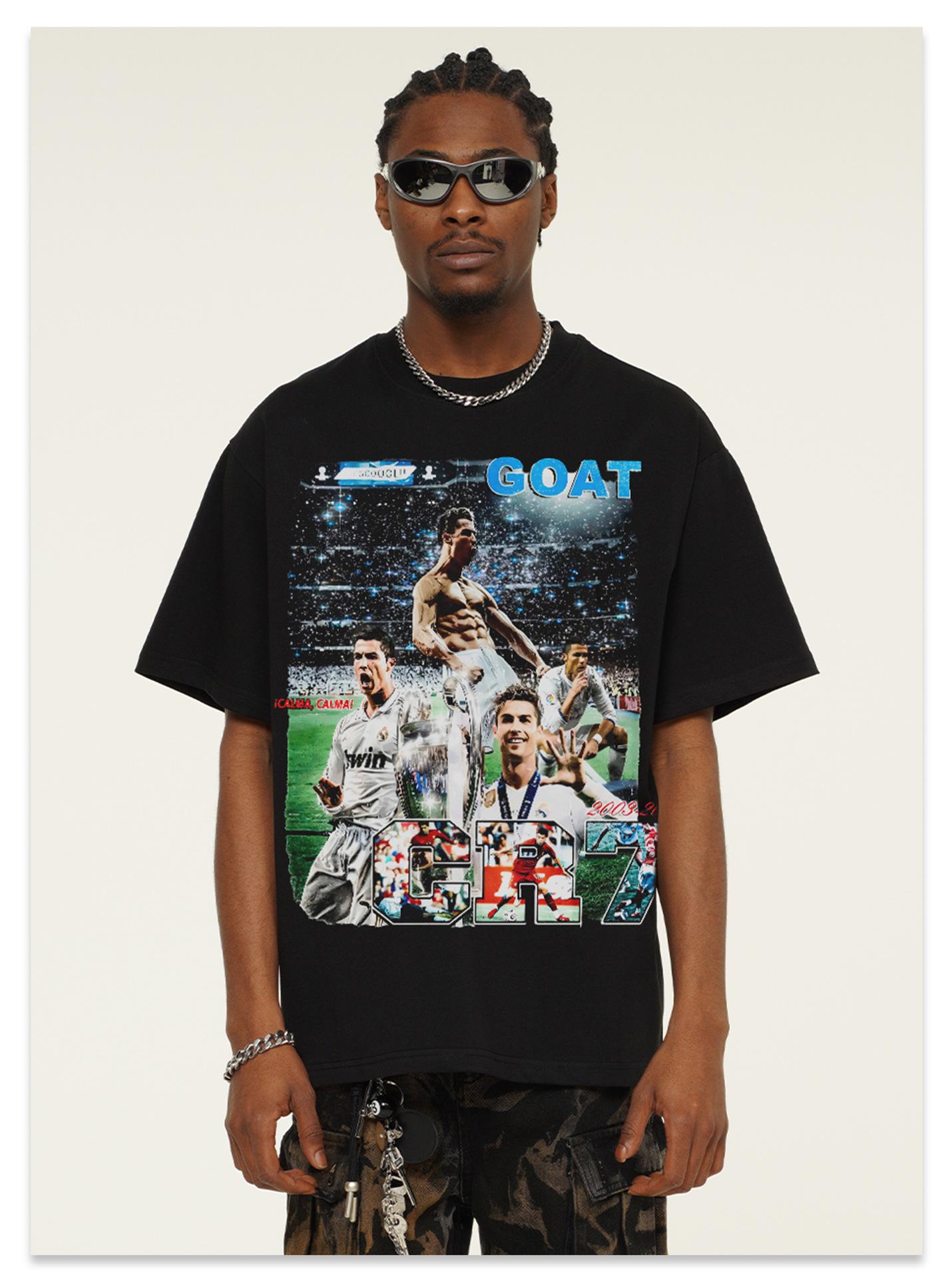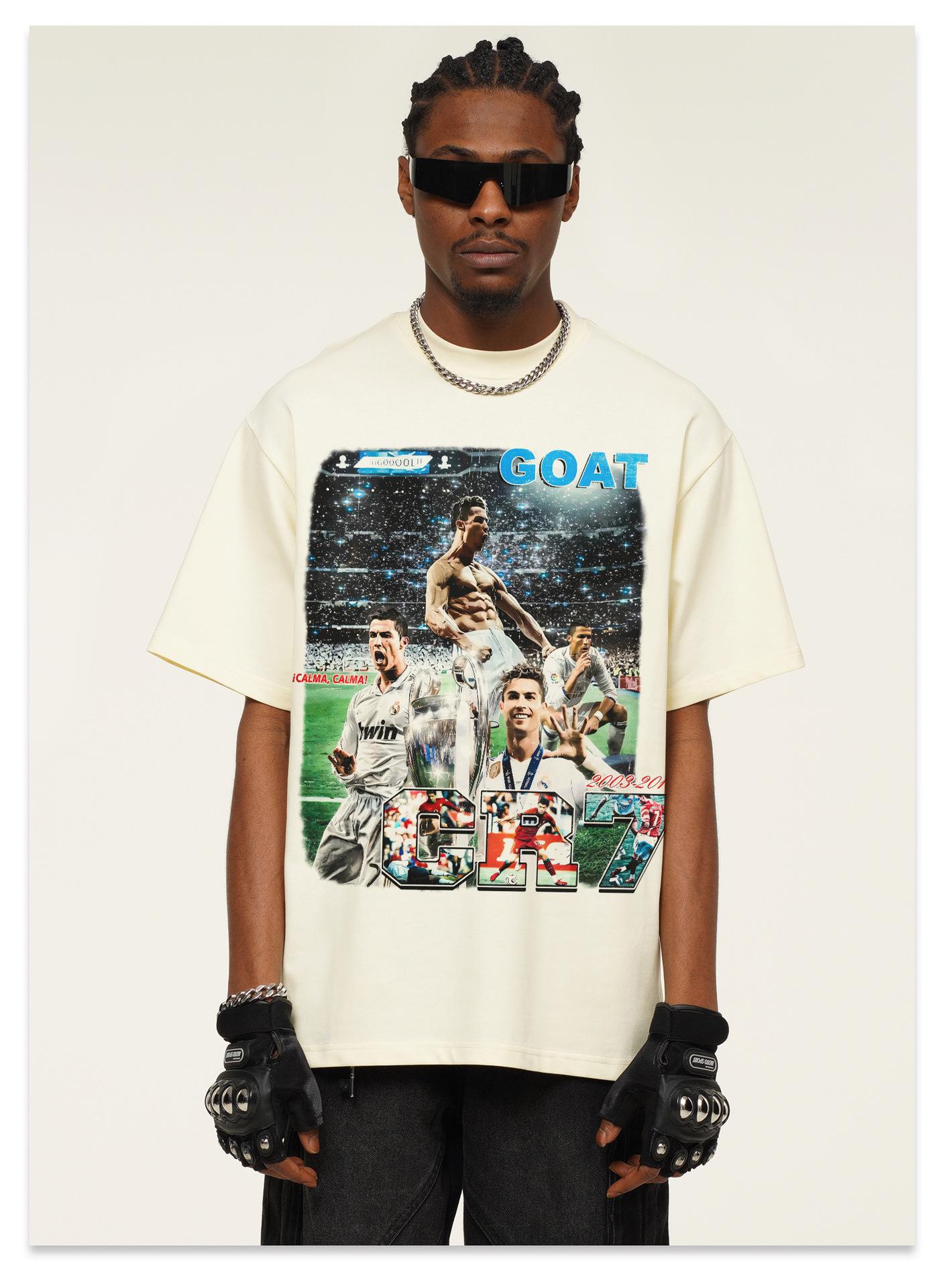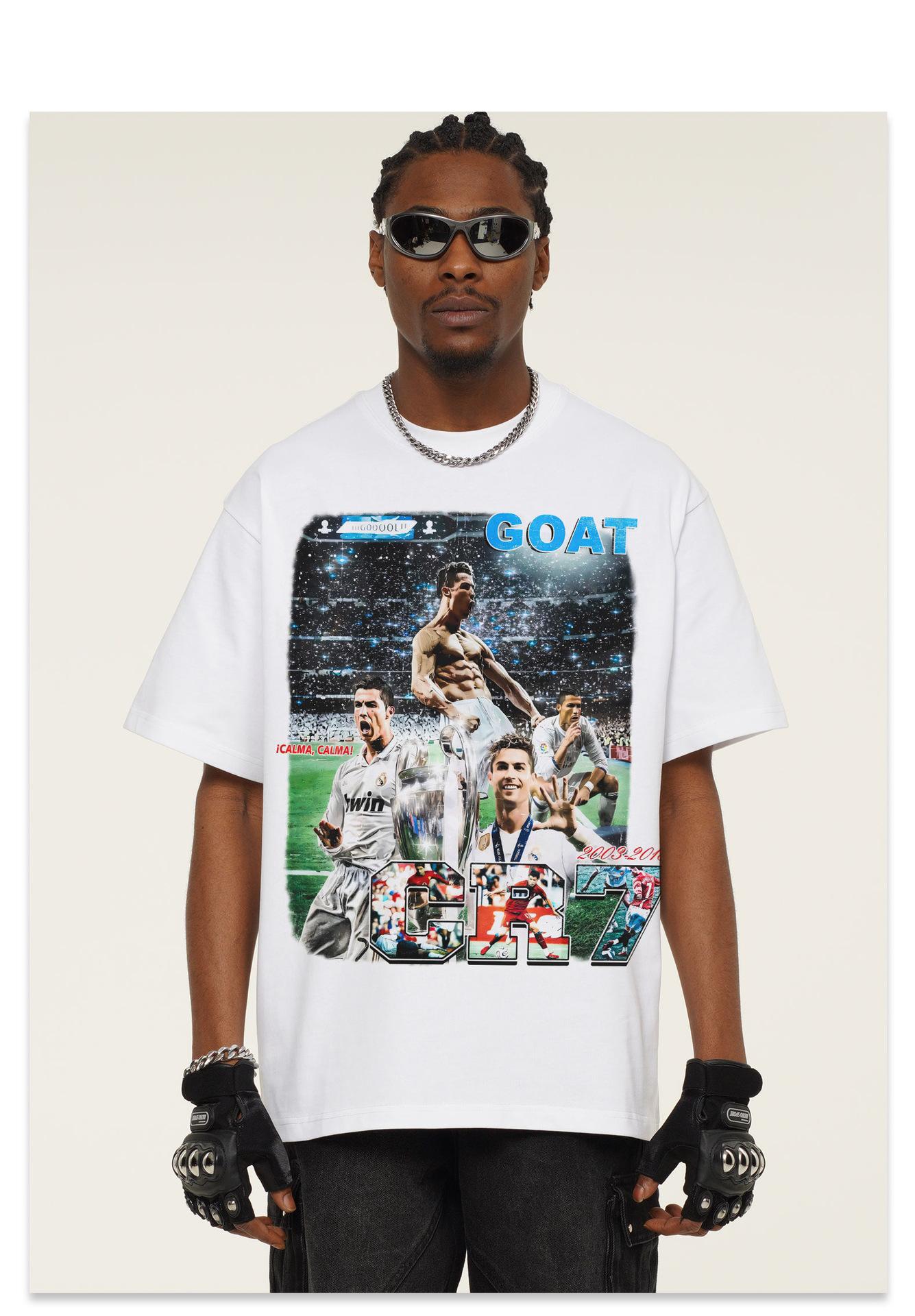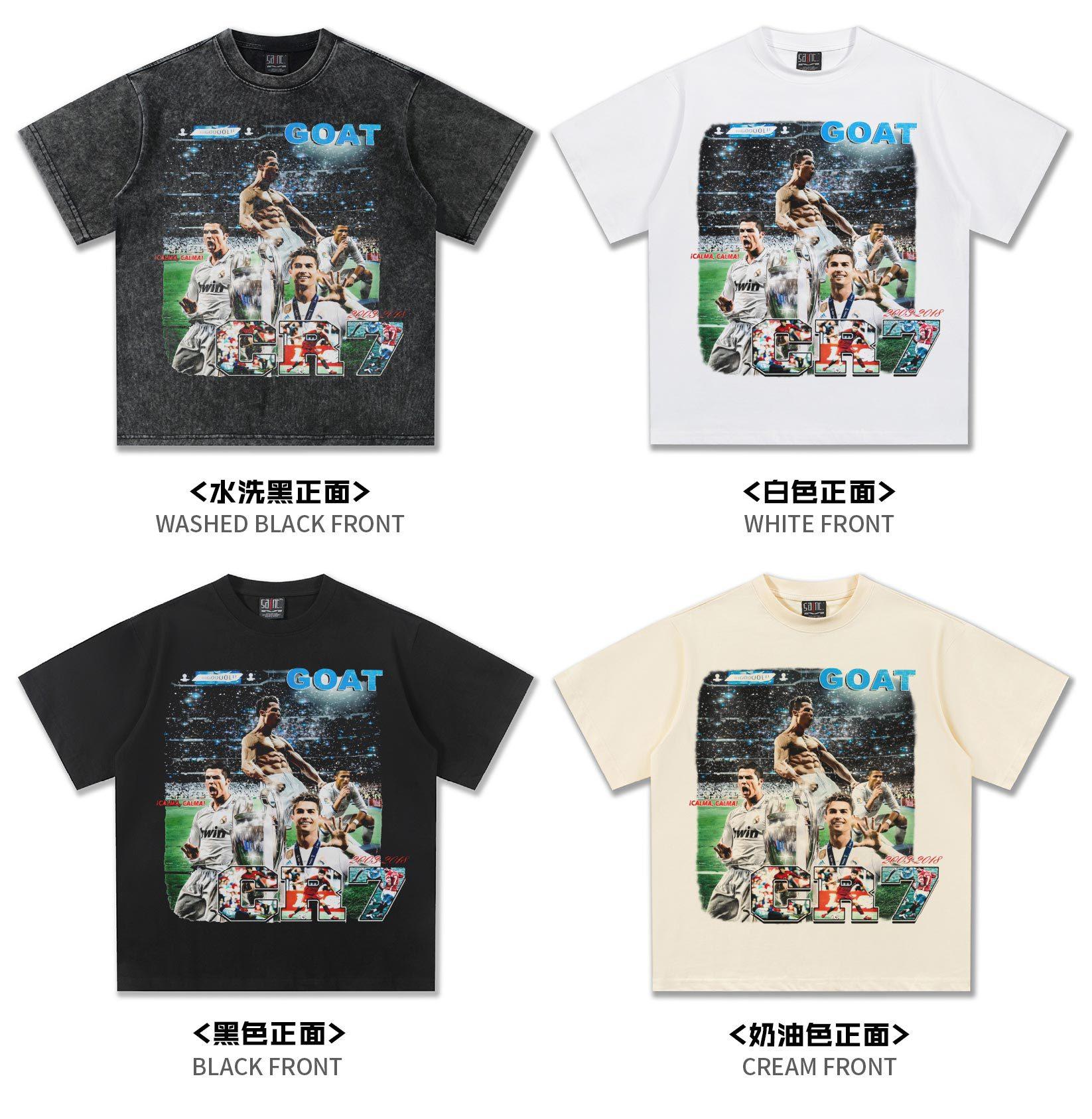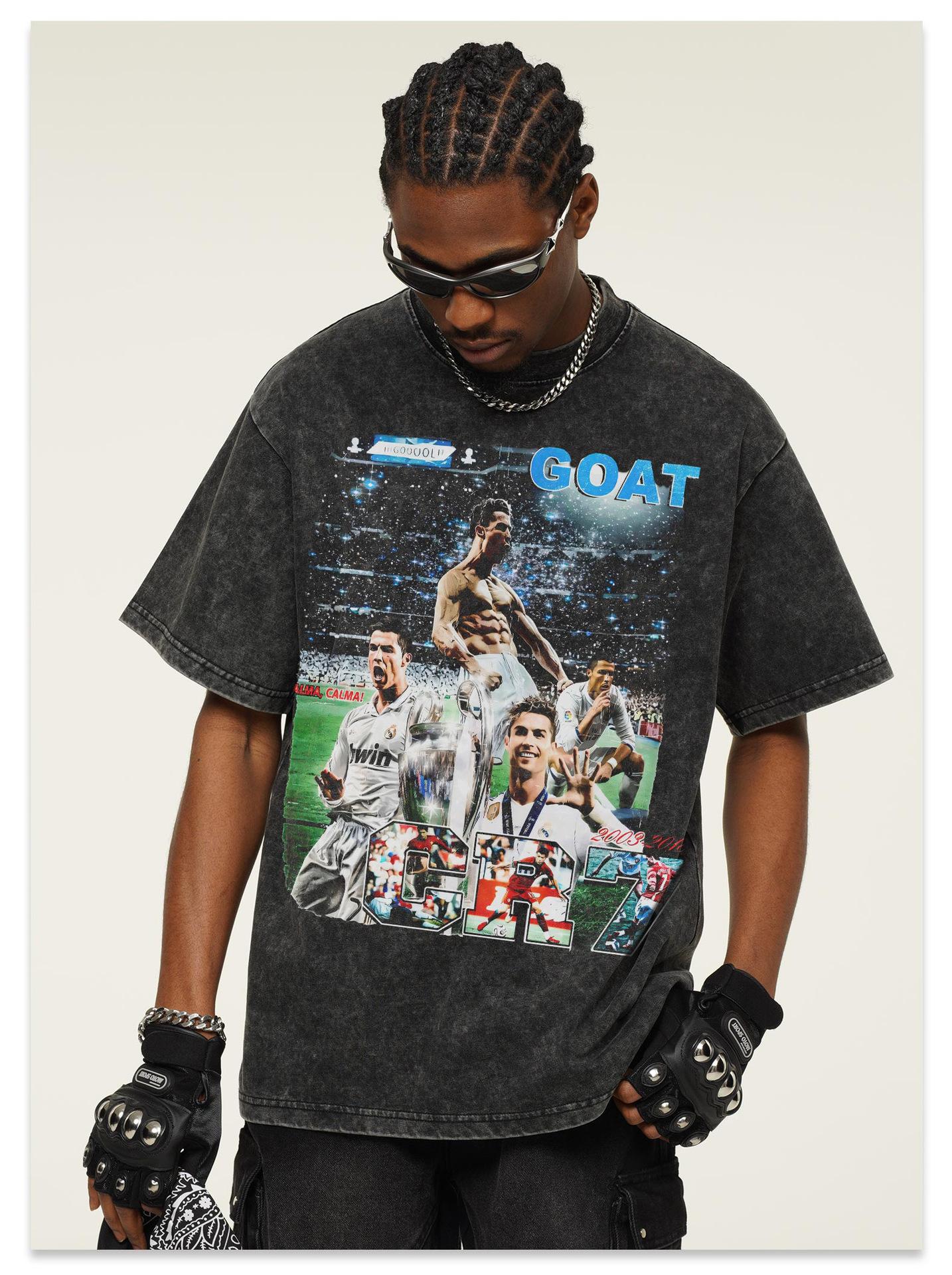 Camiseta de manga corta lavada de CR7 de fútbol, nueva, transfronteriza, 2025, de algodón pesado, estilo vintage americano, moderna.