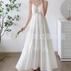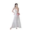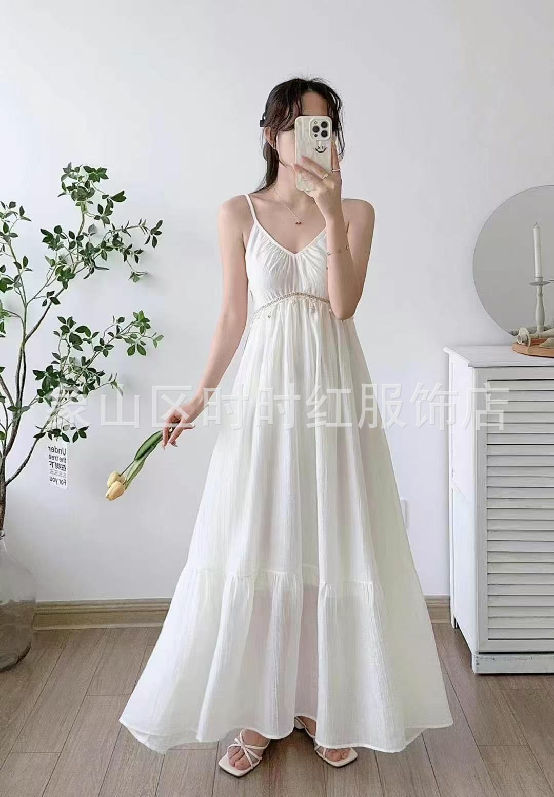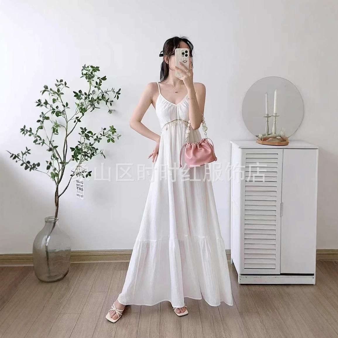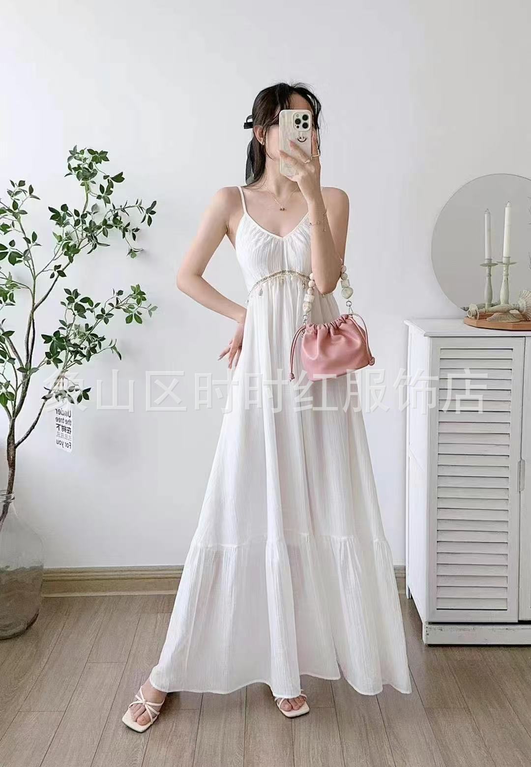 Vestido de vacaciones nuevo 2025, elegante, de diseño social, francés, con escote en V, sexy, sin espalda, con tirantes para mujer