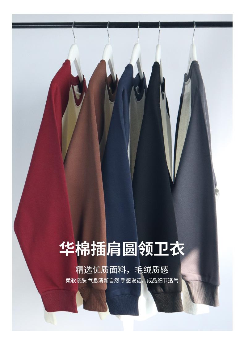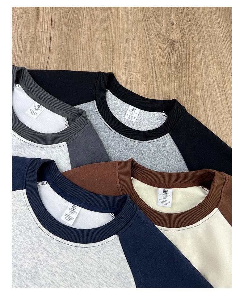 Sudadera de cuello redondo de 300 g con costuras retro americanas pesadas, jersey, hombro, manga larga, color contrastante, chaqueta para pareja de hombre y mujer
