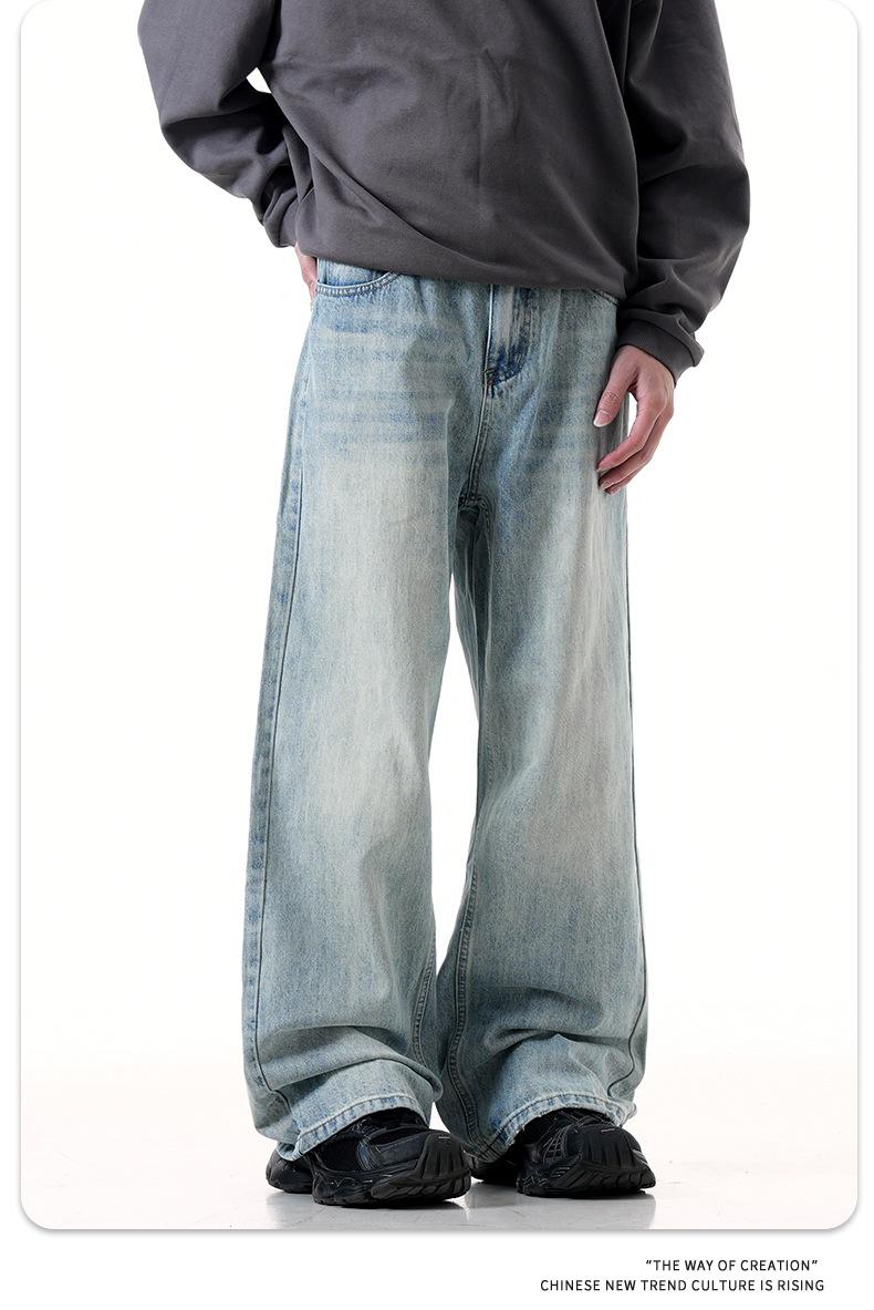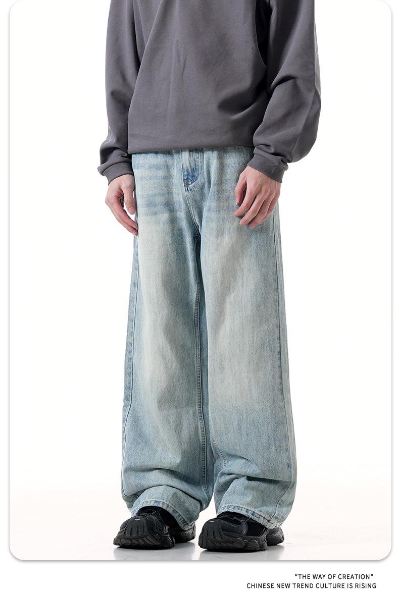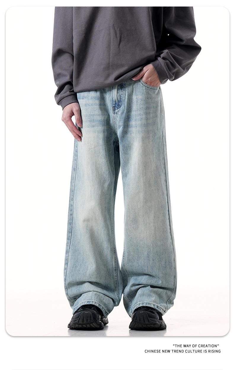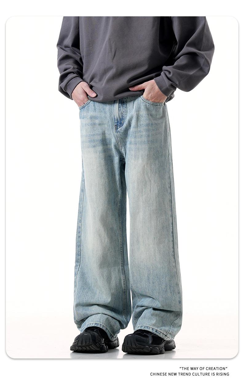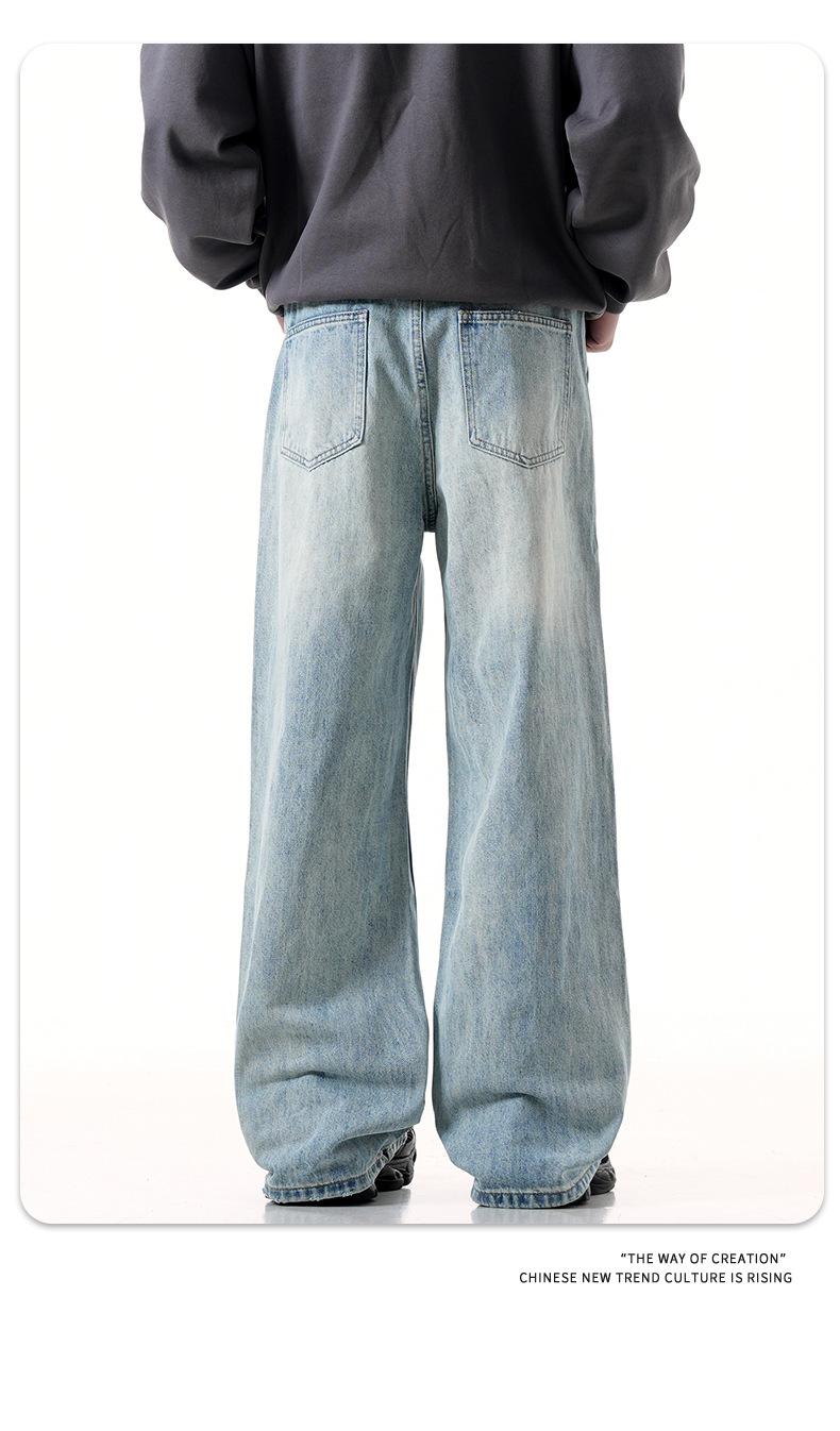 Jeans azules retro de calle europeos y americanos para hombre American high street lavado al agua viejo rectos te hacen lucir delgado pantalones anchos sueltos