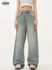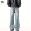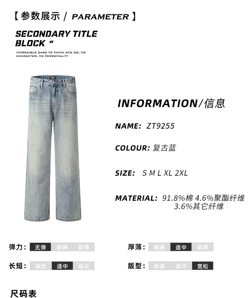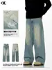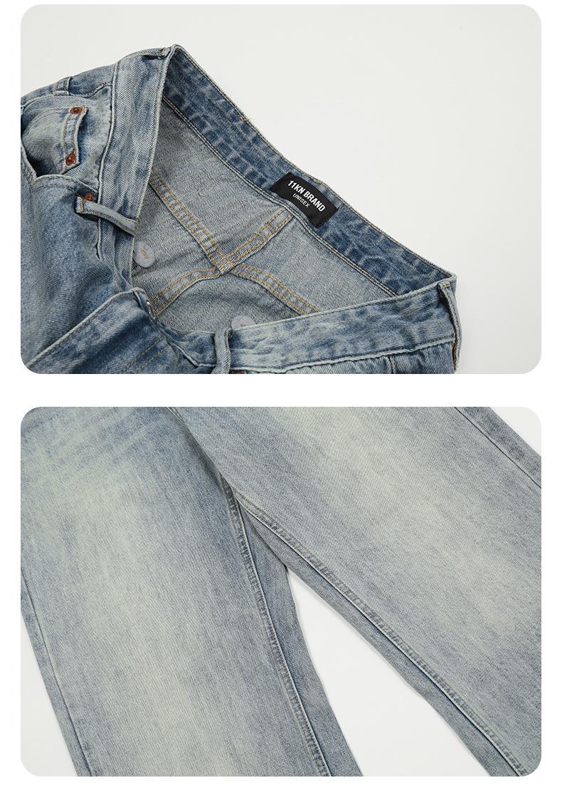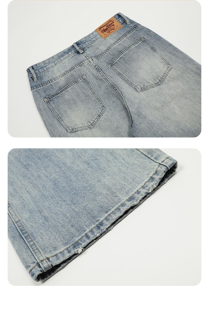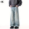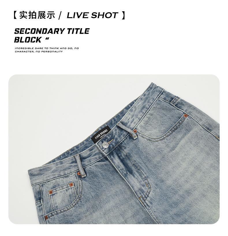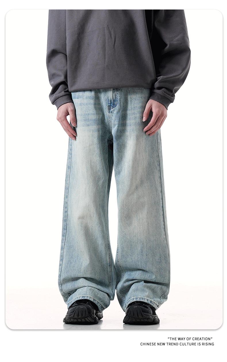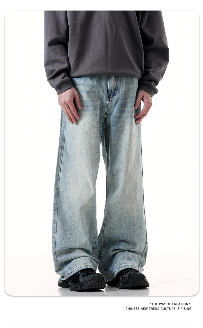 Jeans azules retro de calle europeos y americanos para hombre American high street lavado al agua viejo rectos te hacen lucir delgado pantalones anchos sueltos