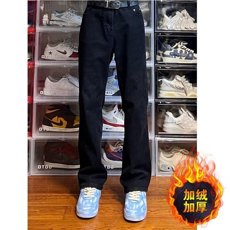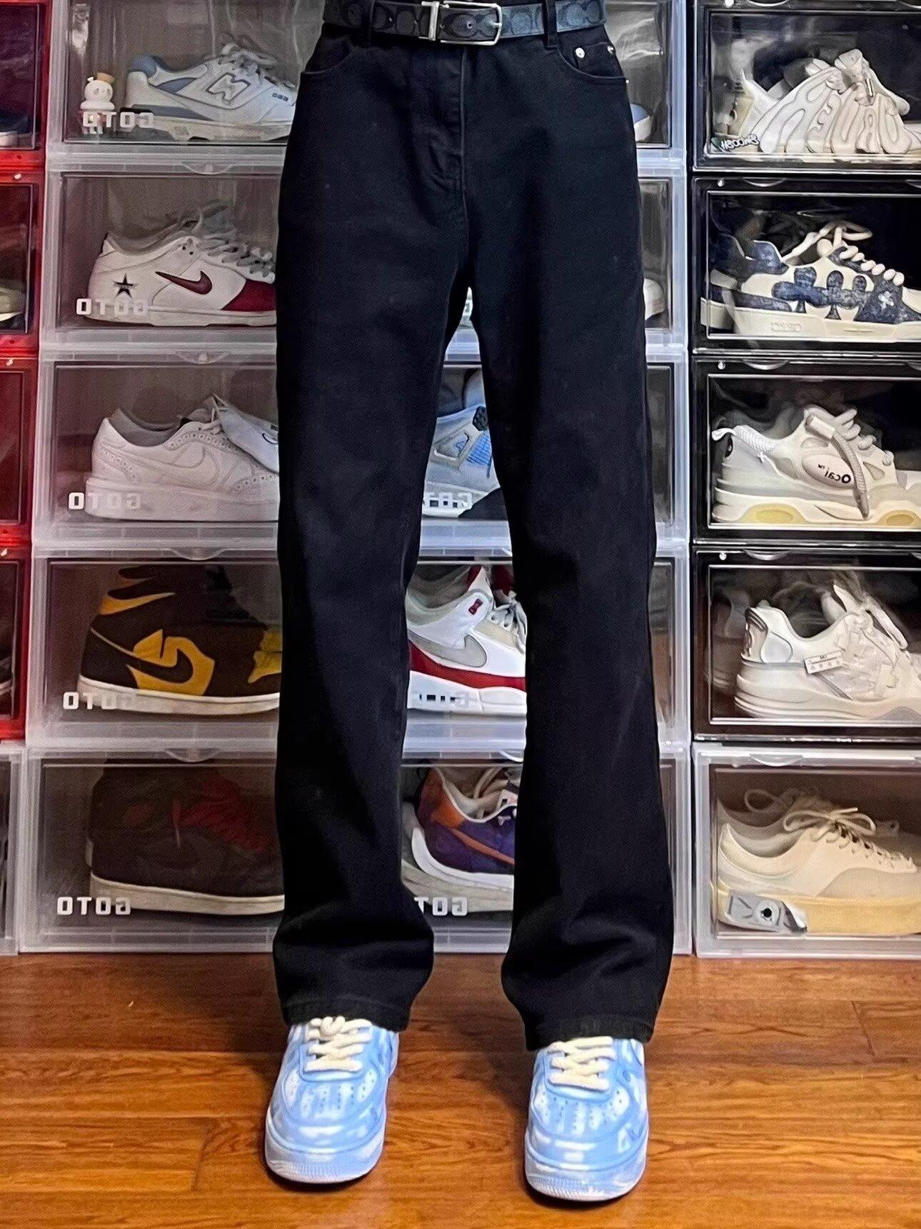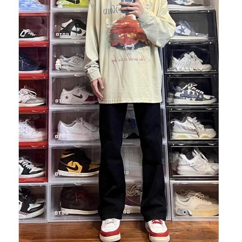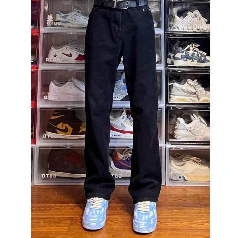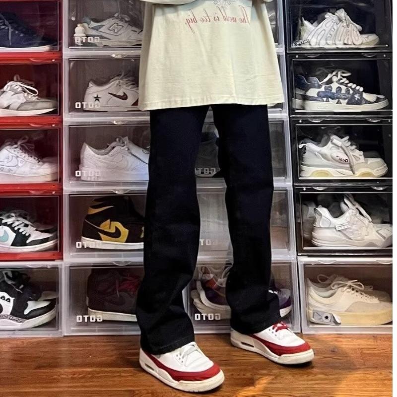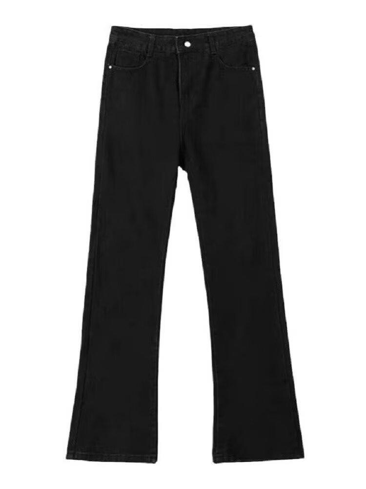 Vaqueros de pierna ancha lavados negros estilo americano High Street para hombre y mujer, vaqueros casuales adelgazantes de microlazo para primavera y otoño.