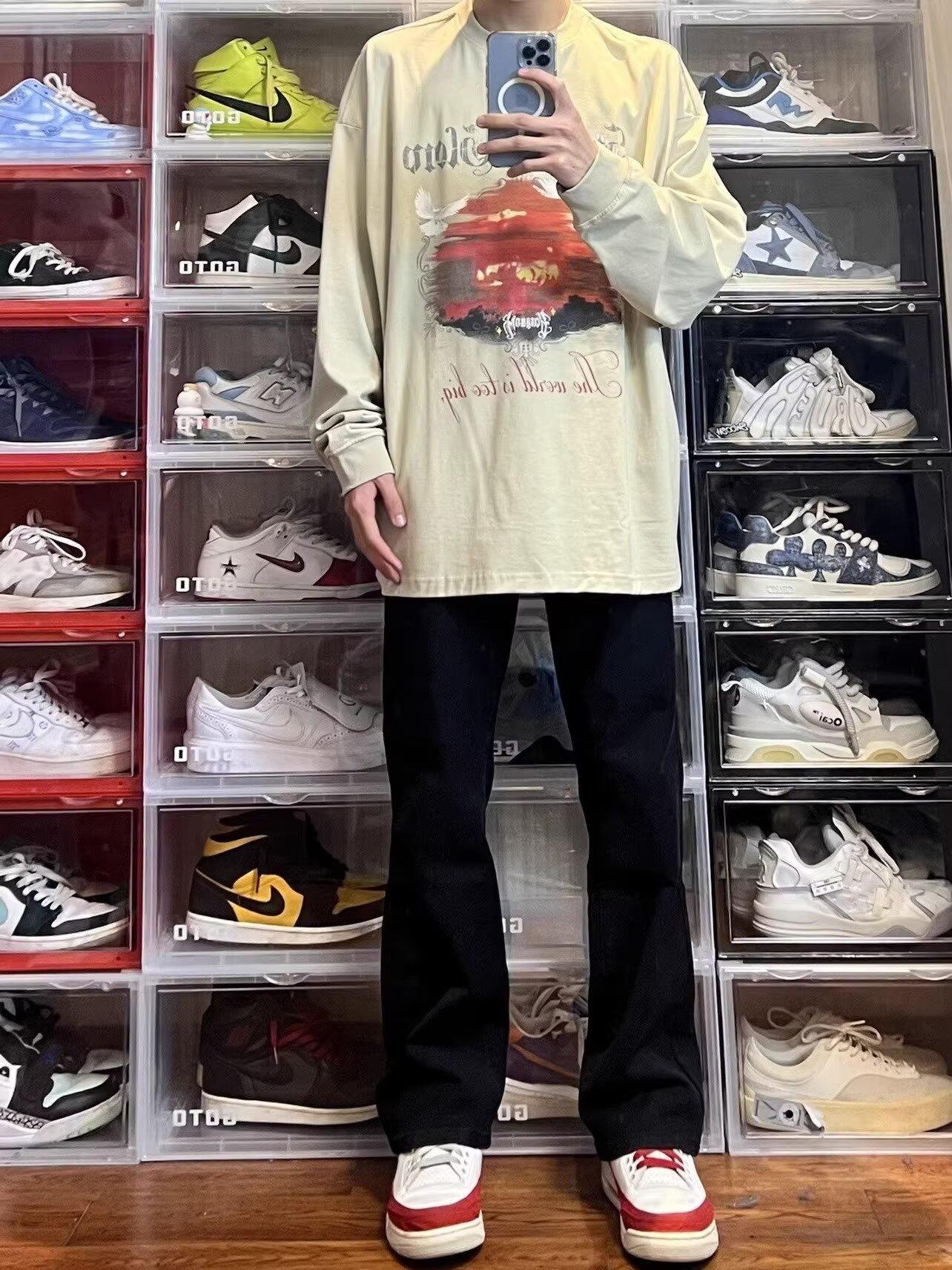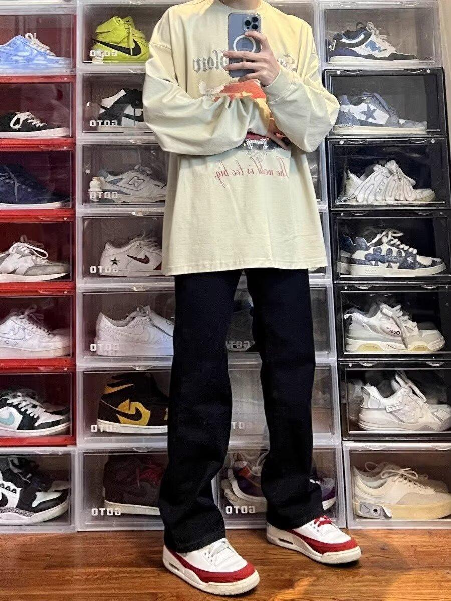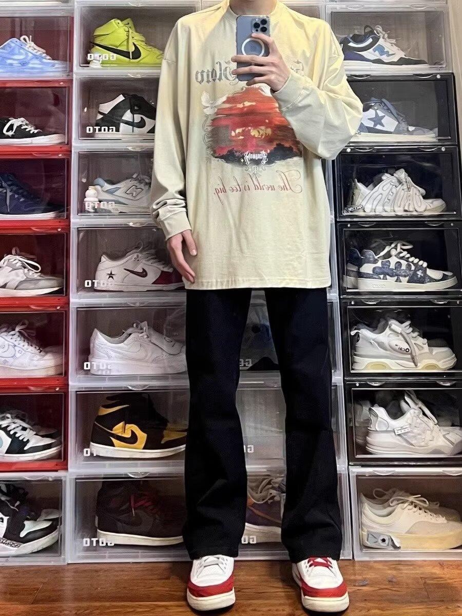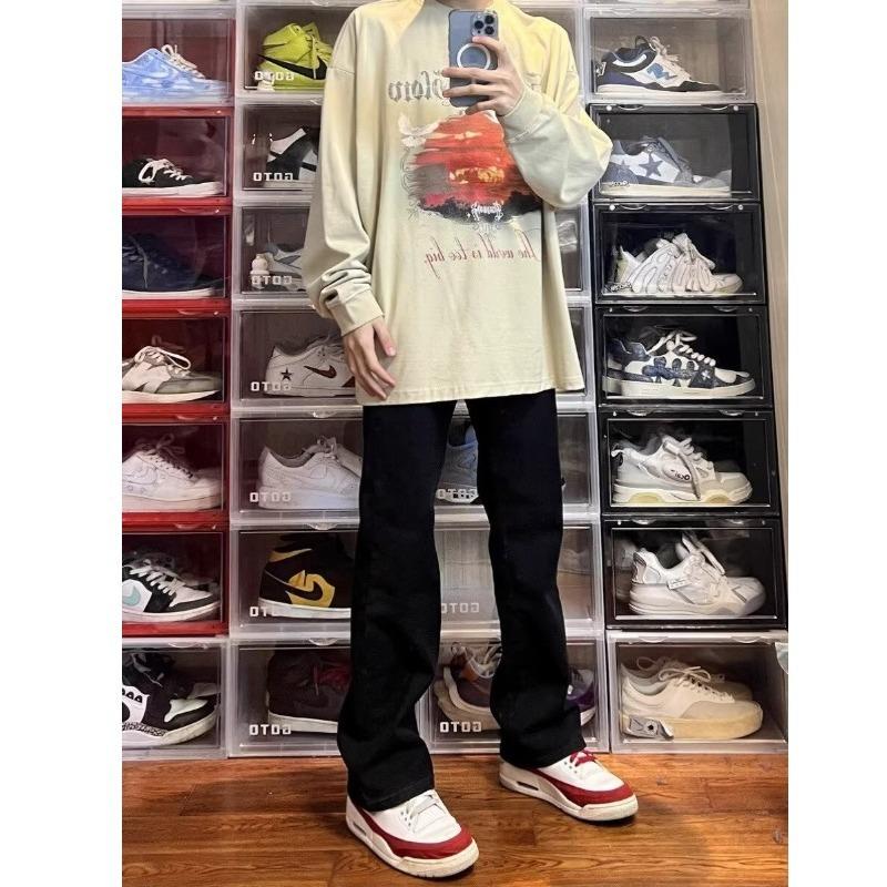 Vaqueros de pierna ancha lavados negros estilo americano High Street para hombre y mujer, vaqueros casuales adelgazantes de microlazo para primavera y otoño.