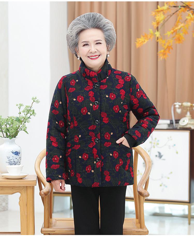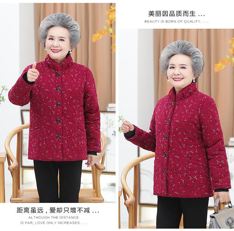 Ropa para mujeres de mediana edad y mayores, chaqueta acolchada de algodón de la abuela de los años 70, ropa de invierno para la anciana, abrigo de otoño para madre, ropa de algodón engrosada para anciana
