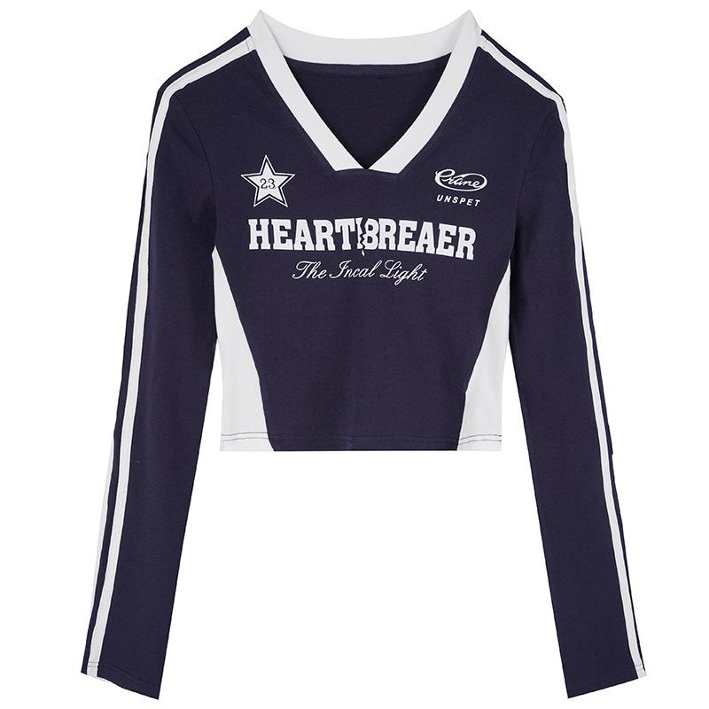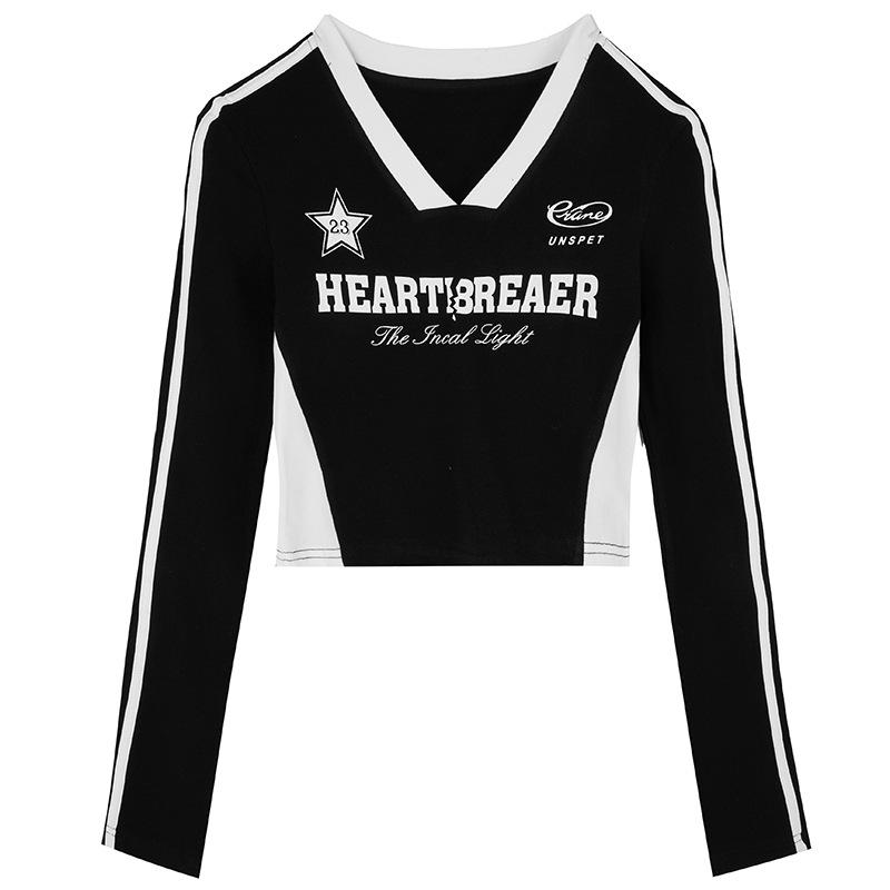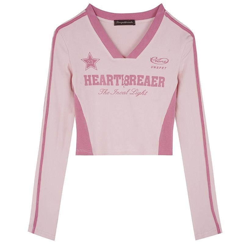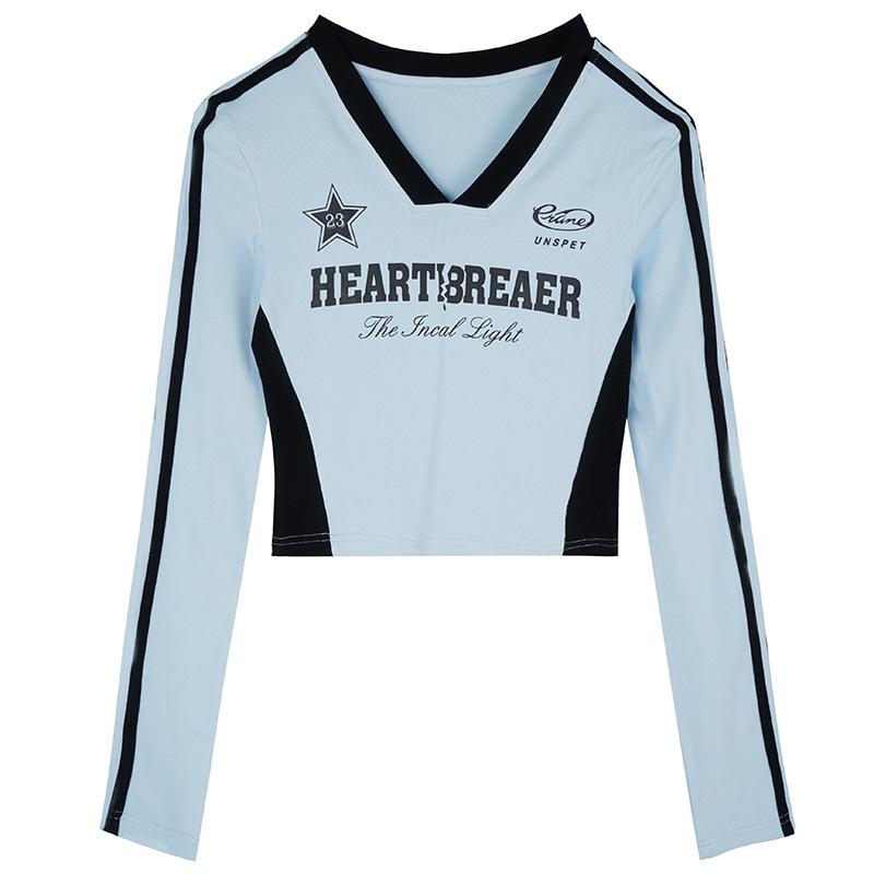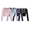 Ropa Marca de Moda para Hombre Estilo Americano Distintivo Spice Girl Cintura Ajustada Adelgazante Cuello en V Manga Larga Primavera y Otoño Camiseta para Exterior Estilo Pequeño