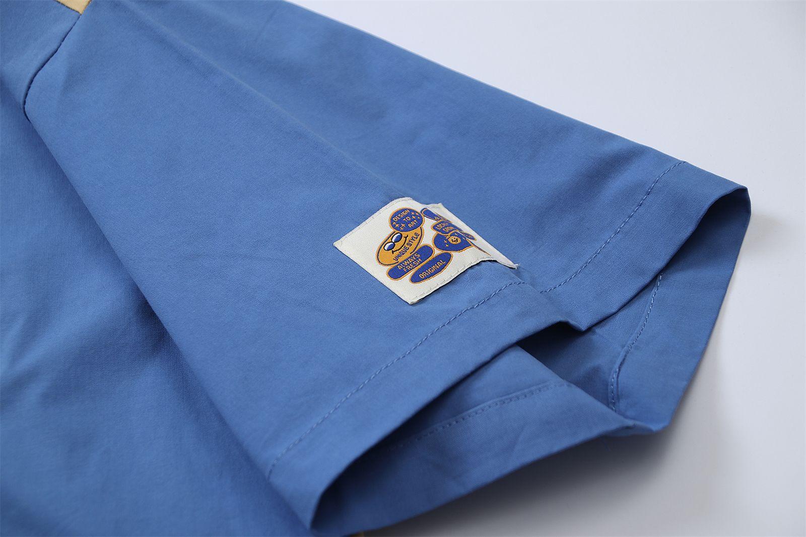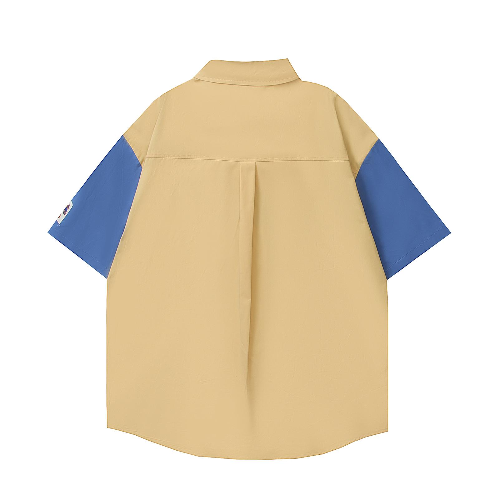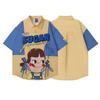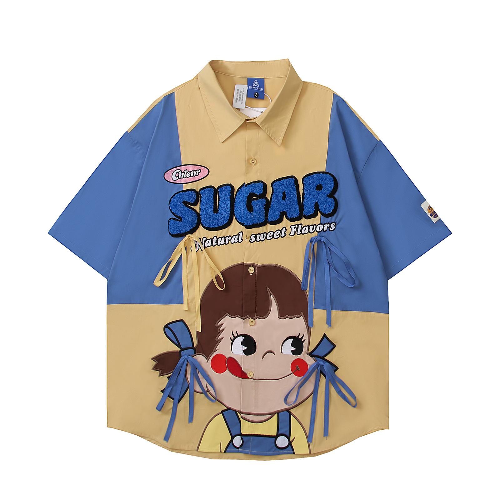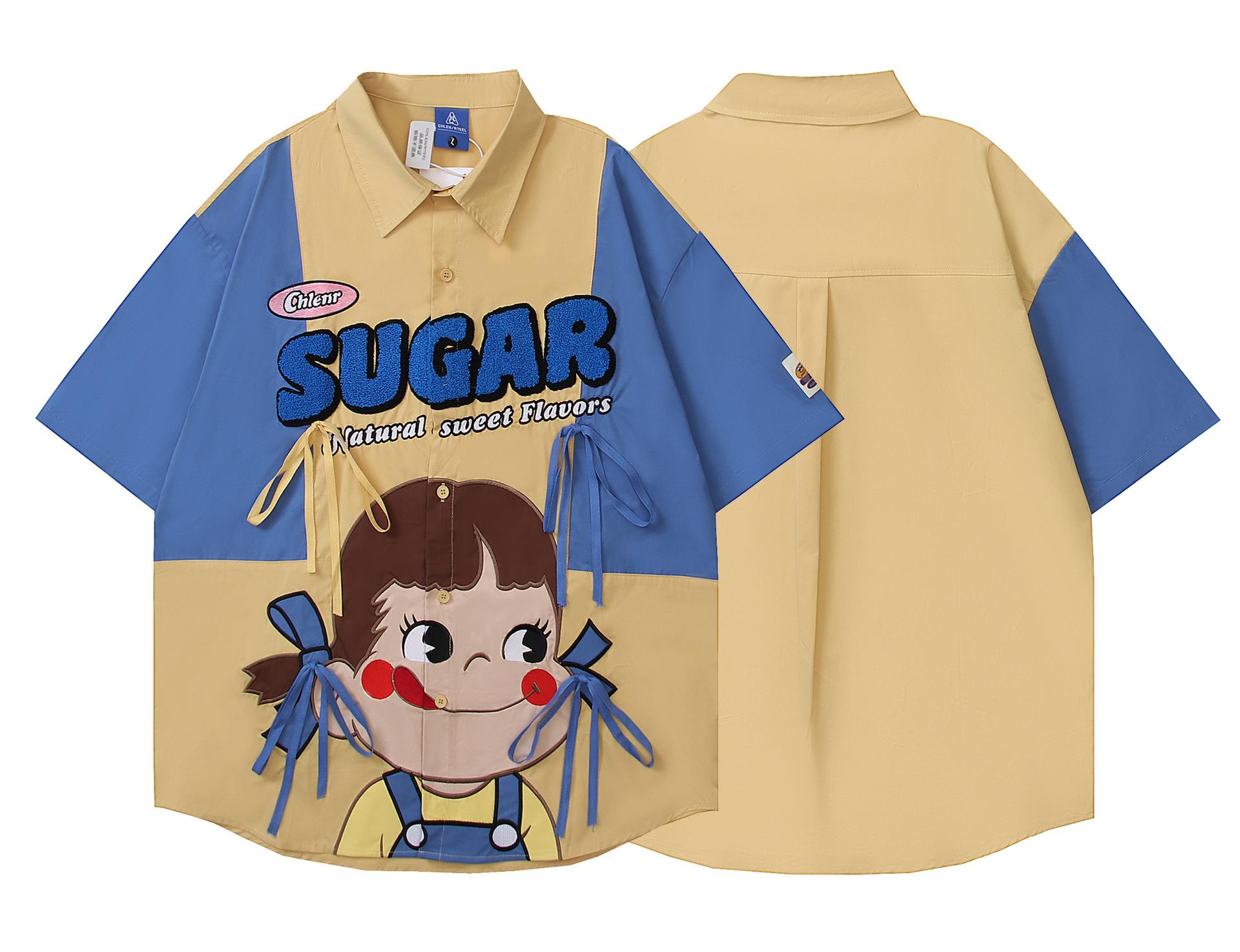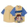 Camisa de manga corta bordada con dibujos animados de colores contrastantes, estilo americano, estilo retro, informal, holgada, para hombre y mujer, novedad de verano de 2025