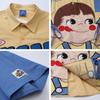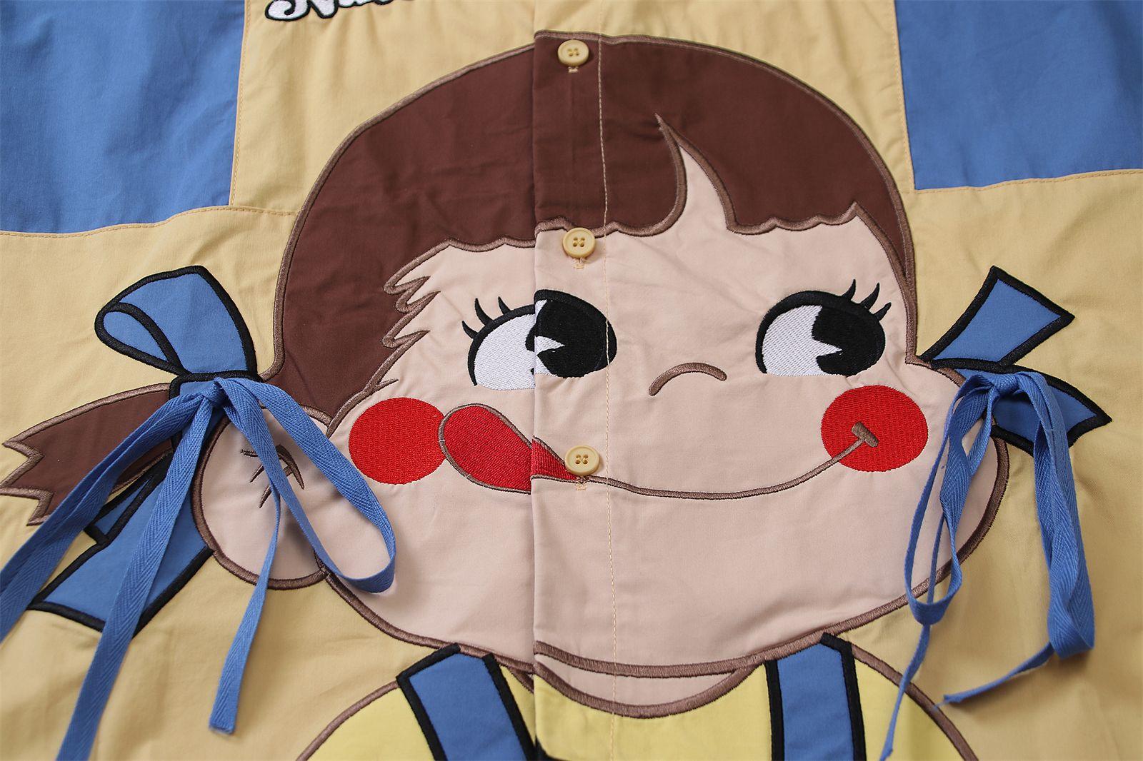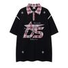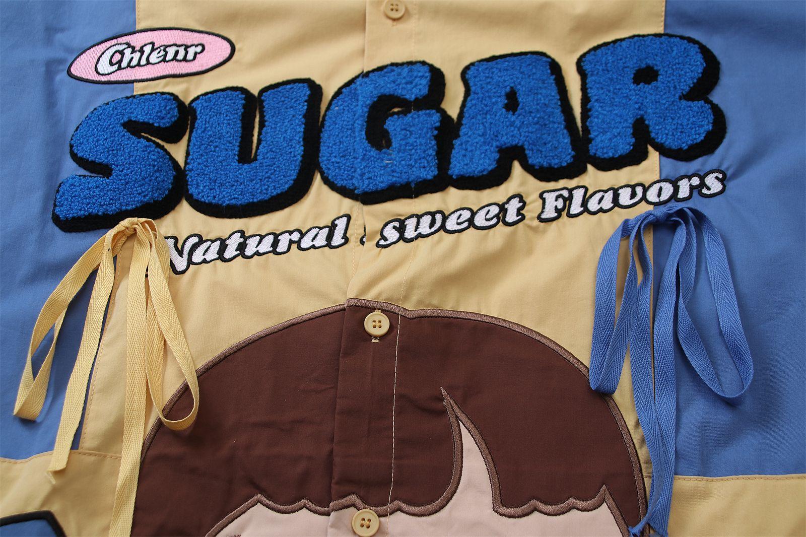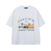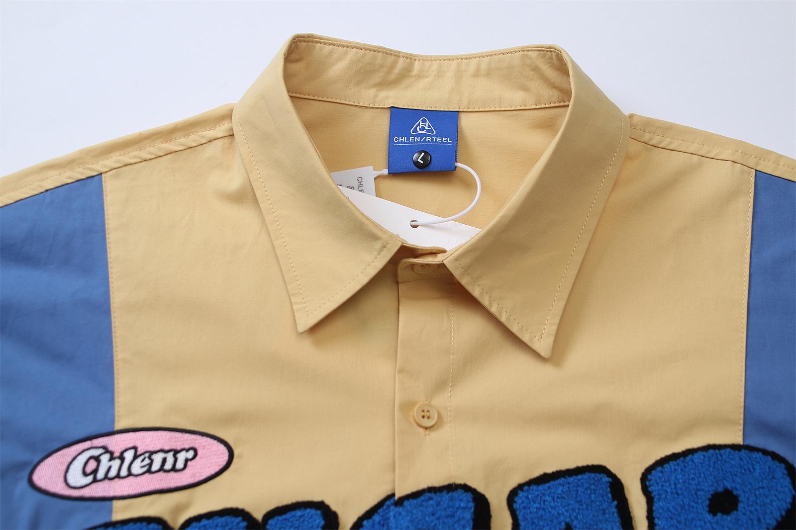Camisa de manga corta bordada con dibujos animados de colores contrastantes, estilo americano, estilo retro, informal, holgada, para hombre y mujer, novedad de verano de 2025