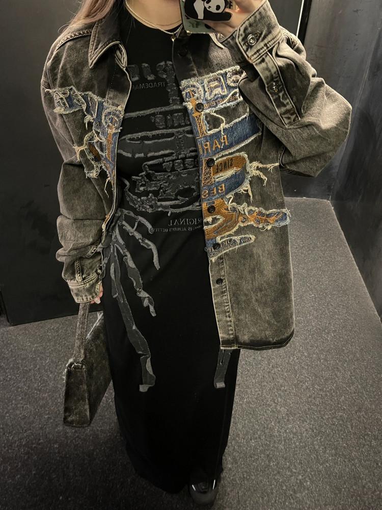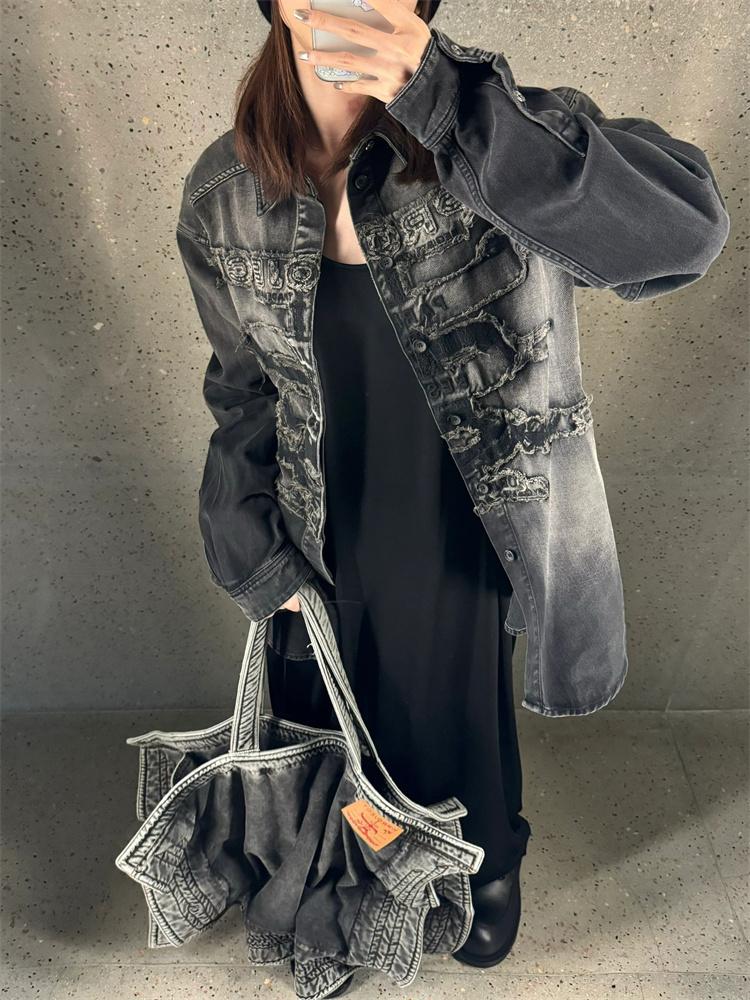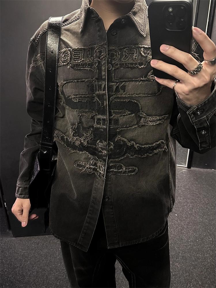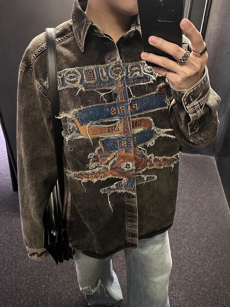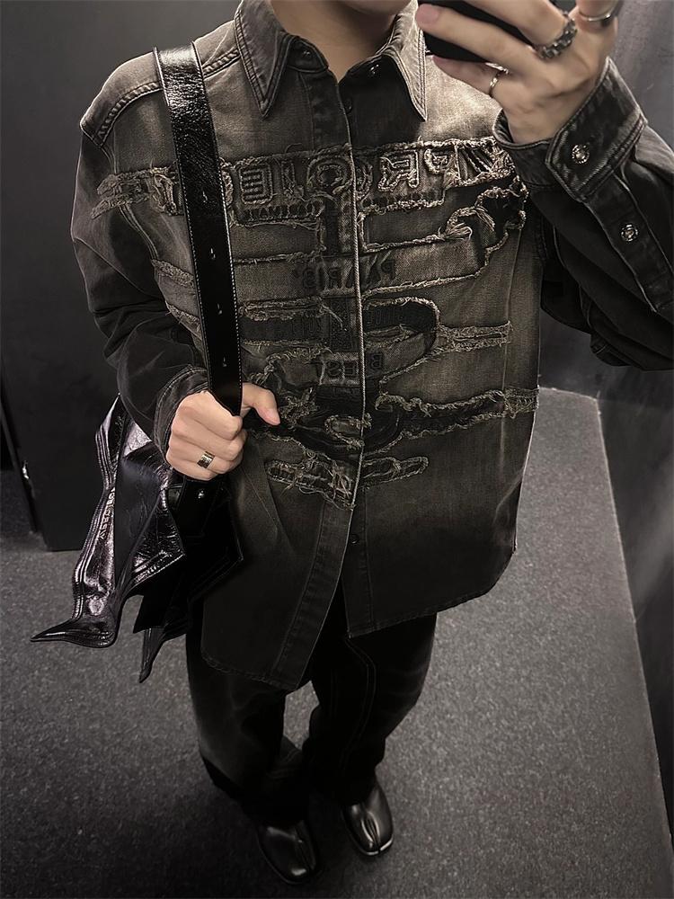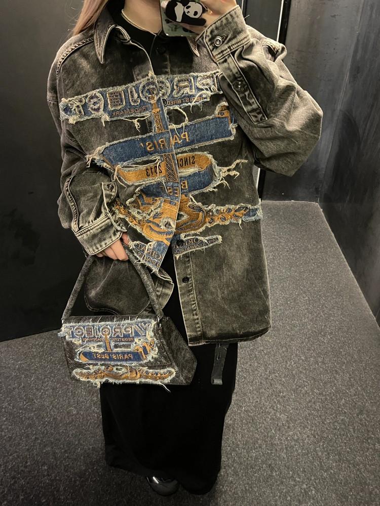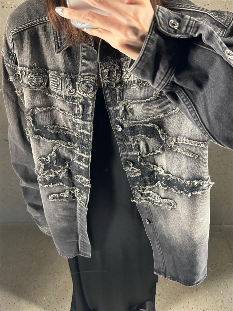 Moda Nuevo Show Acolchado Bordado Chaqueta de Mezclilla Abrigo Nicho Todo Combinable High Street Destrucción Camisa Manga Larga Otoño e Invierno