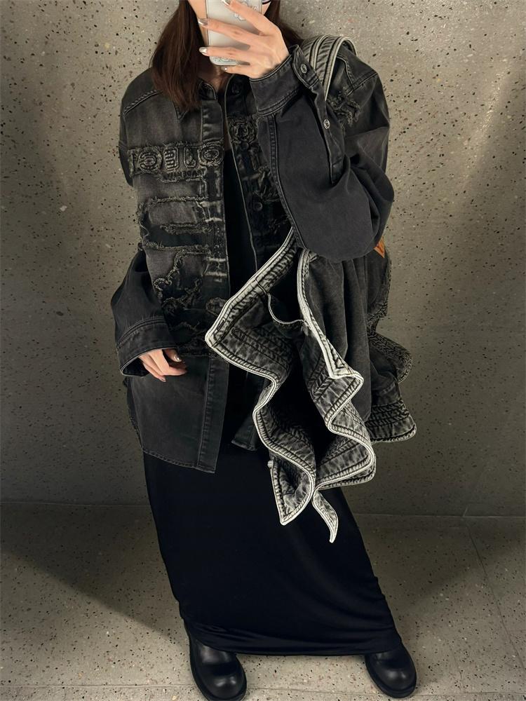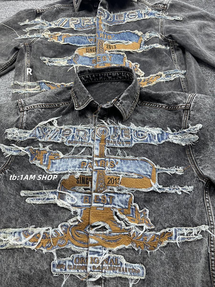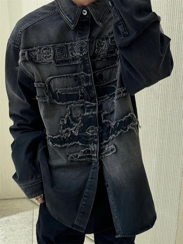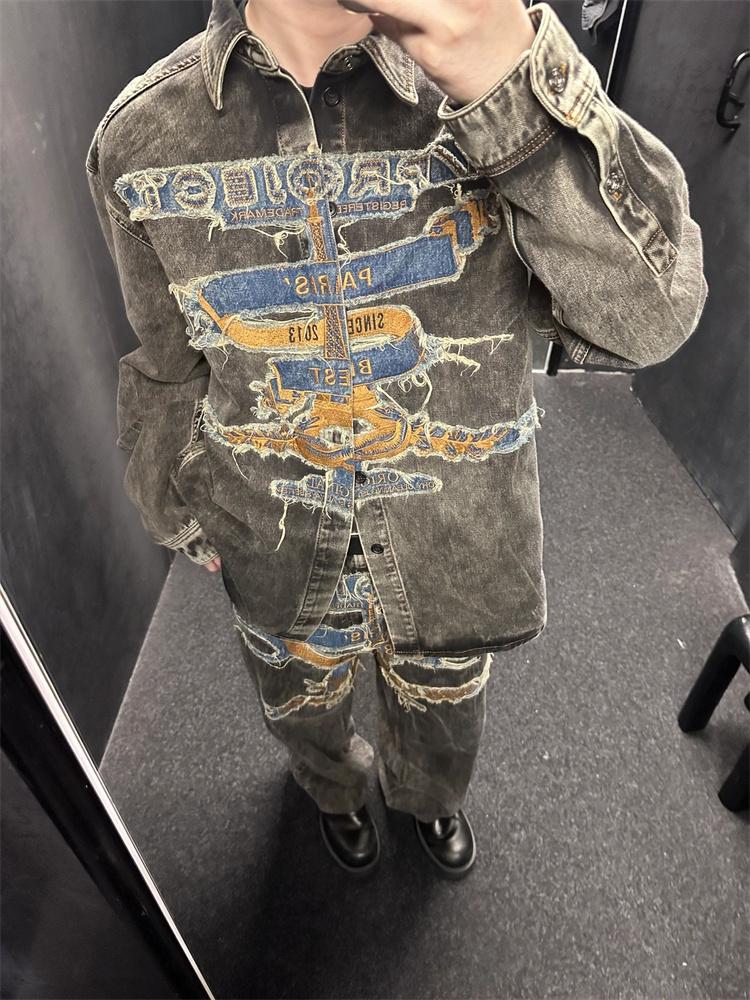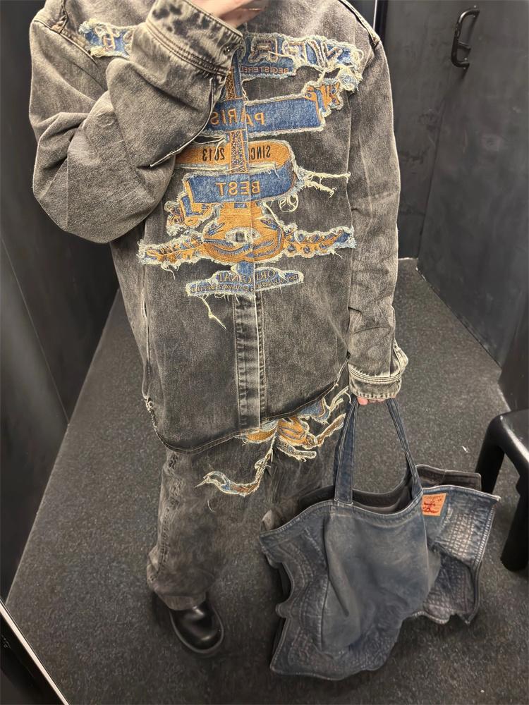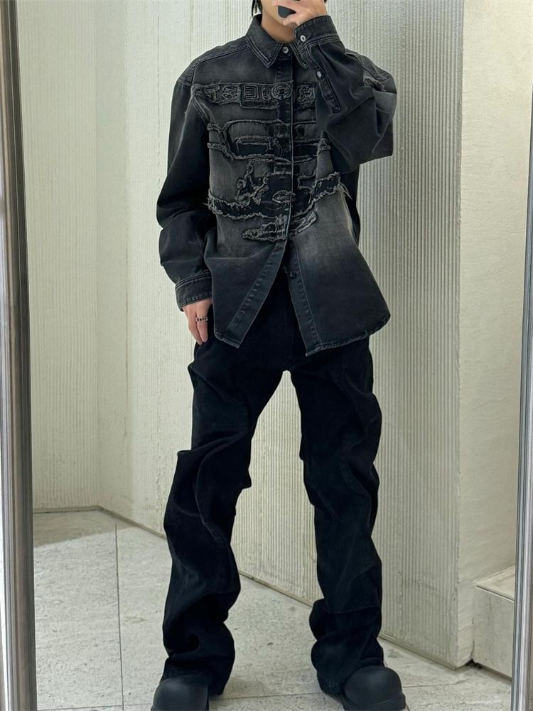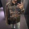 Moda Nuevo Show Acolchado Bordado Chaqueta de Mezclilla Abrigo Nicho Todo Combinable High Street Destrucción Camisa Manga Larga Otoño e Invierno