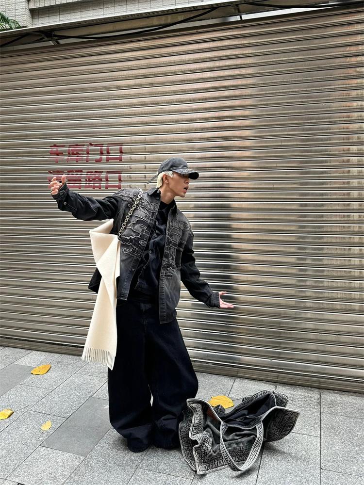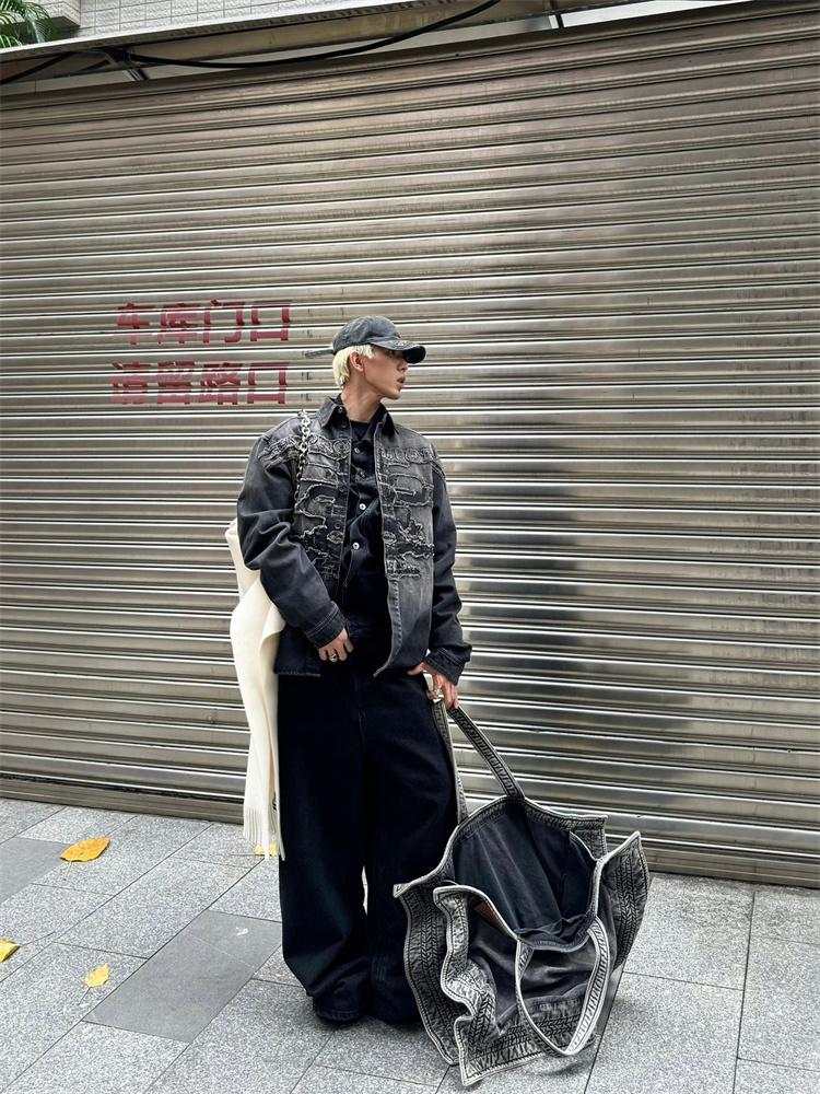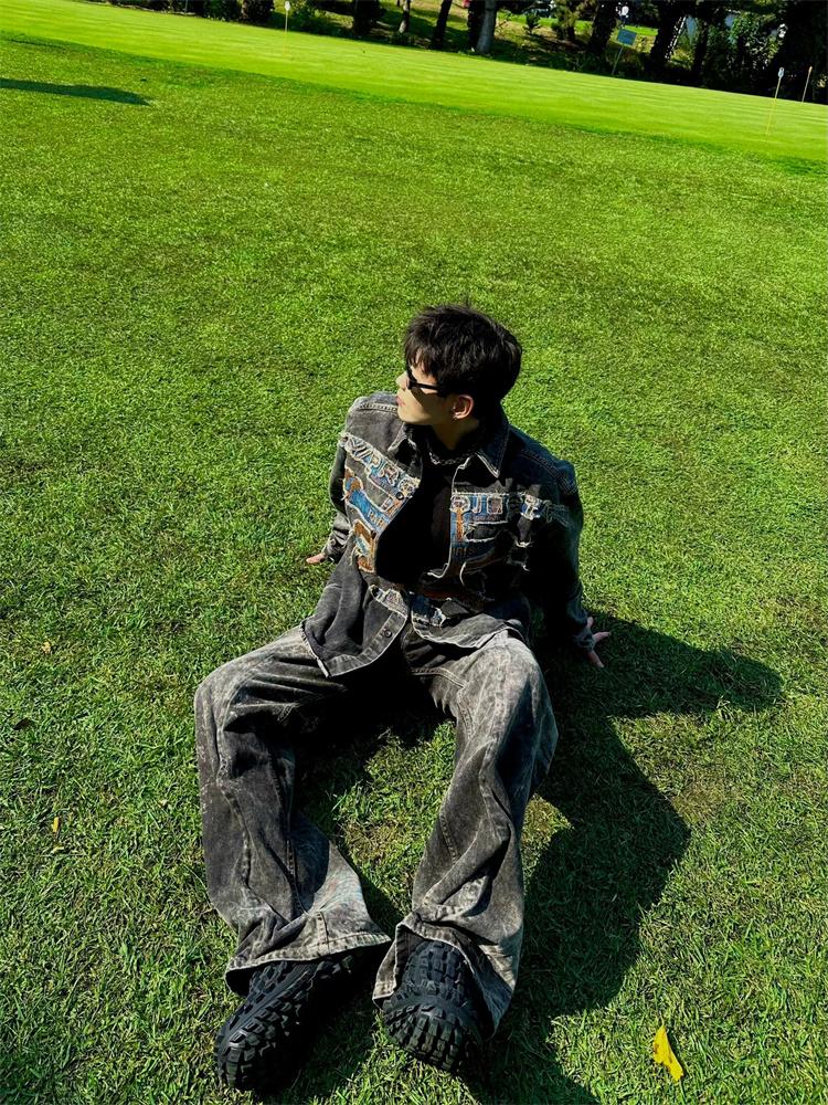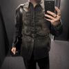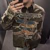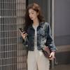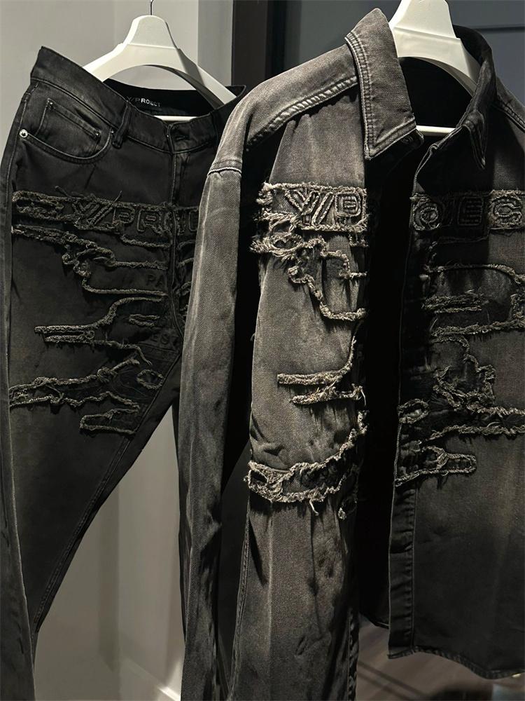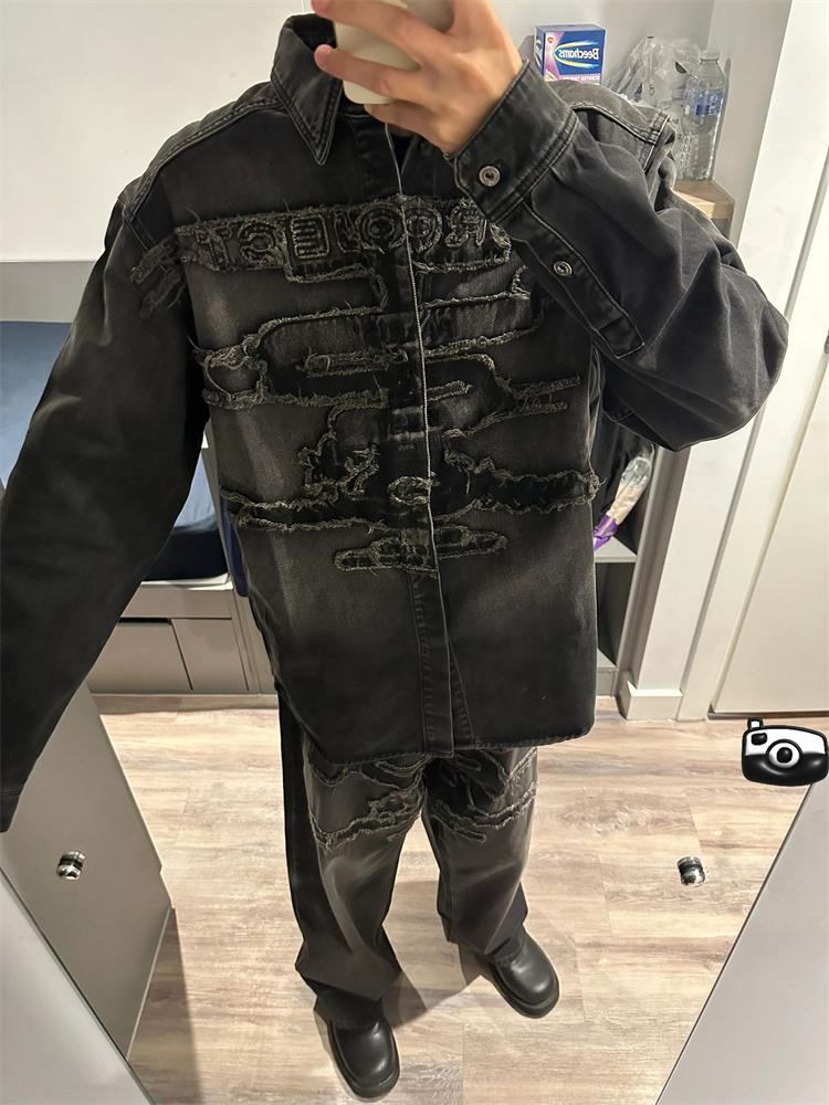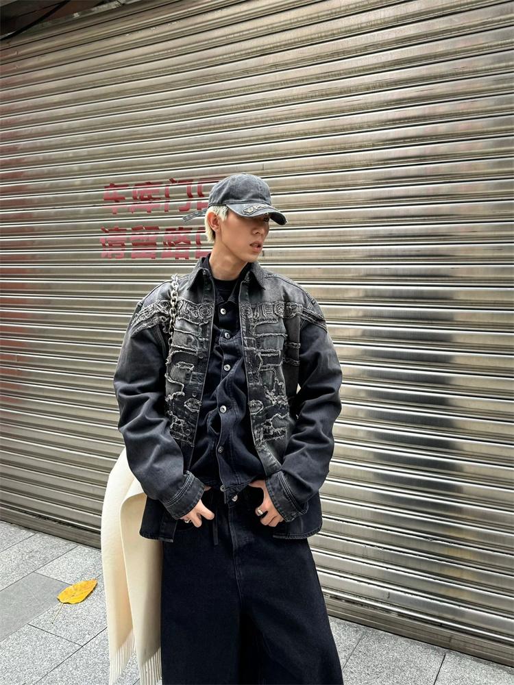 Moda Nuevo Show Acolchado Bordado Chaqueta de Mezclilla Abrigo Nicho Todo Combinable High Street Destrucción Camisa Manga Larga Otoño e Invierno