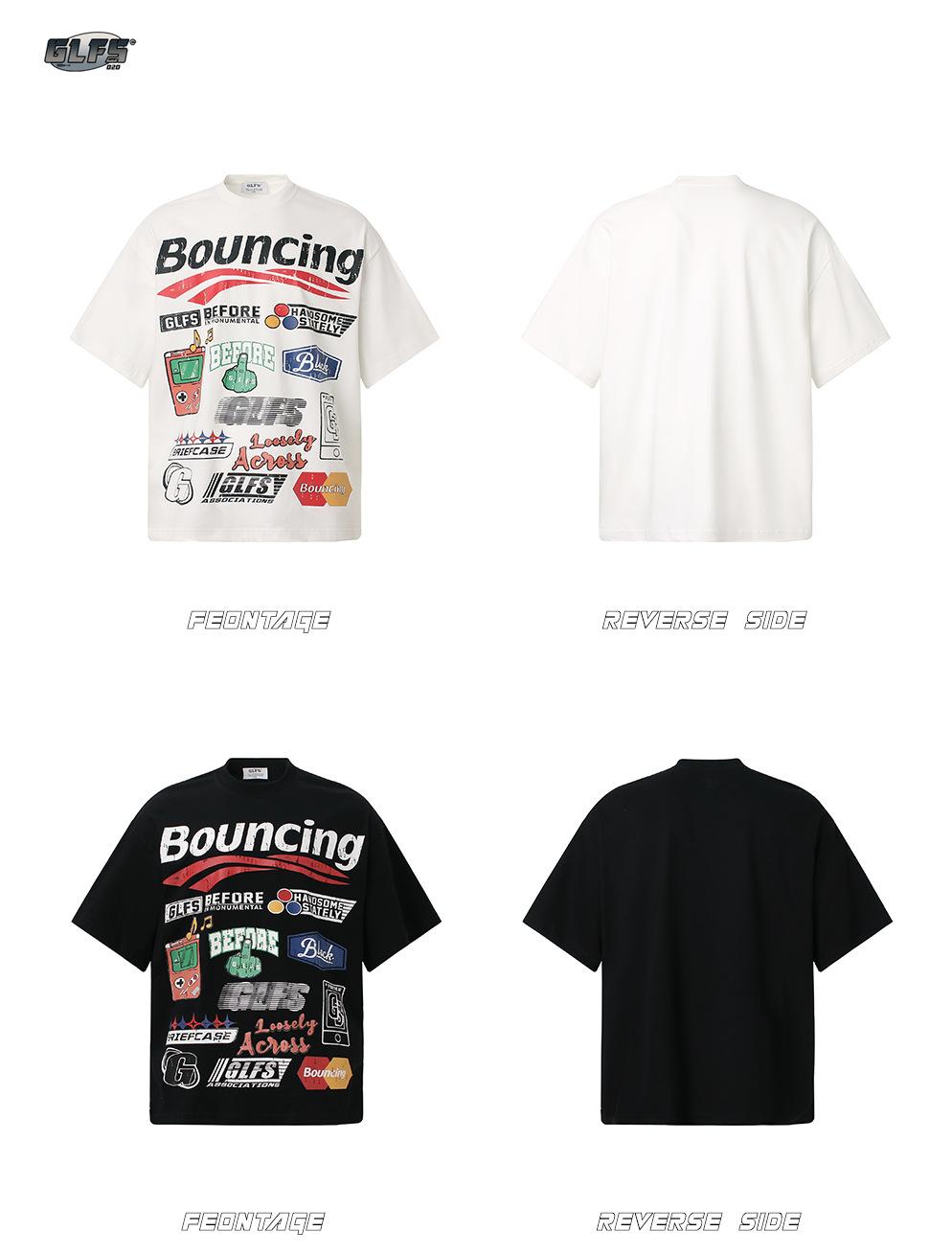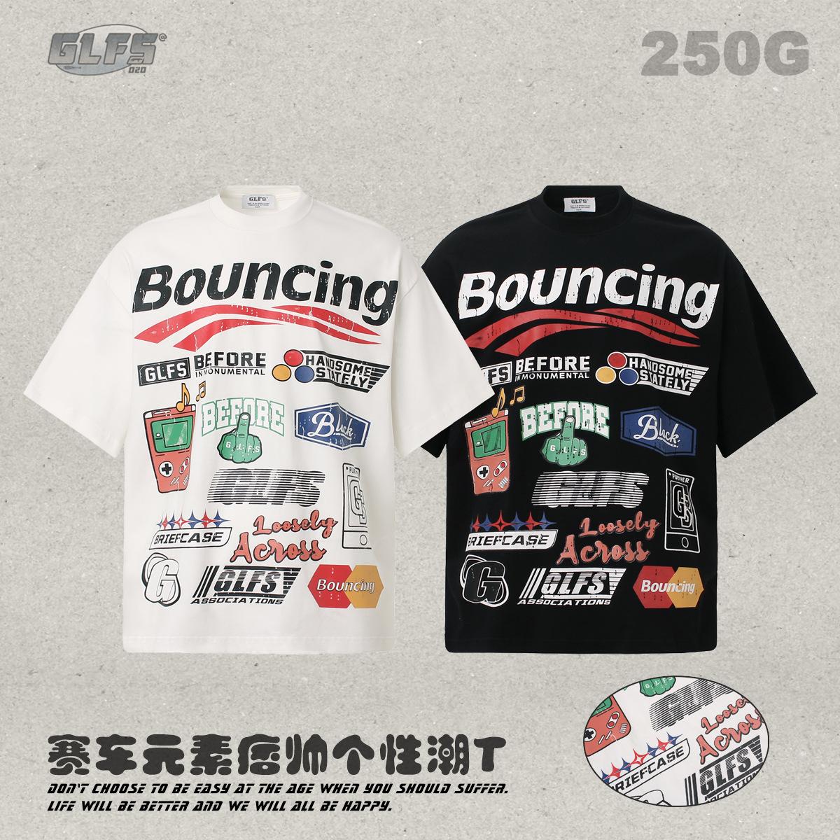 GLFS Estilo Americano Nuevo Slogan de Marca Trendy Juego Estampado de Motocicleta Manga Corta Trendy Top para Hombre Pareja Algodón T