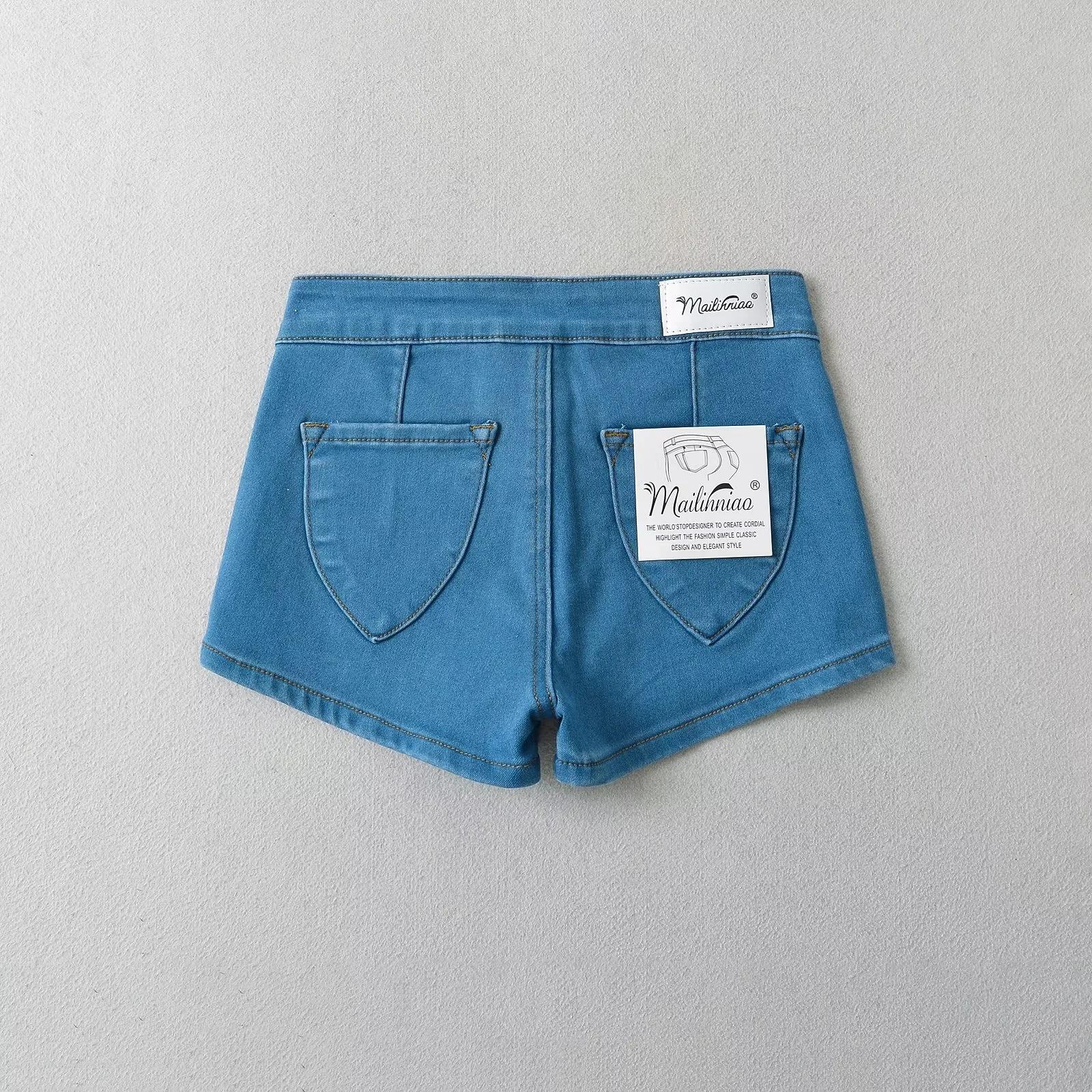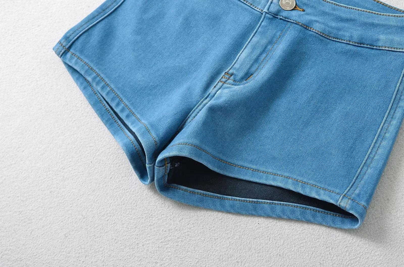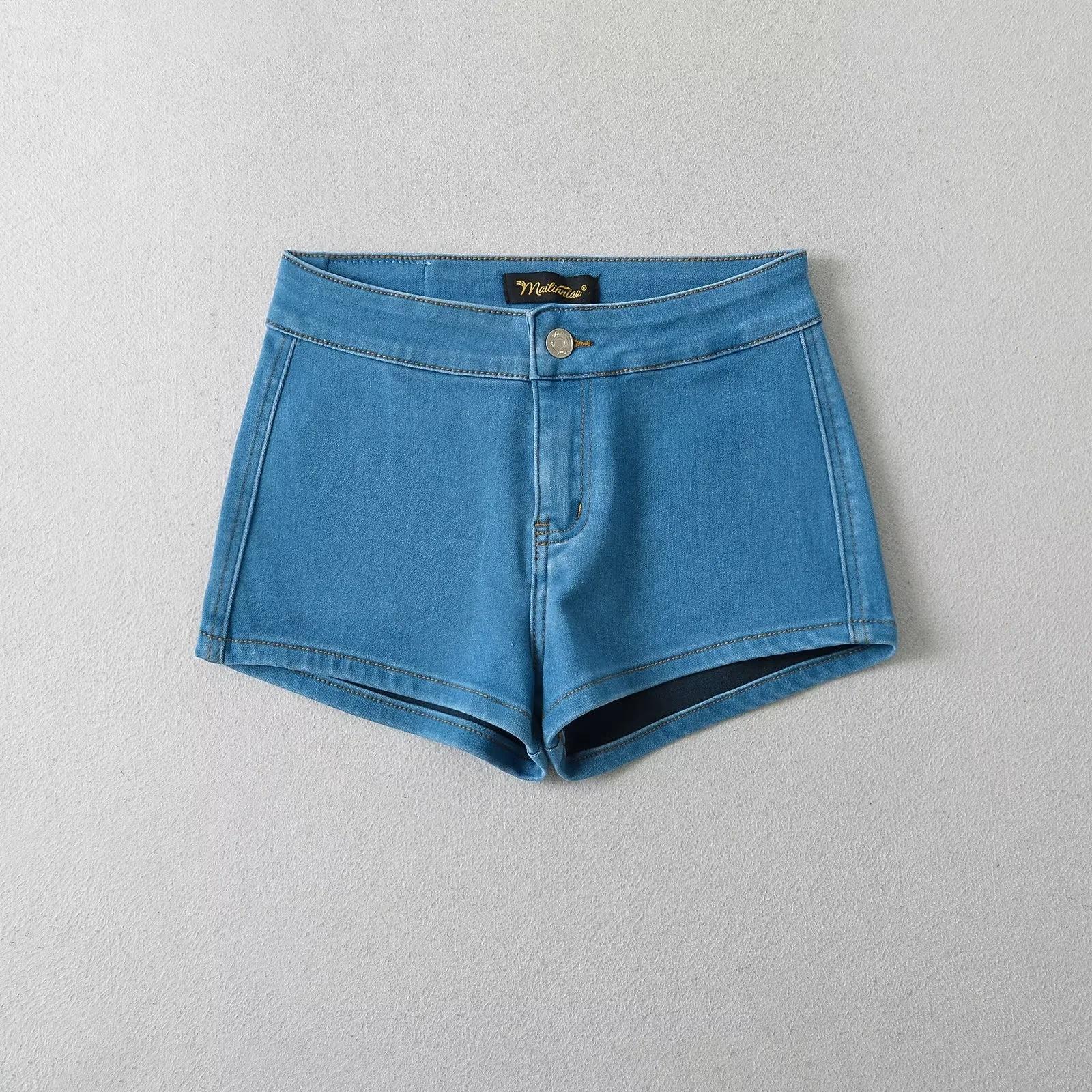 Pantalones cortos de mezclilla ajustados, elásticos y multicolores para mujer, verano 2024, cintura baja, pantalones cortos de cadera, venta al por mayor