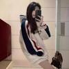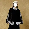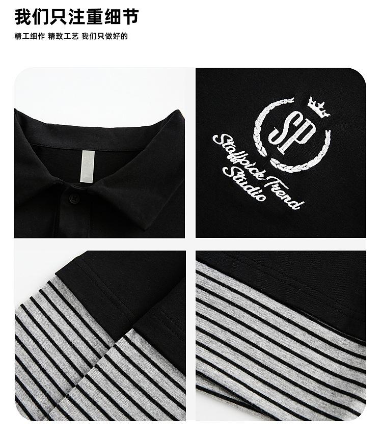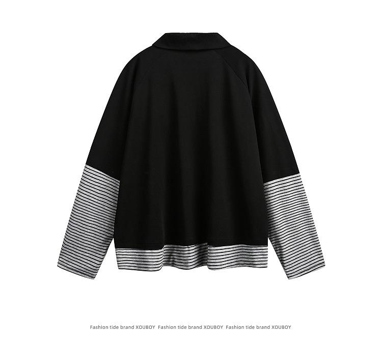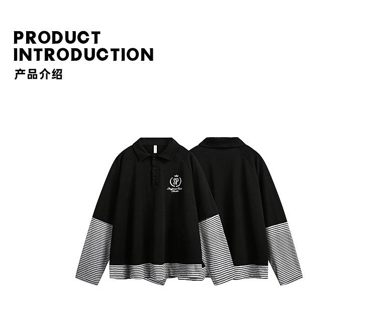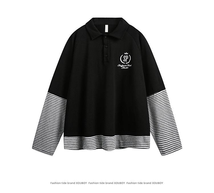 Ropa estilo americano falso de dos piezas de rayas patchwork suelto camisa polo de manga larga para hombres y mujeres top casual retro suelto Ins