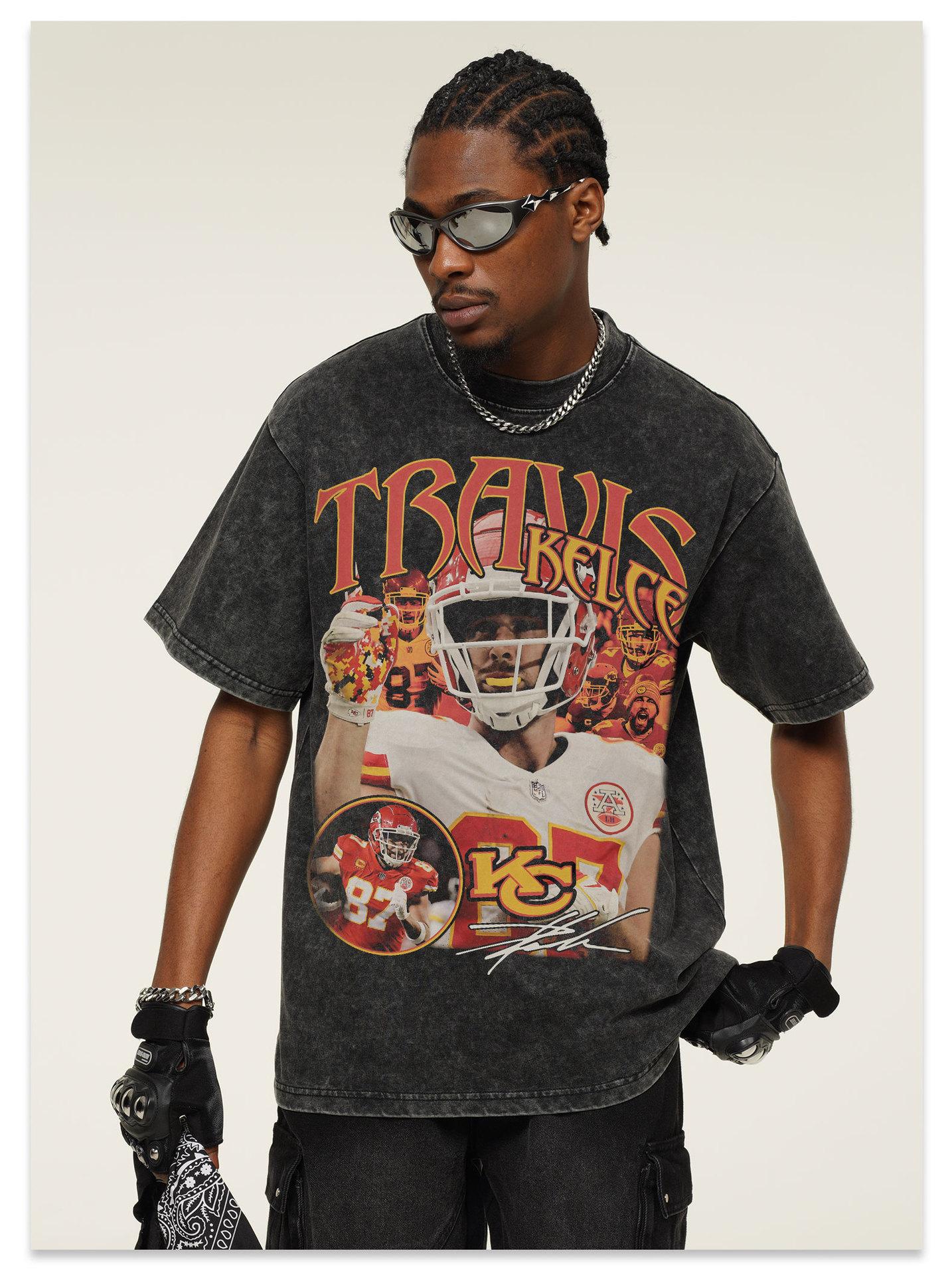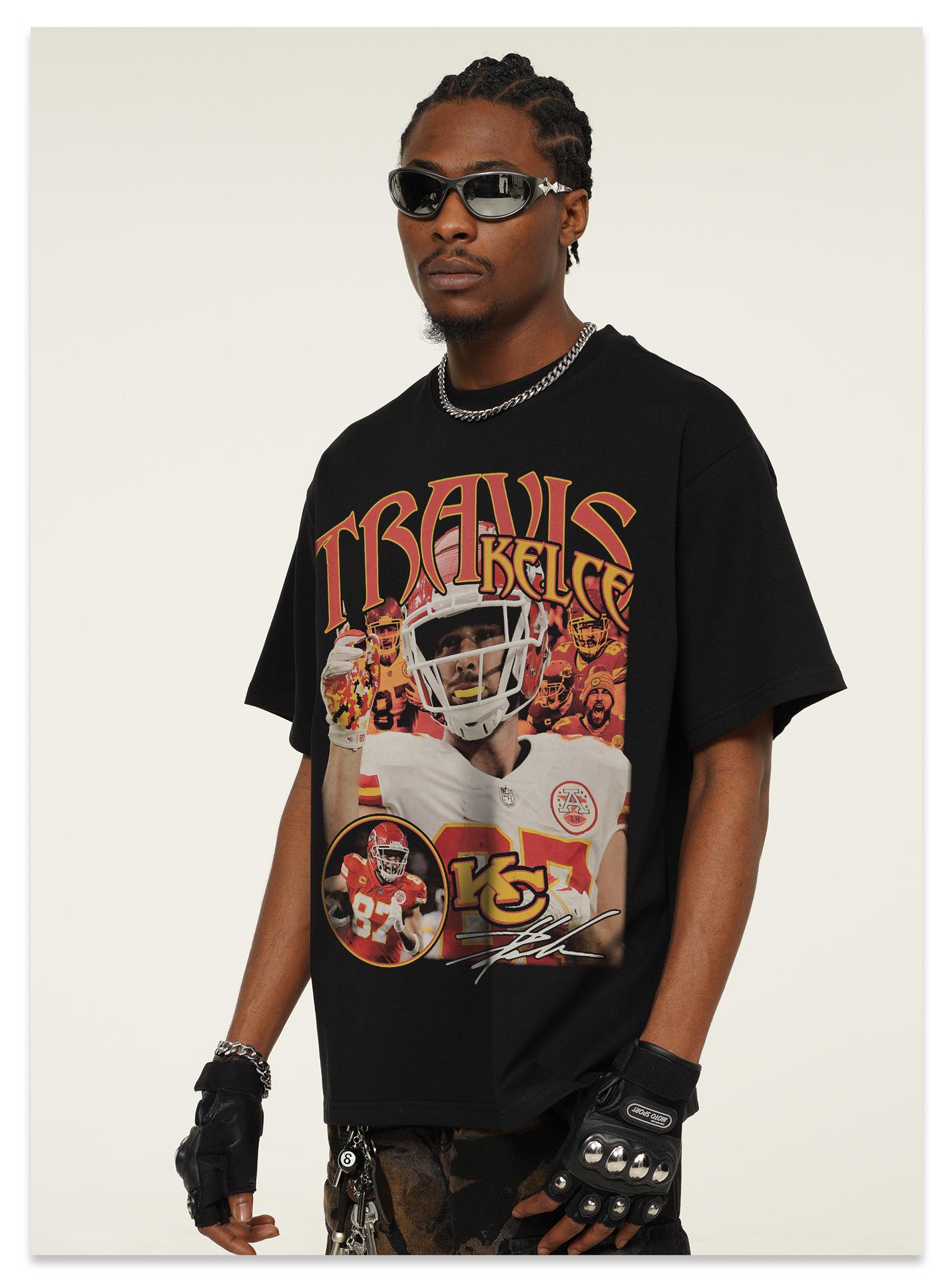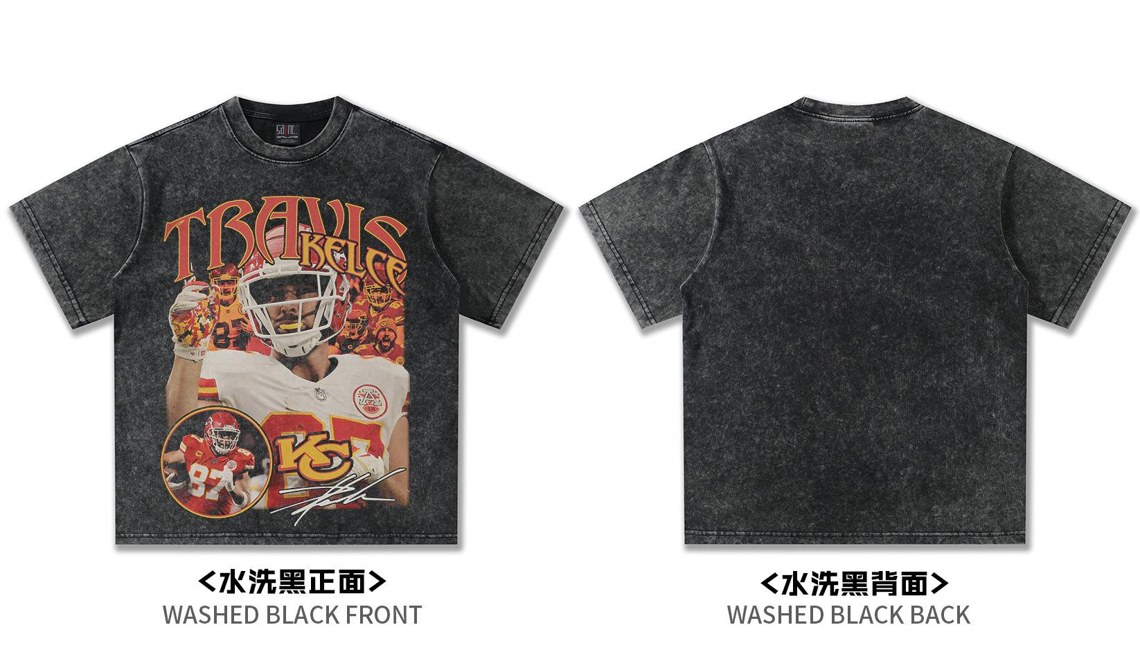 2025 Transfronteriza Kelsey Americana Retro Camiseta de Manga Corta de Rugby Pesada 300g Lavada Algodón Viejo