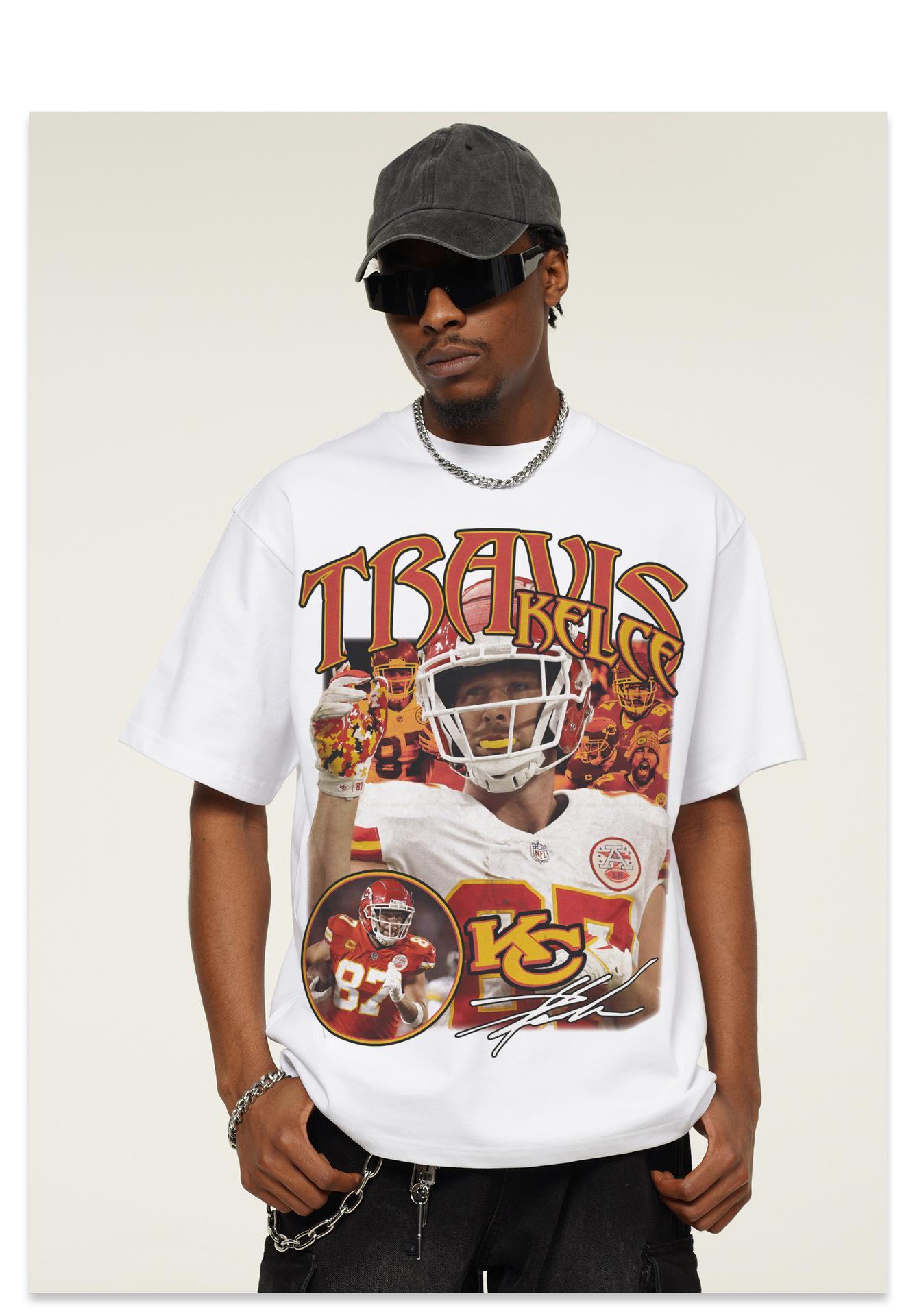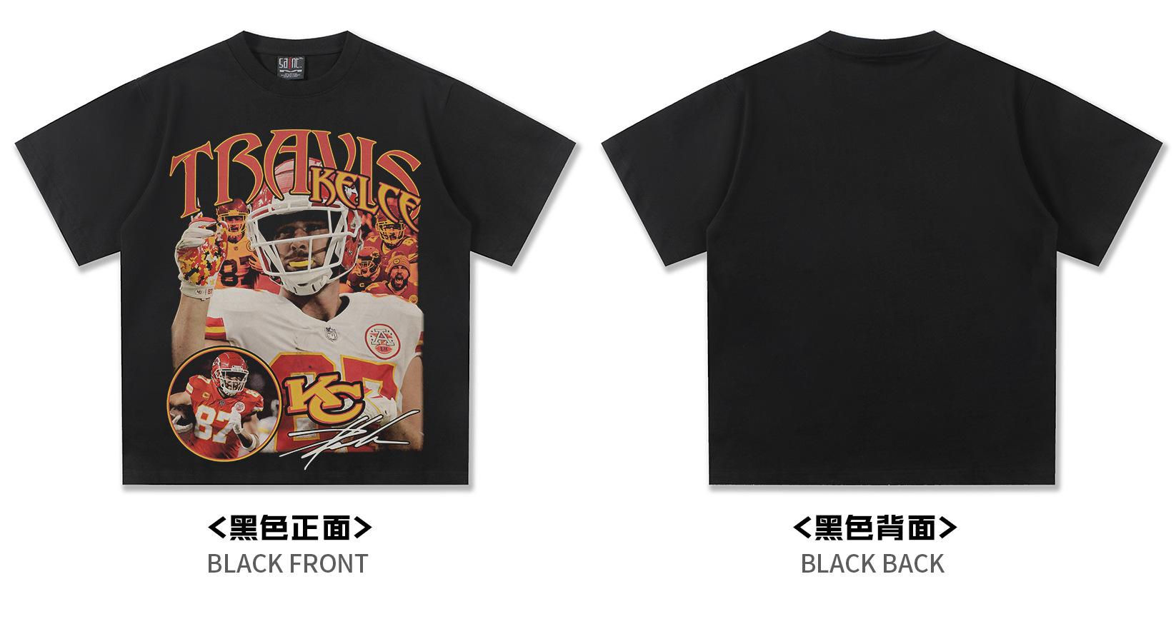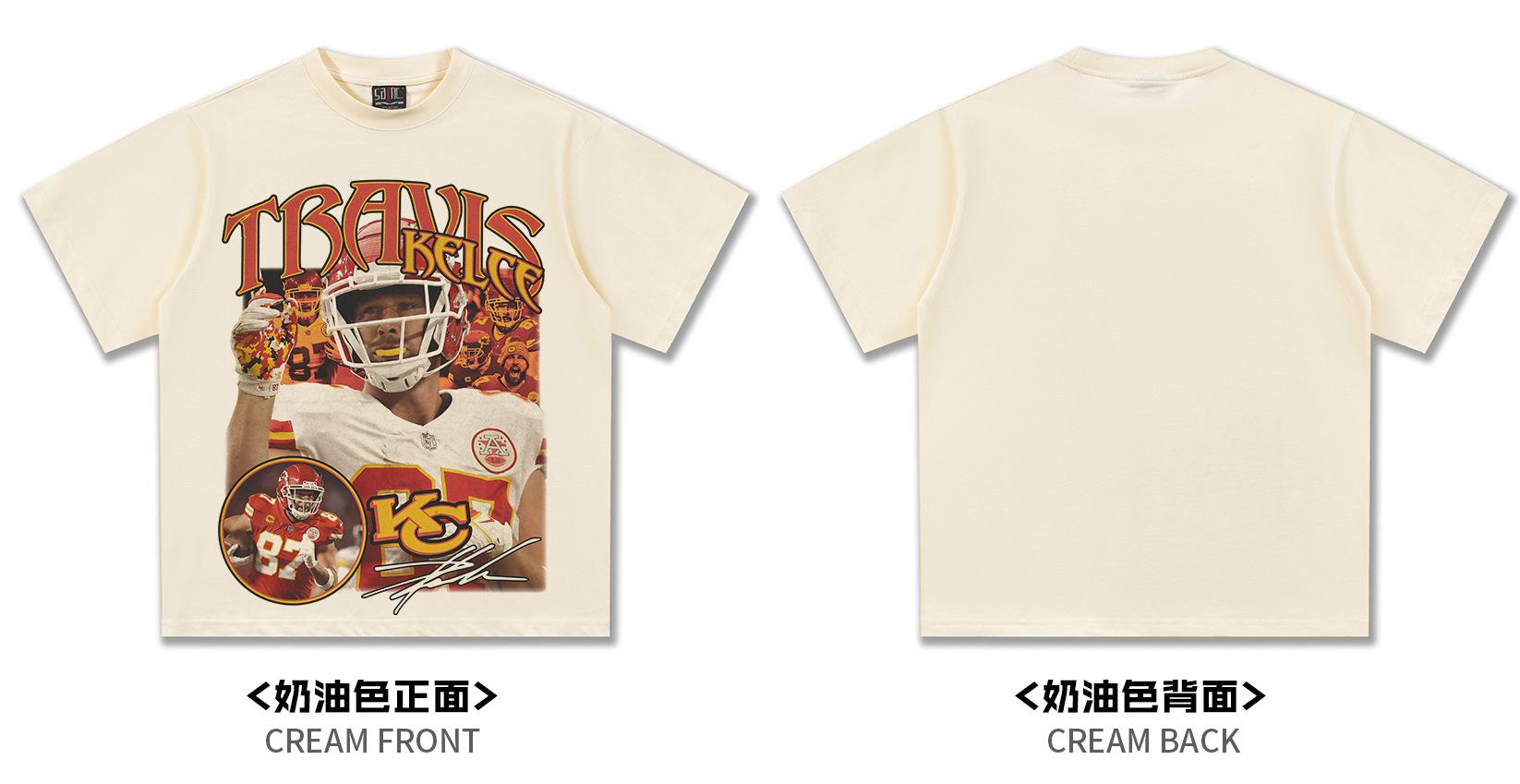2025 Transfronteriza Kelsey Americana Retro Camiseta de Manga Corta de Rugby Pesada 300g Lavada Algodón Viejo