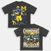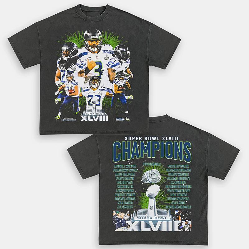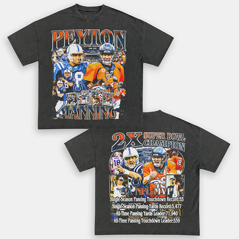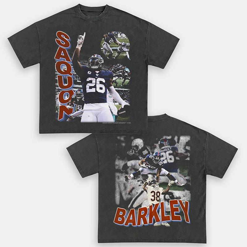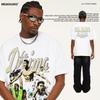 Camiseta de manga corta holgada, informal, vintage, lavada, con estampado de doble cara y chorro directo de la Liga de Fútbol Americano.
