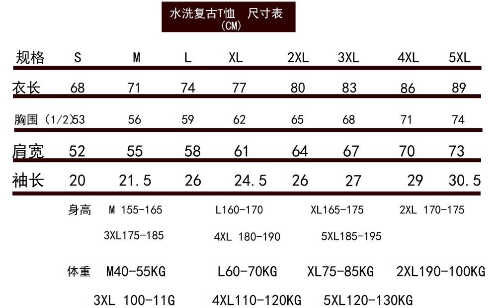 S, M, L, XL, 2XL, 3XL, 4XL, 5XL