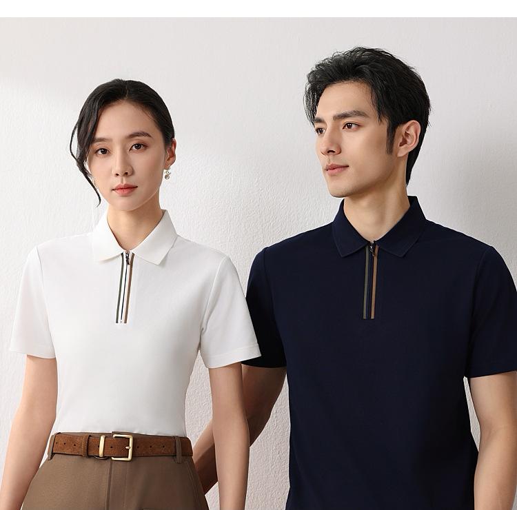 Camisa polo corta de verano con solapa fresca y natural, con cremallera, ropa de grupo personalizada, camisa de cultura corporativa, estampado de logotipo