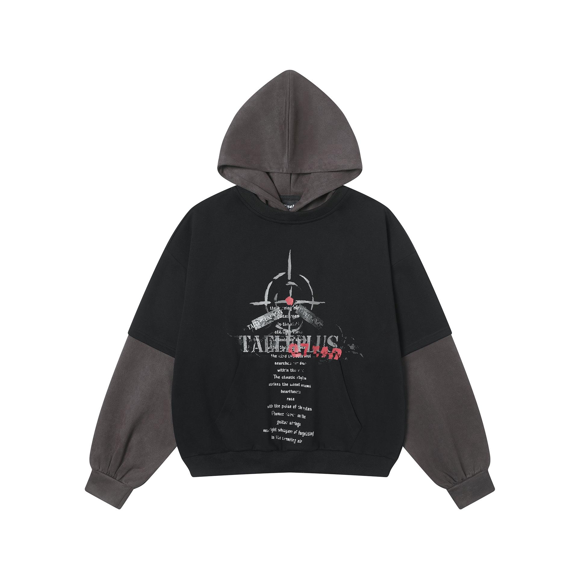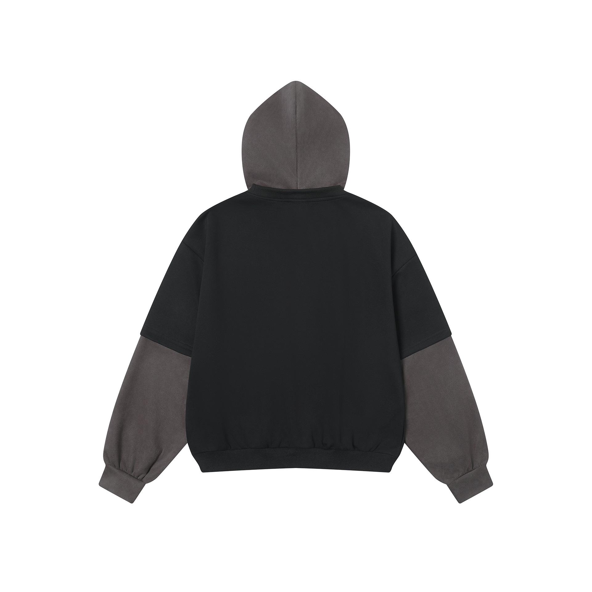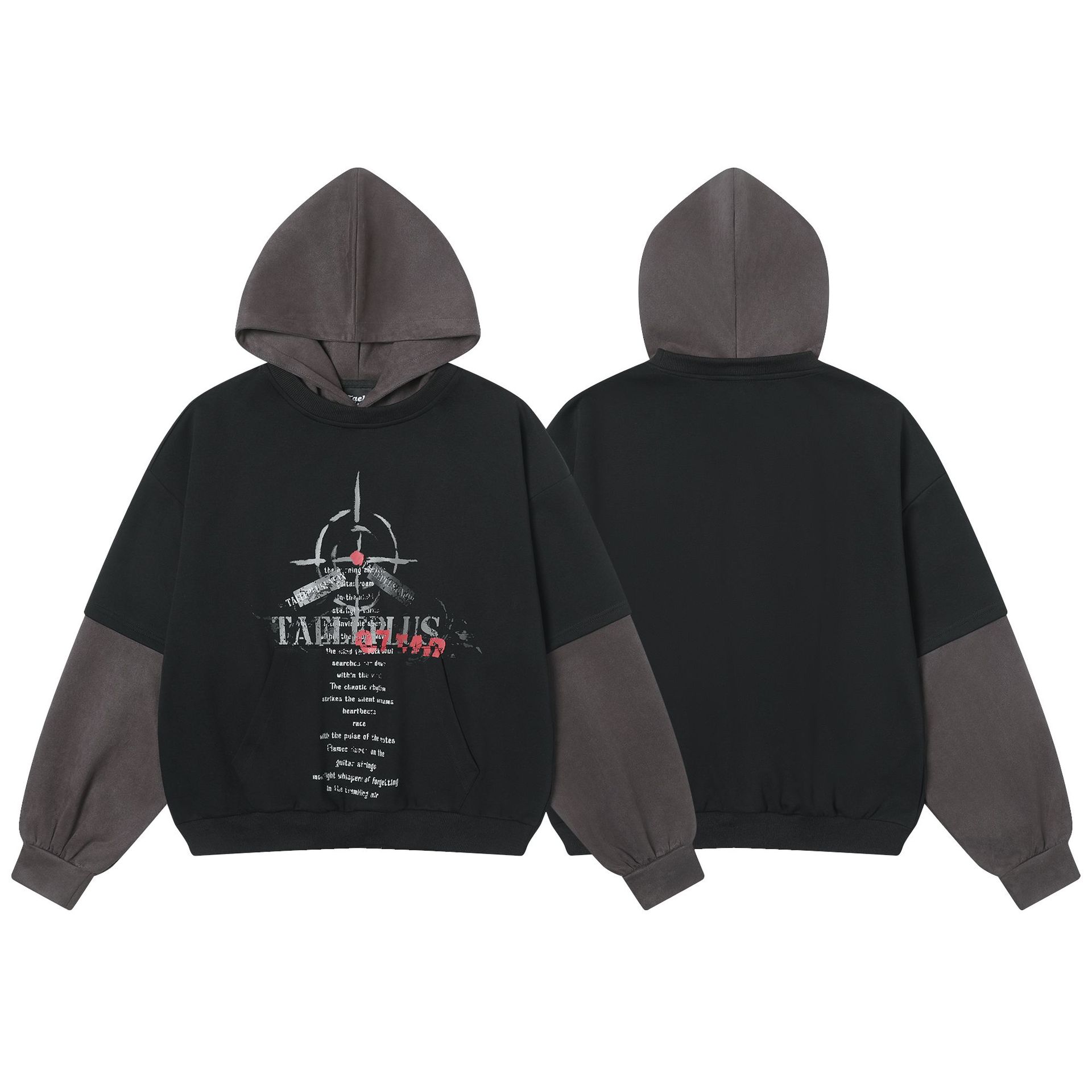 Jiayiku - Sudadera con capucha para hombre, nueva marca de moda callejera estadounidense de primavera 2025, suéter falso de dos piezas de gamuza con capucha para hombre