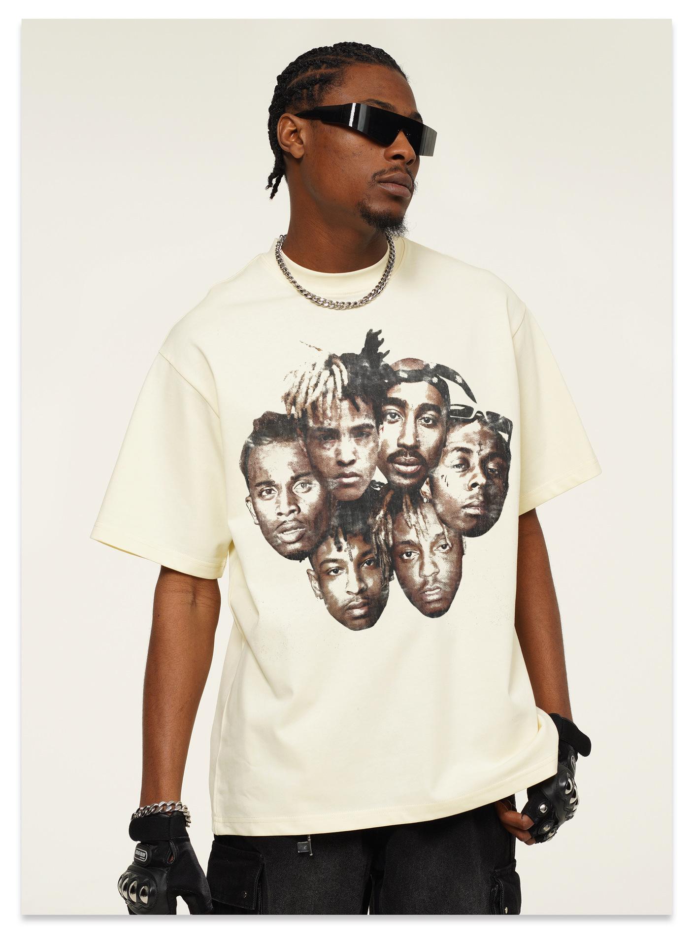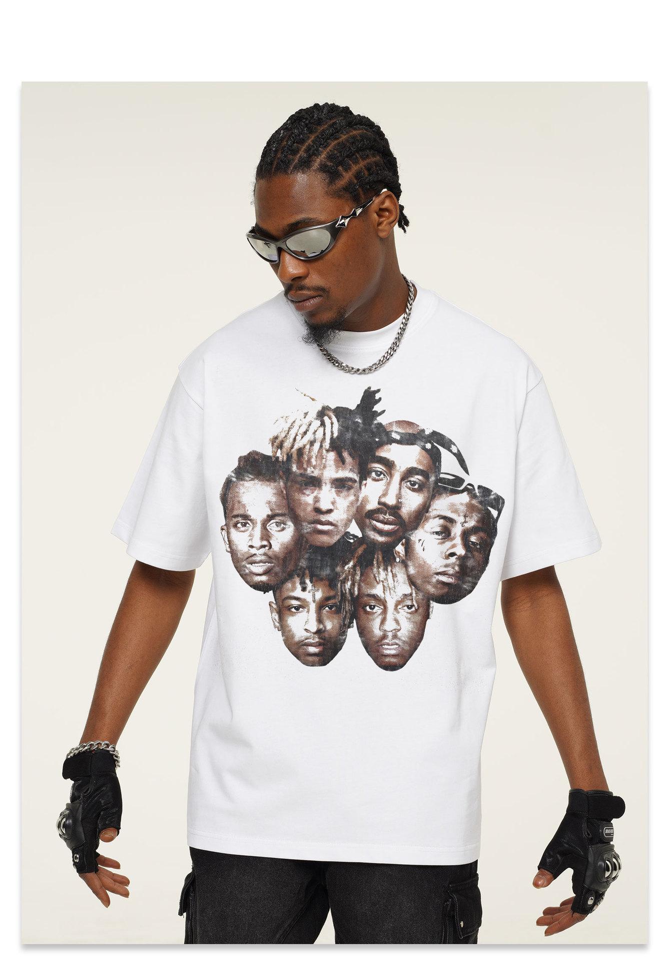 Camiseta de algodón de manga corta para hombre, estilo retro clásico americano, con estampado de inyección directa, de verano transfronterizo 2025