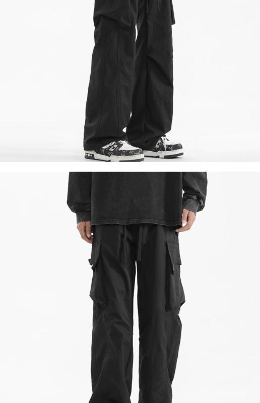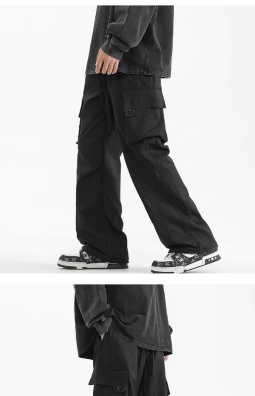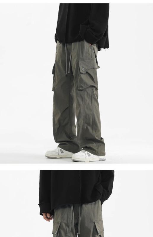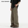Pantalones rectos con diseño plisado americano de primavera y otoño para hombres y mujeres, estilo retro, holgados, con cordón, de pierna ancha, informales y modernos.