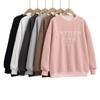 Suéter con capucha informal forrado de vellón para mujer, otoño e invierno, parte superior cálida y gruesa, camiseta ajustada con letras y diamantes de moda que combina con todo.
