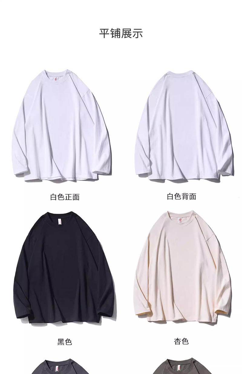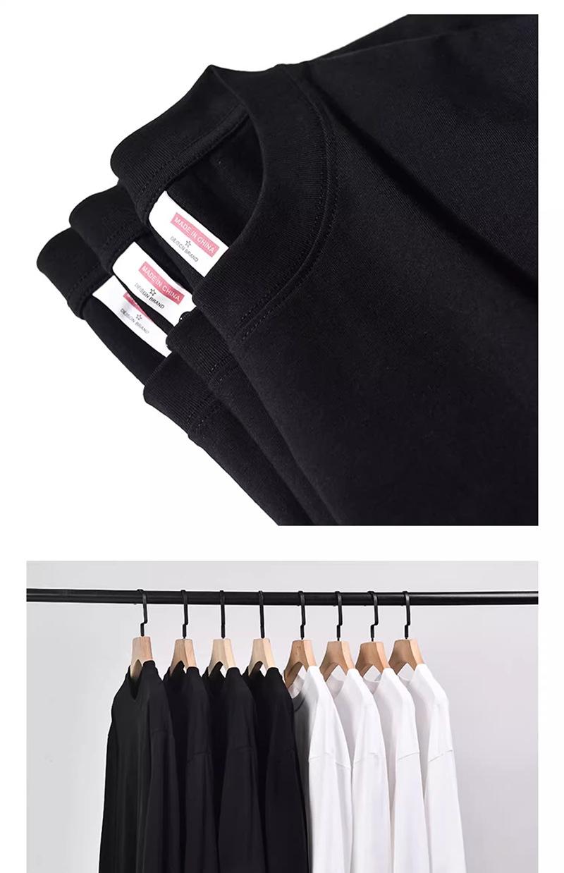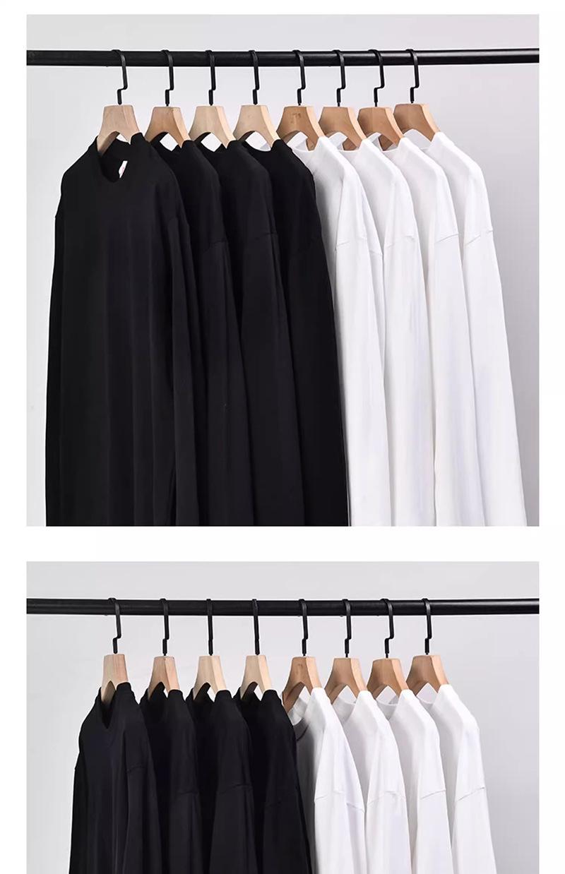 Playera Pesada de Manga Larga 280g para Hombre y Mujer de Alto Sentido Cuello Pequeño Joker Camiseta Básica Top Blanco Pareja Americana Largo