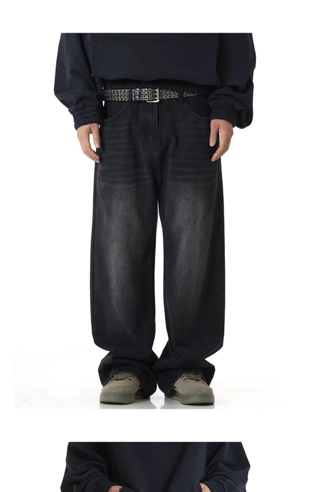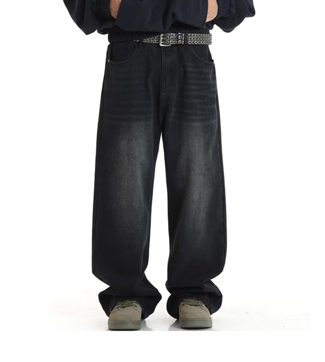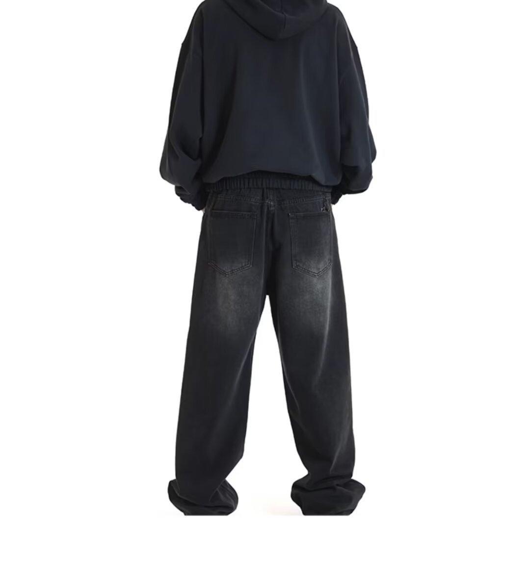 Pantalones vaqueros holgados de pierna ancha estilo americano para hombre, estilo retro, lavados, de marca antigua, negros, rectos, para mujer
