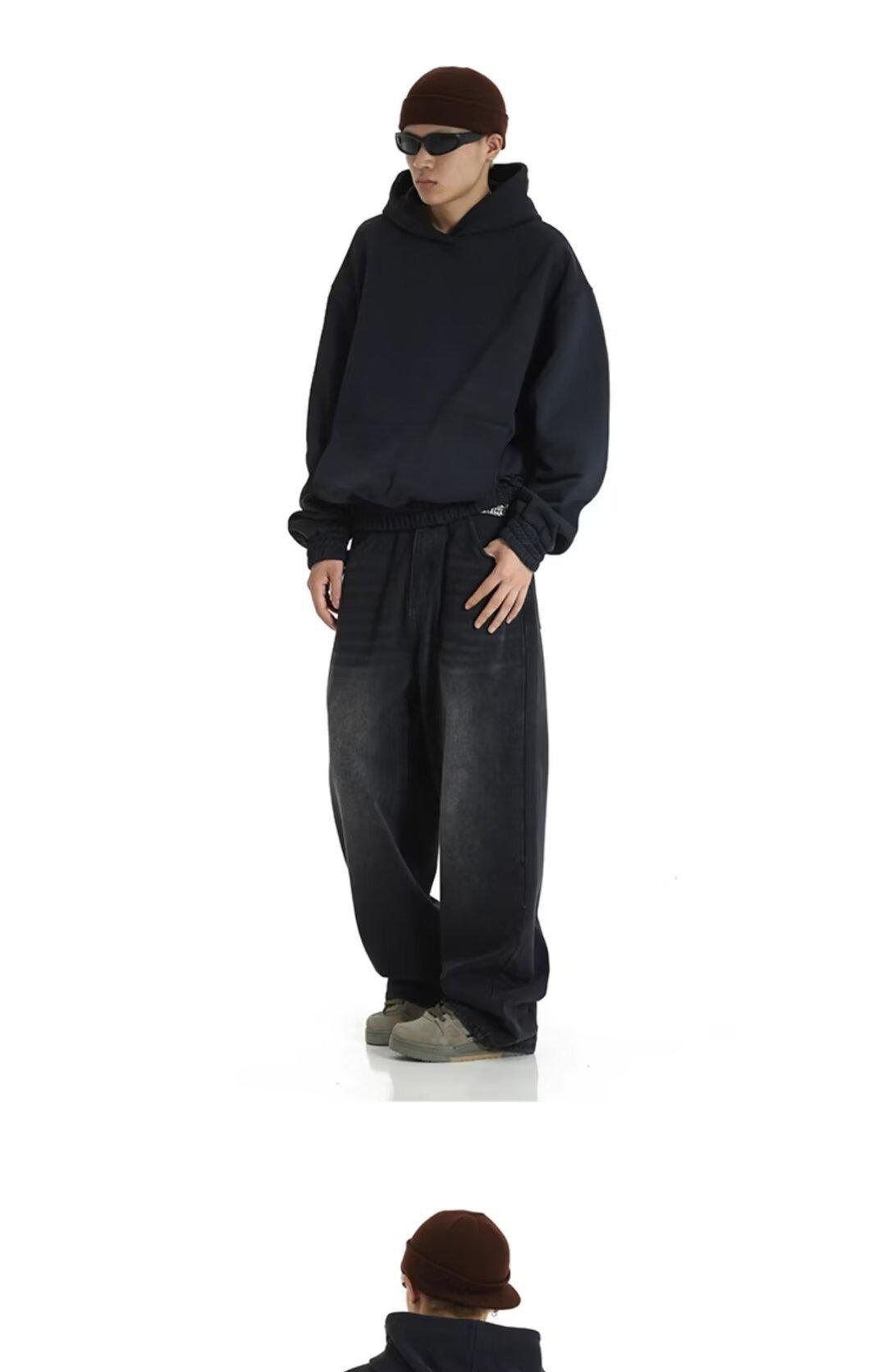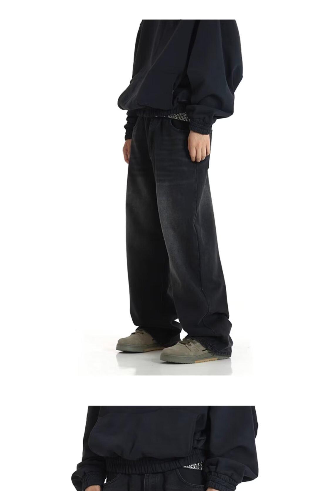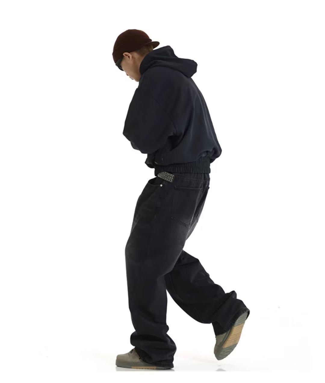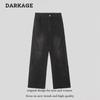 Pantalones vaqueros holgados de pierna ancha estilo americano para hombre, estilo retro, lavados, de marca antigua, negros, rectos, para mujer