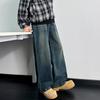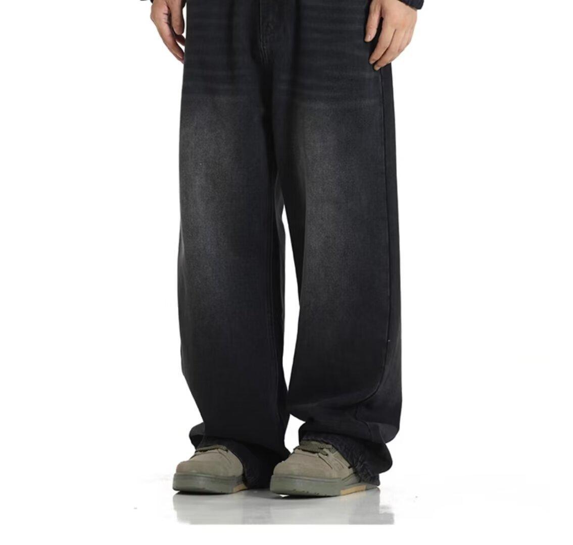 Pantalones vaqueros rectos desgastados retro de comercio exterior para hombre, pantalones largos de moda de pierna ancha, holgados, con cintura alta y degradados para primavera y otoño