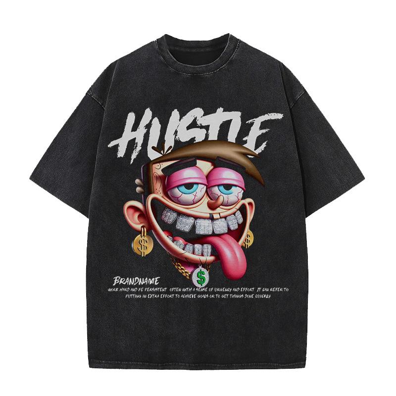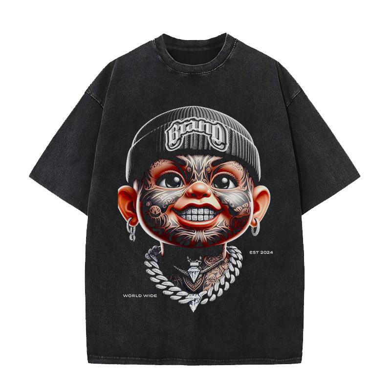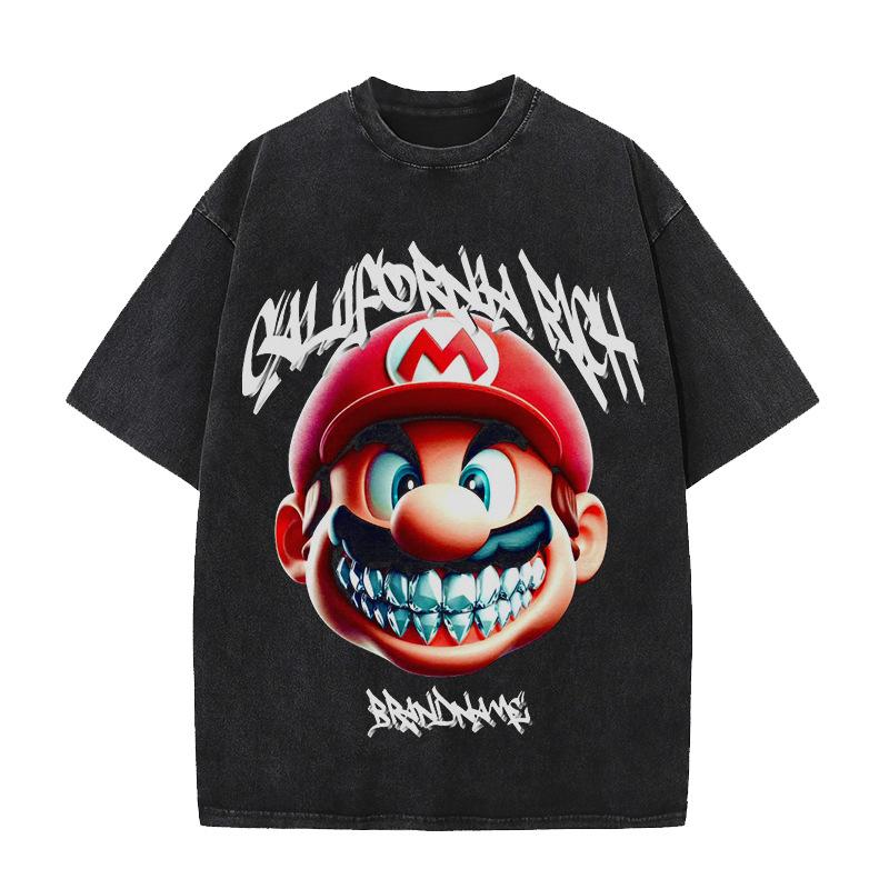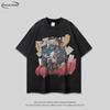 Camiseta de Manga Corta de Verano para Hombre y Mujer con Personaje de Animación de Dibujos Animados de Moda Europea y Americana, Cabeza Grande, Lavada, Holgada, Estampado Directo