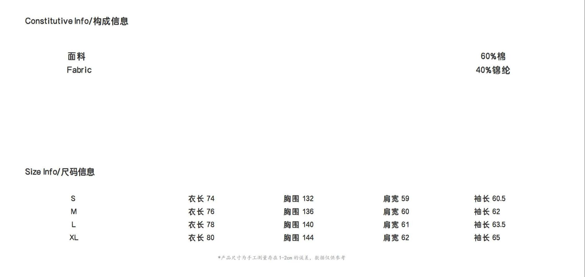 S, M, L, XL