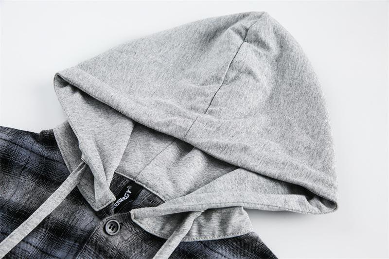 Primavera Nuevo Estilo Americano Retro Cuadros Bordado con Capucha Marca de Moda Urbana Suéter Holgado Casual Versátil Manga Larga