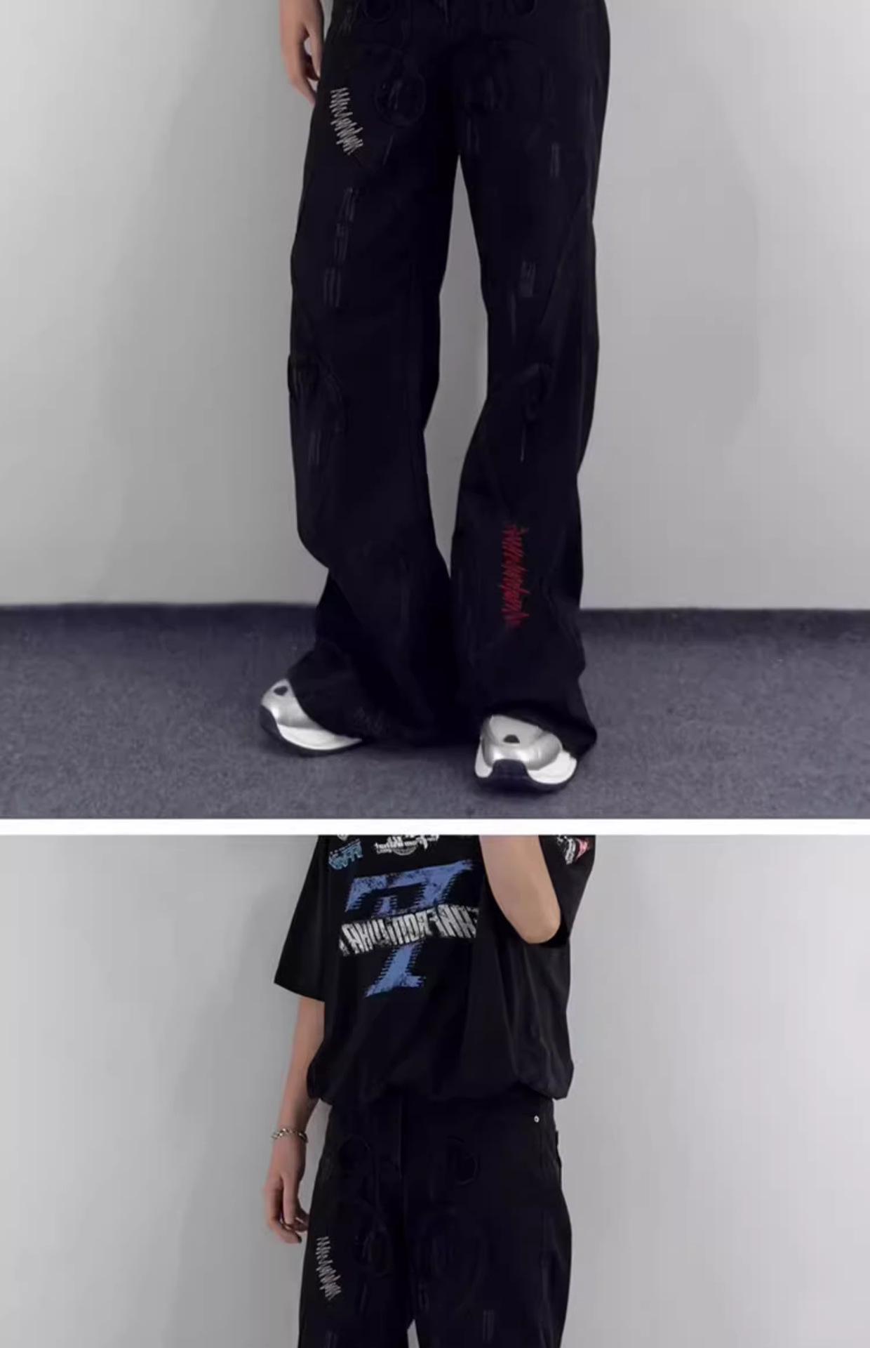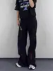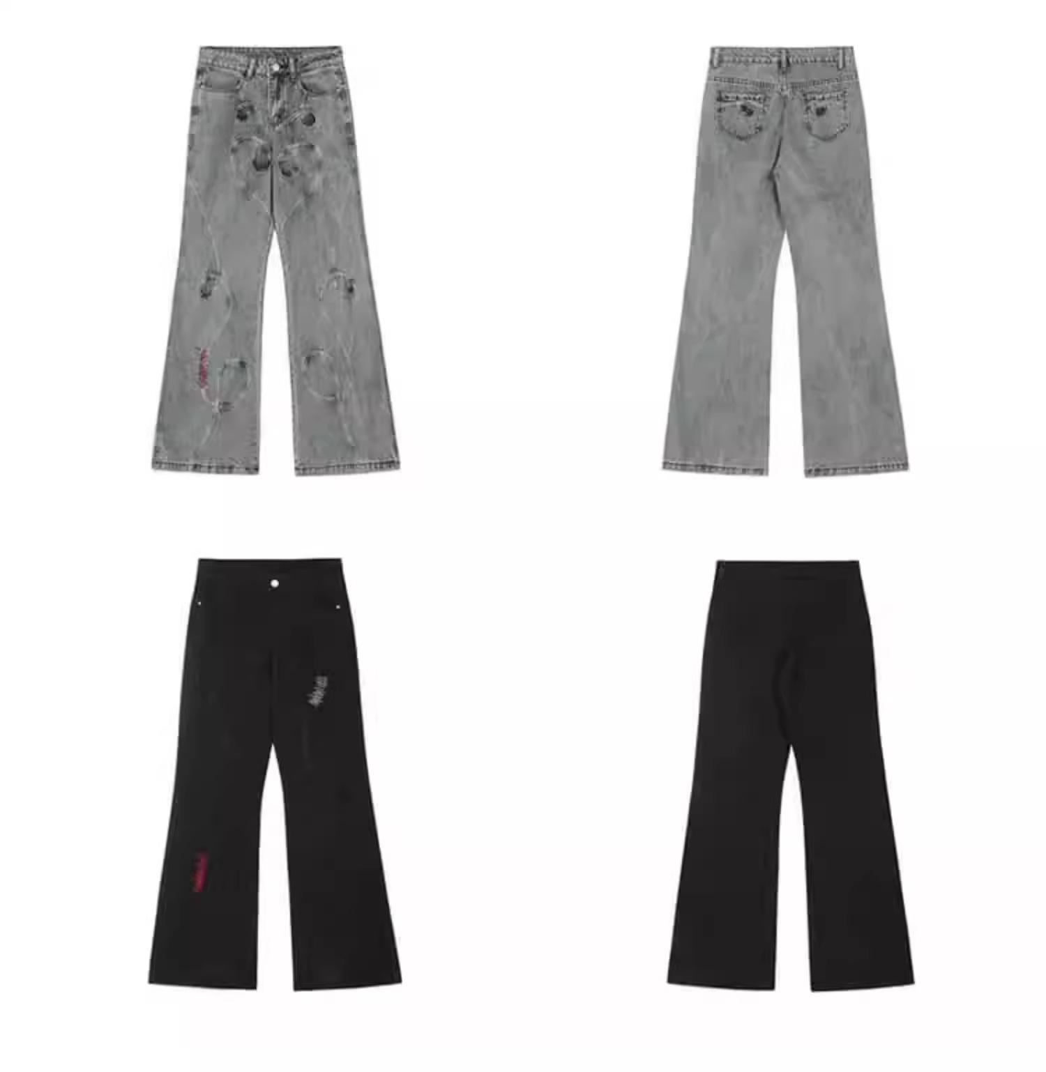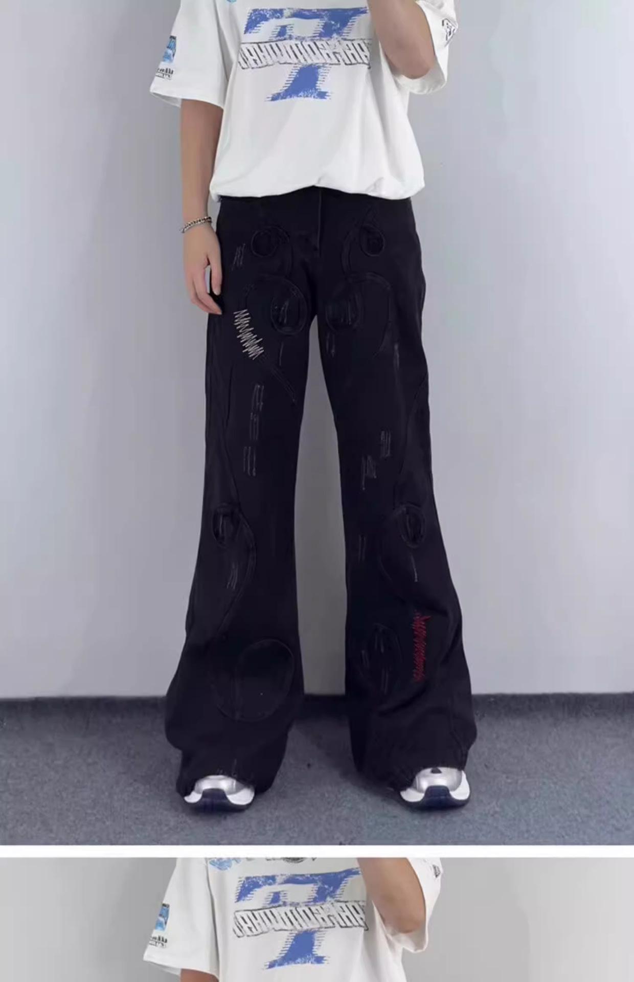 Pantalones vaqueros negros bordados, primavera y otoño 2025, nuevos, holgados, de cintura alta, adelgazantes, para parejas, modernos, con corte trompeta, informales.