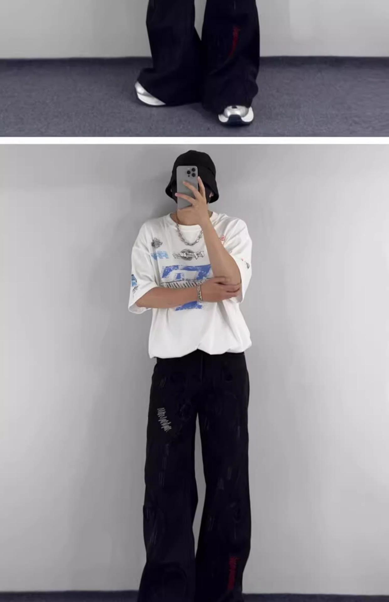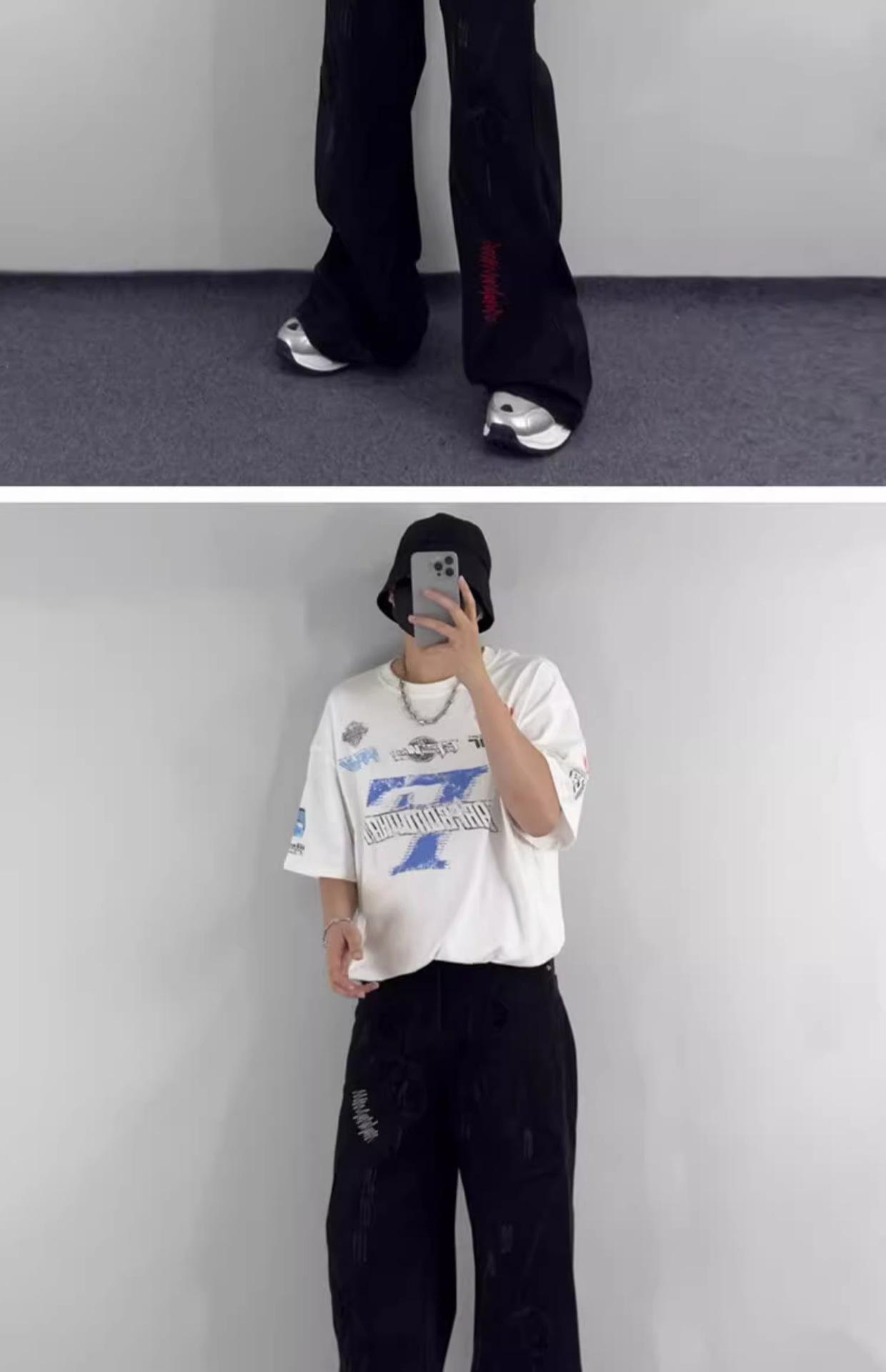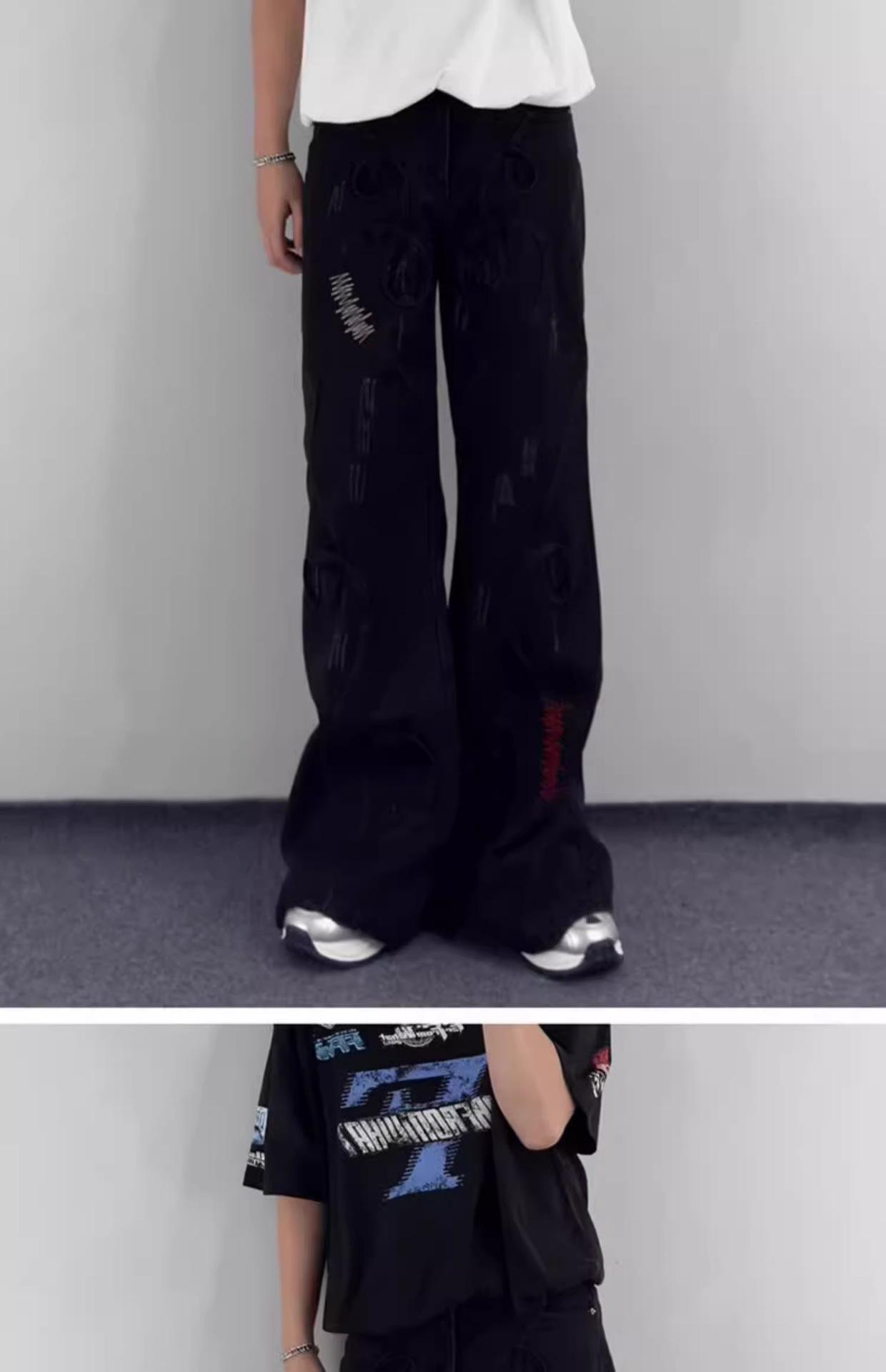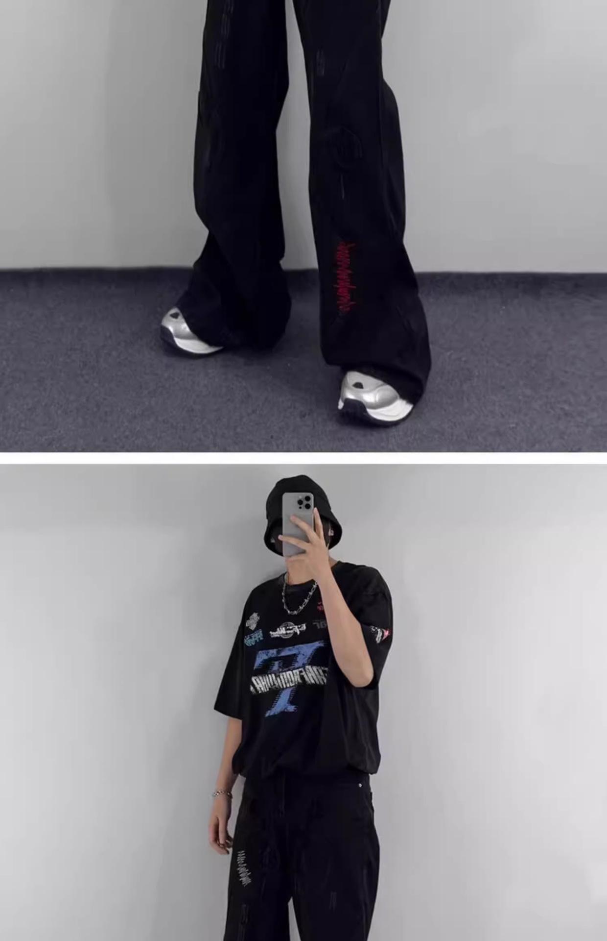 Pantalones vaqueros negros bordados, primavera y otoño 2025, nuevos, holgados, de cintura alta, adelgazantes, para parejas, modernos, con corte trompeta, informales.