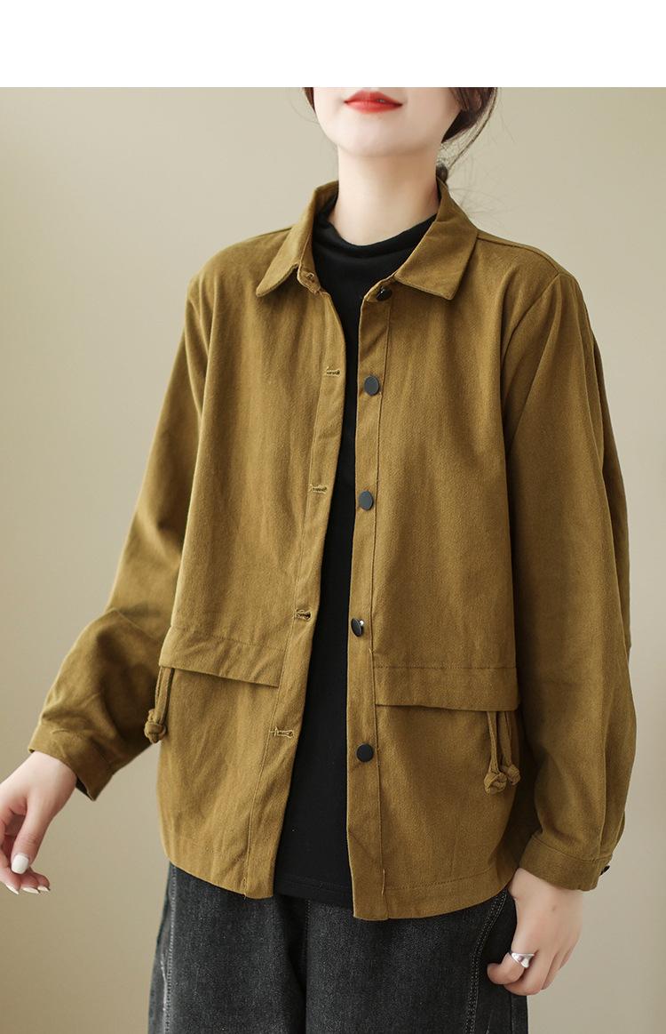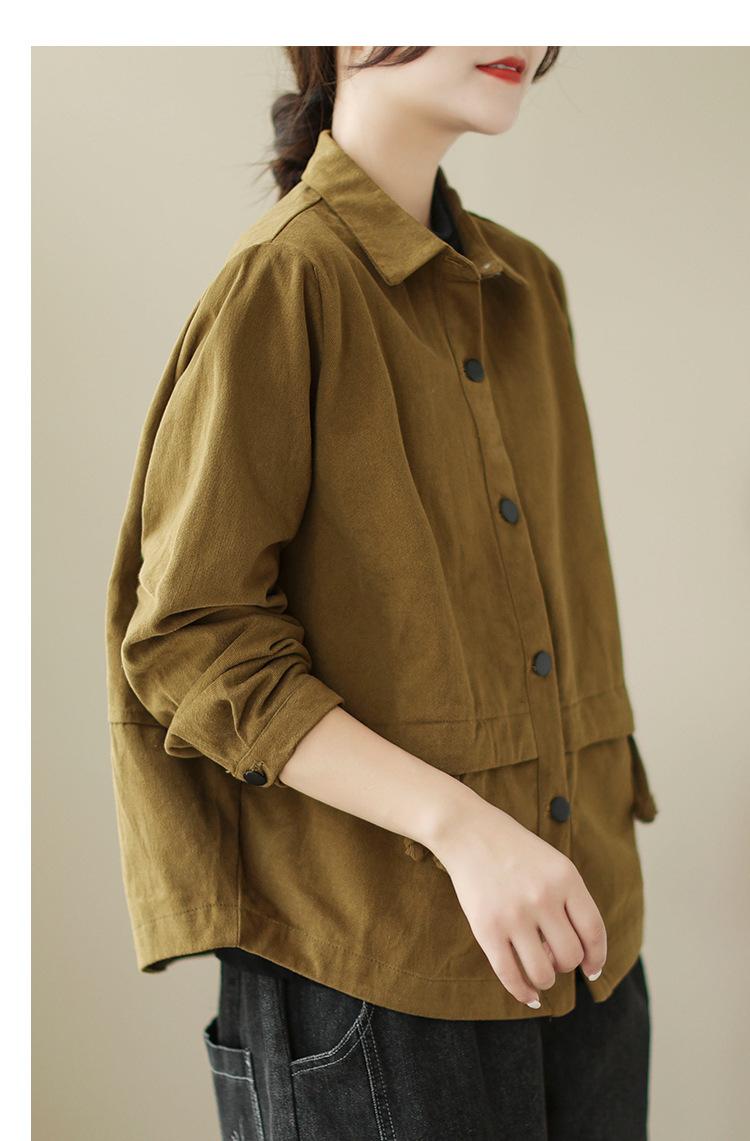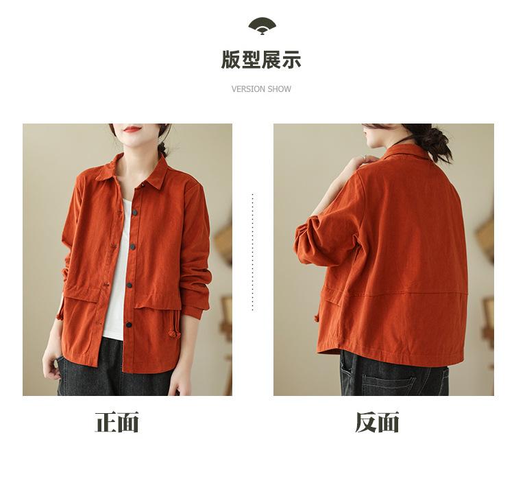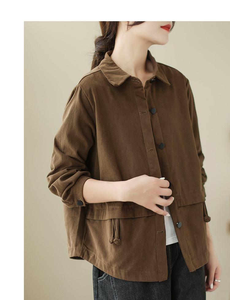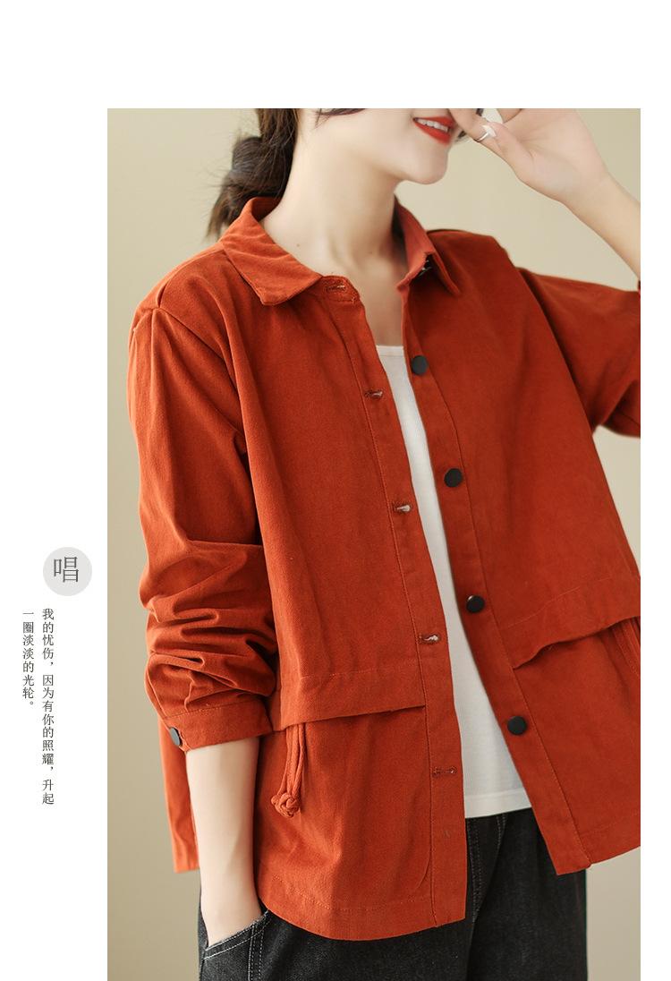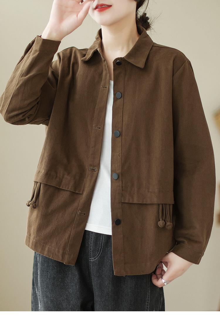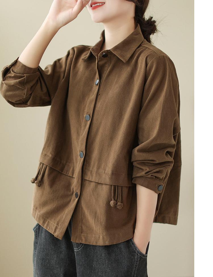 Toma Real 2023 Primavera Nuevo Talla Grande Chaqueta Retro de Algodón con Cuello POLO Suelta Casual Combinable Top