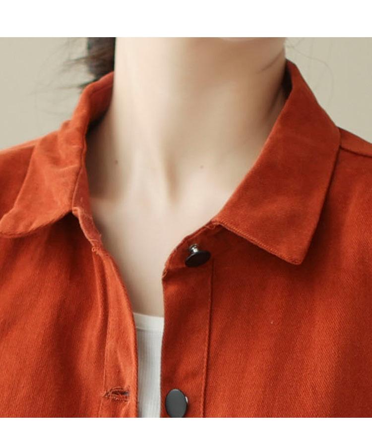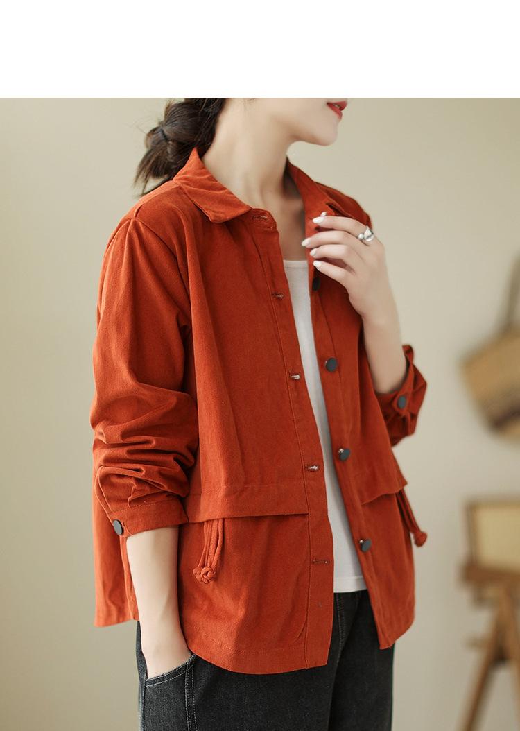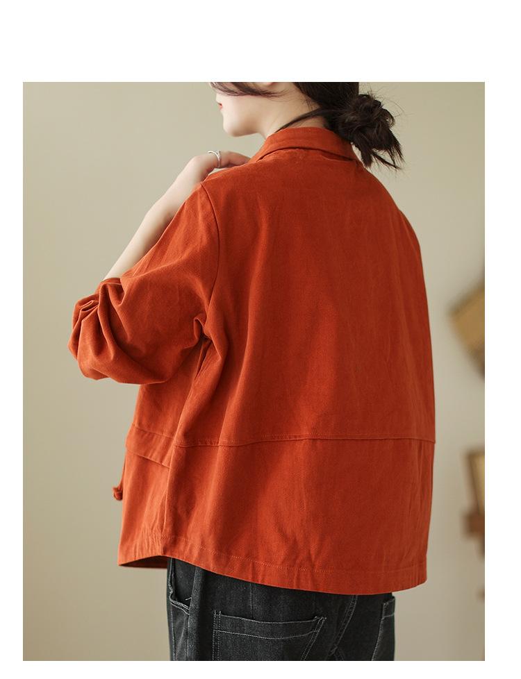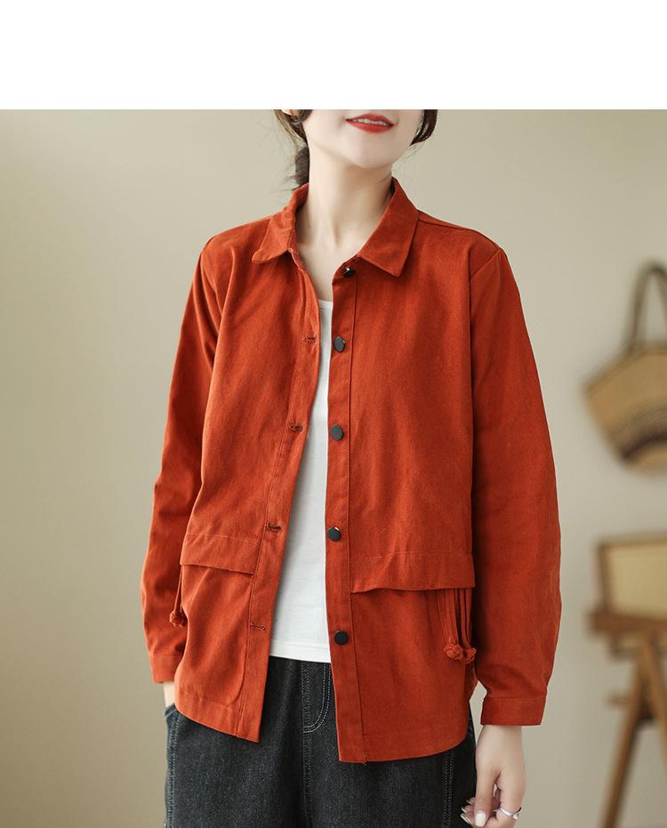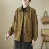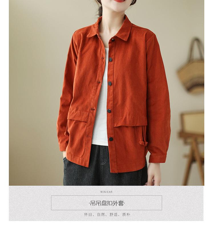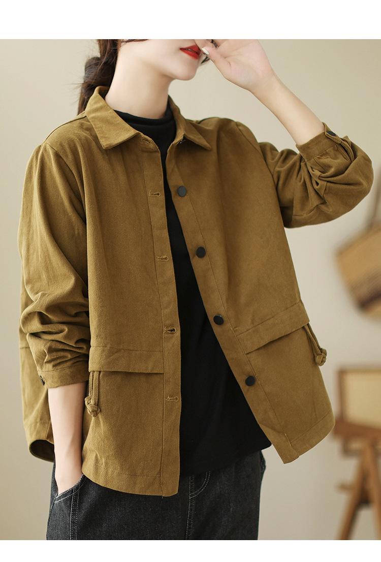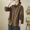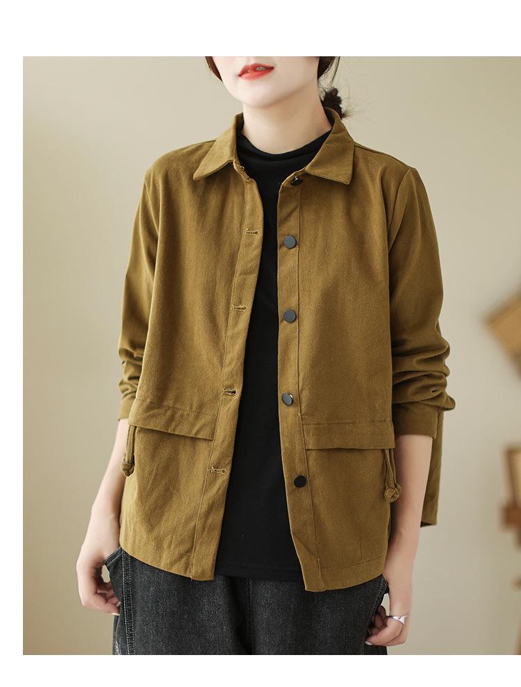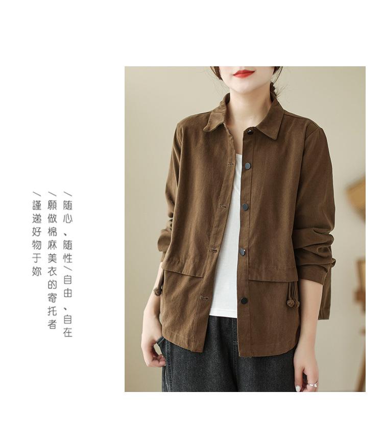 Toma Real 2023 Primavera Nuevo Talla Grande Chaqueta Retro de Algodón con Cuello POLO Suelta Casual Combinable Top