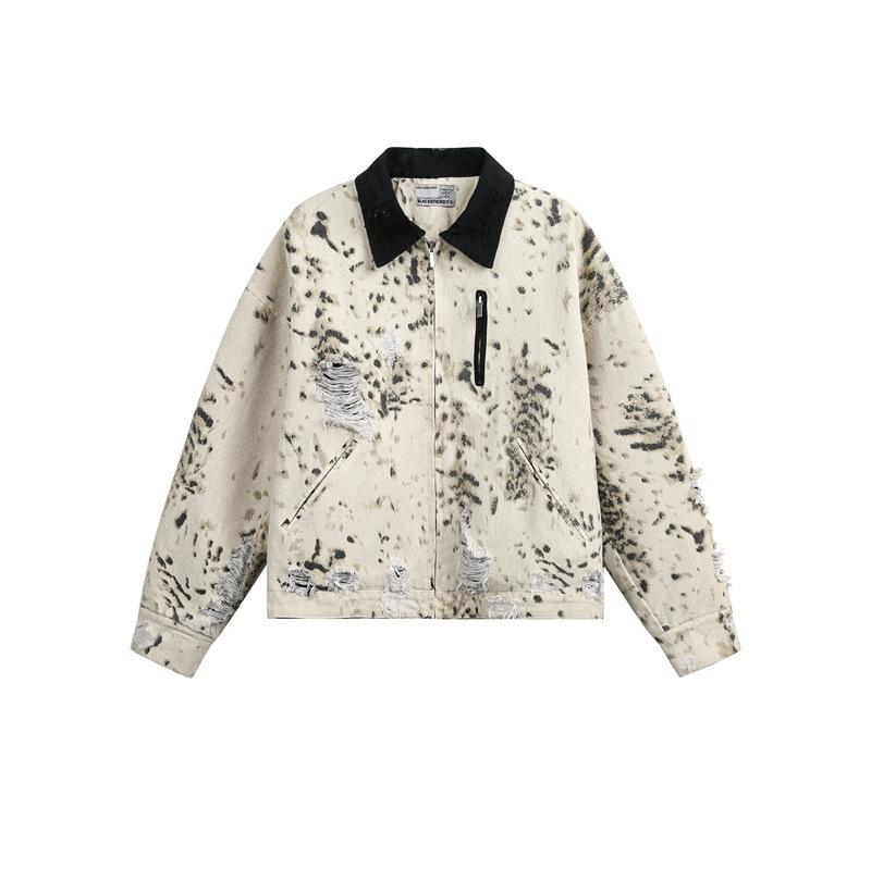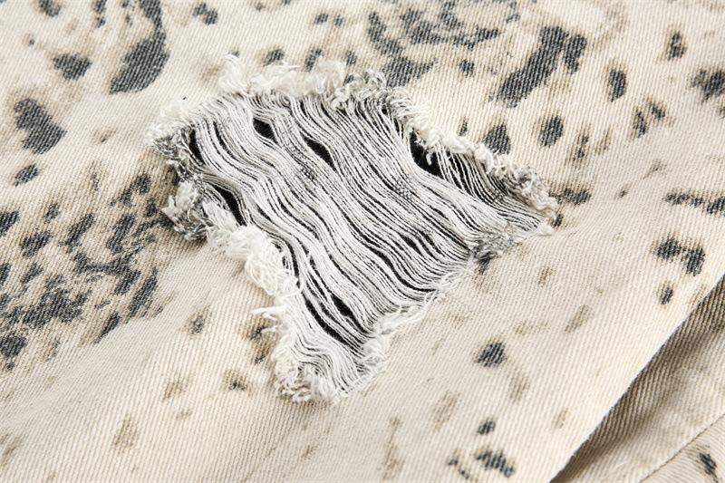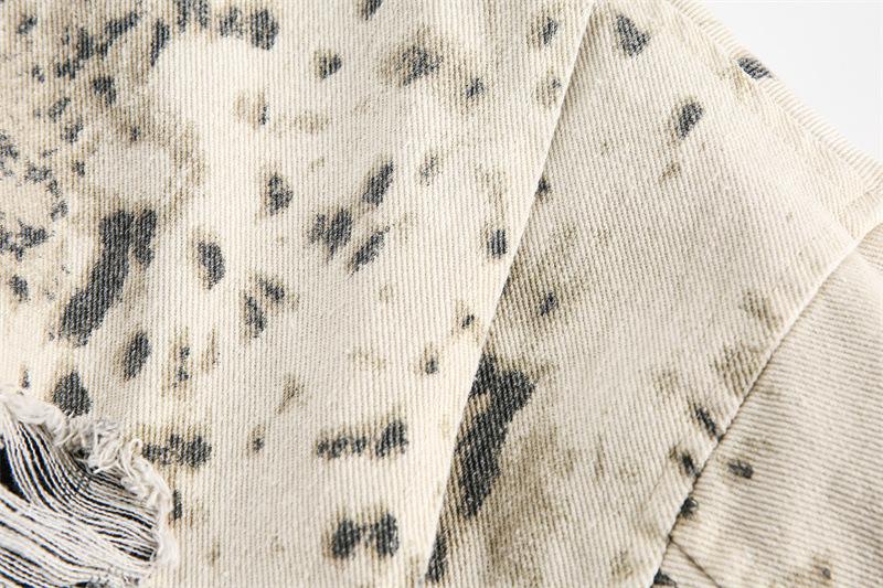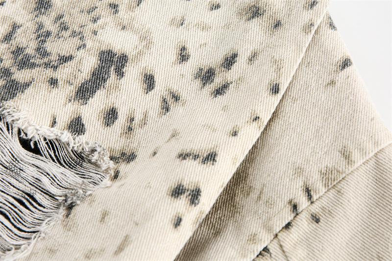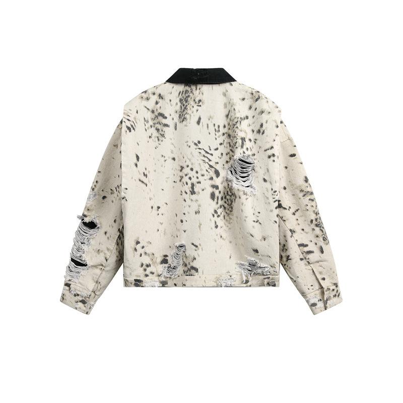 Chaqueta de abrigo rasgada con estampado de leopardo, estilo industrial pesado, estilo retro, de corte limpio, de moda japonesa, primavera de 2025
