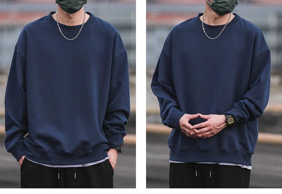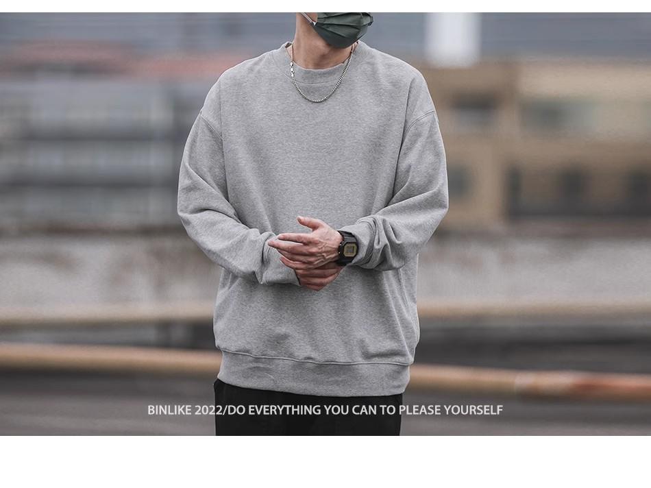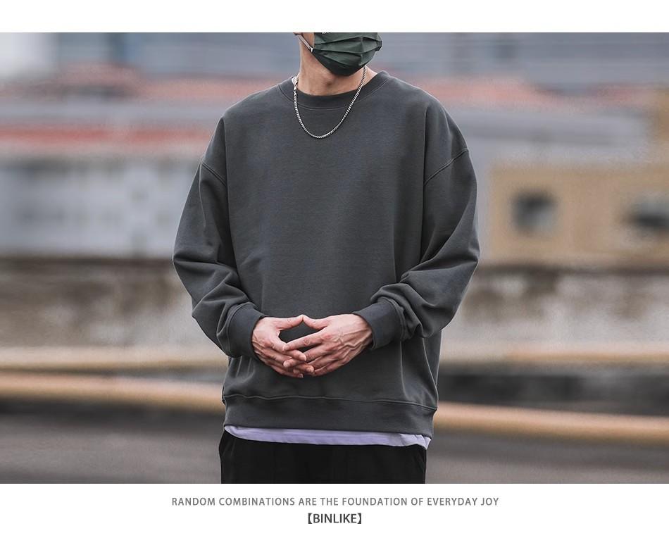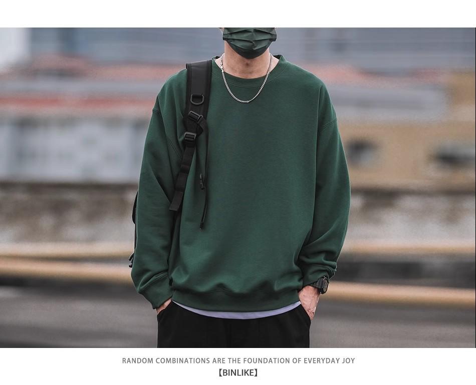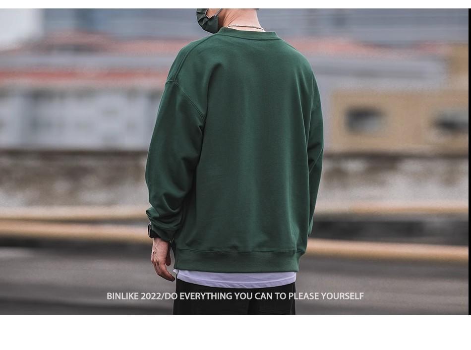 Sudadera de cuello redondo de color sólido pesado de 320 g para hombre y mujer, de marca de moda de otoño, holgada, informal, sencilla, para parejas