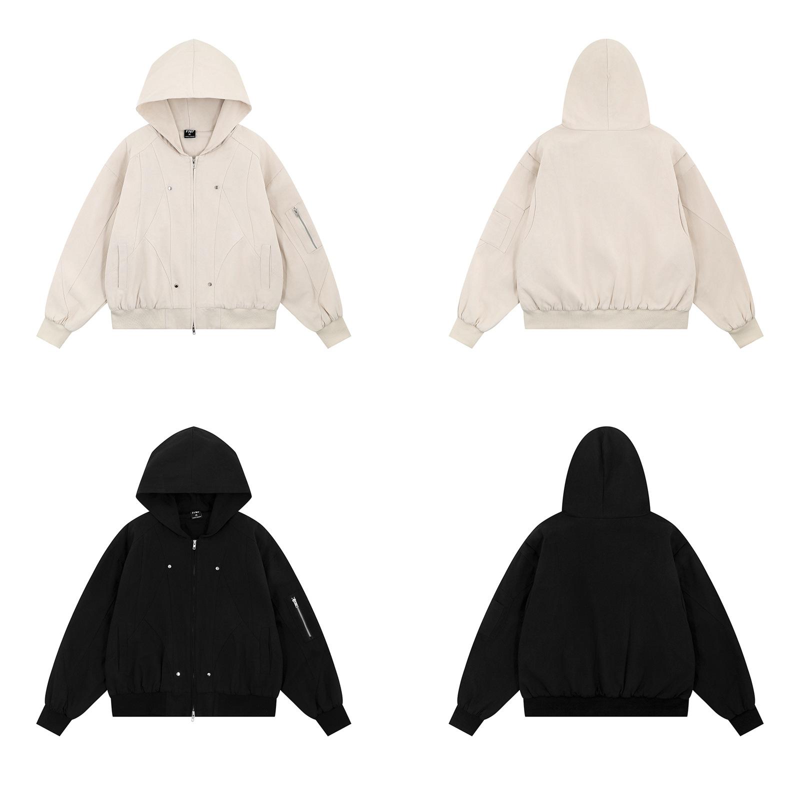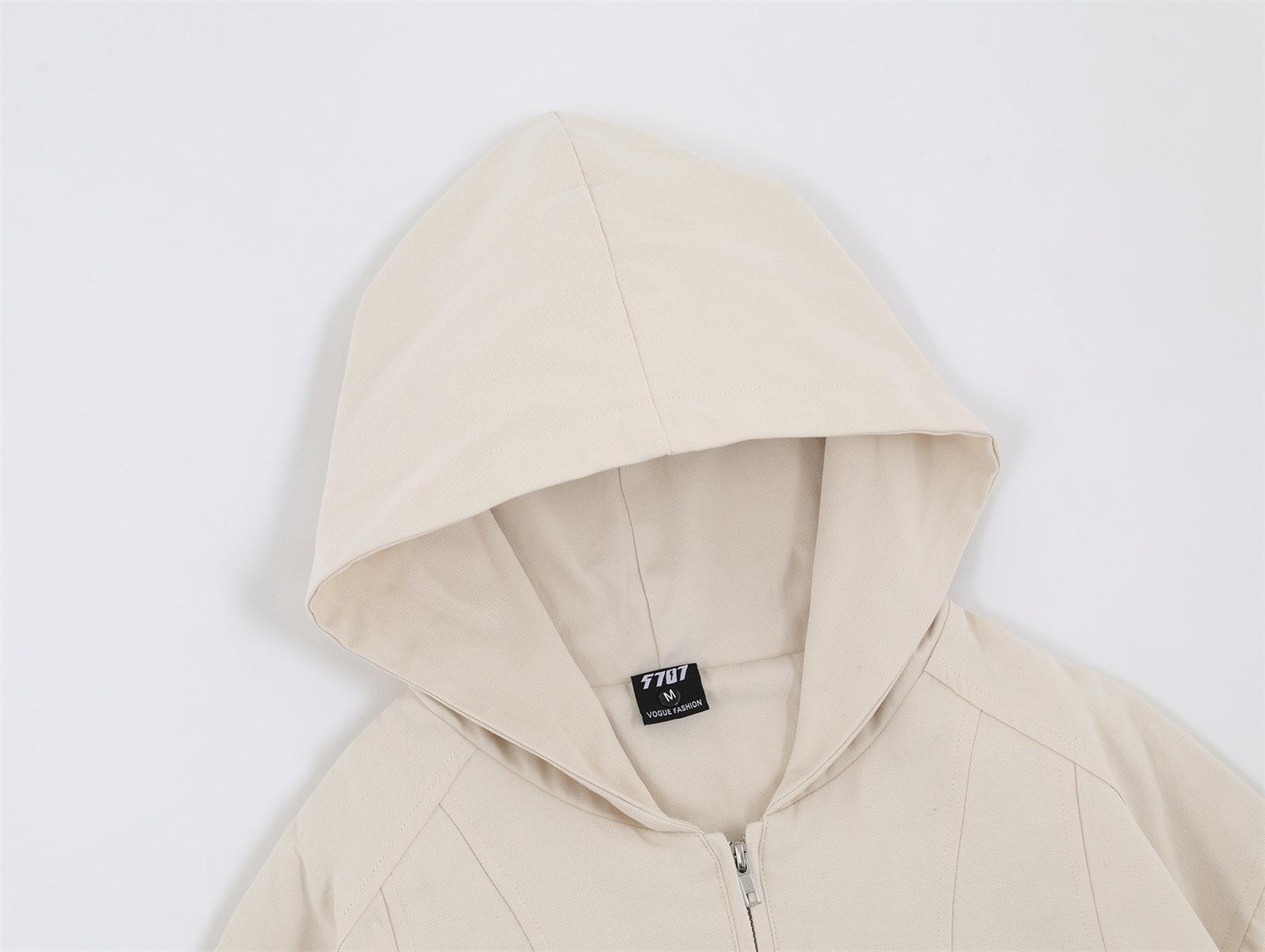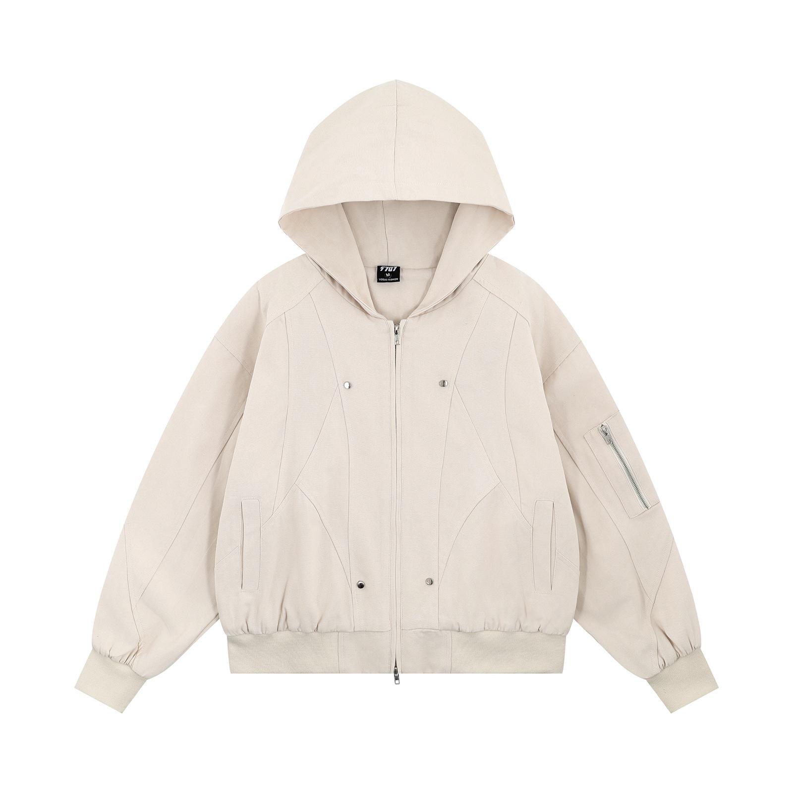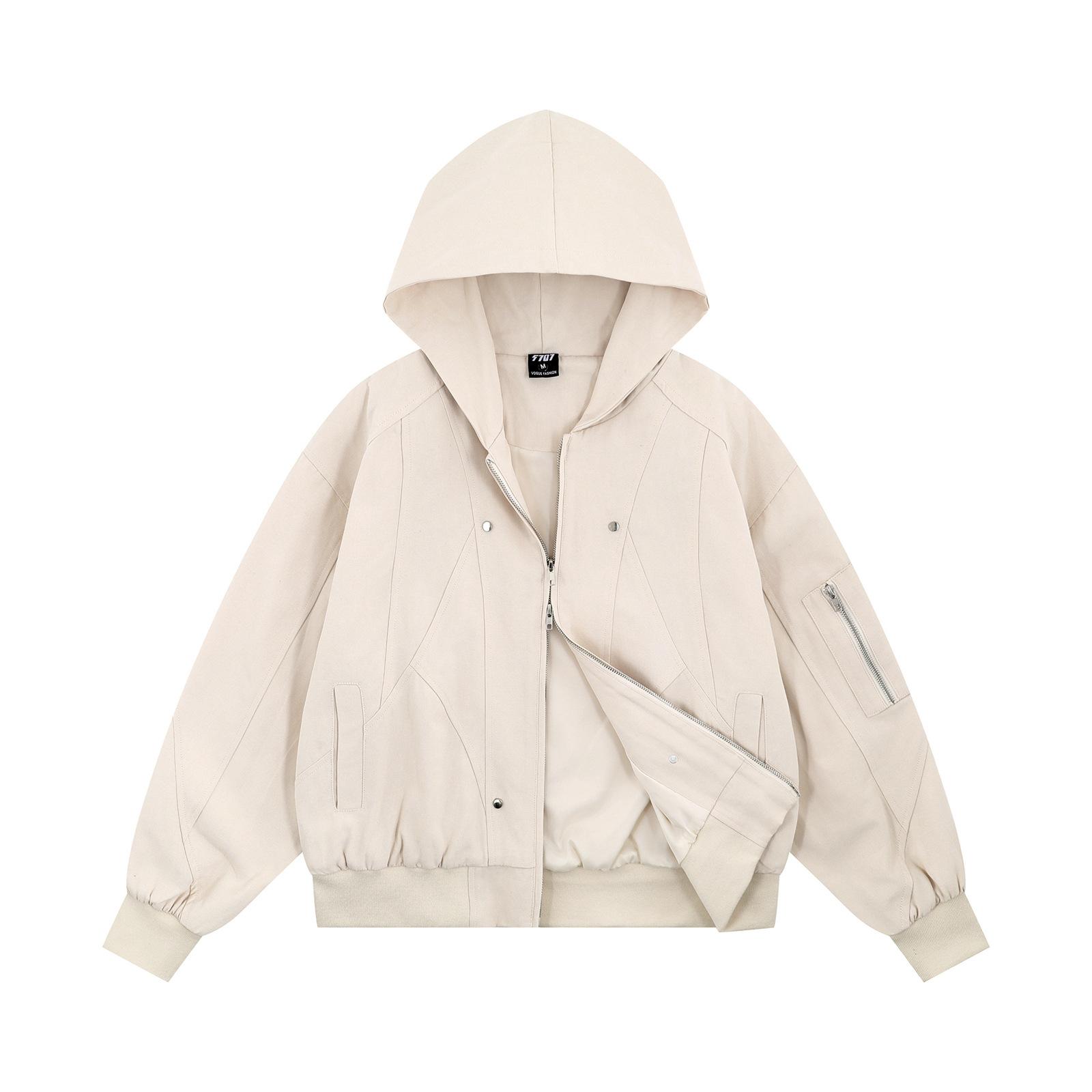 Chaqueta con capucha de color liso con costuras retro estilo americano para hombre y mujer, primavera 2025, con cremallera de doble cabeza, holgada e informal, estilo Duffy.