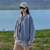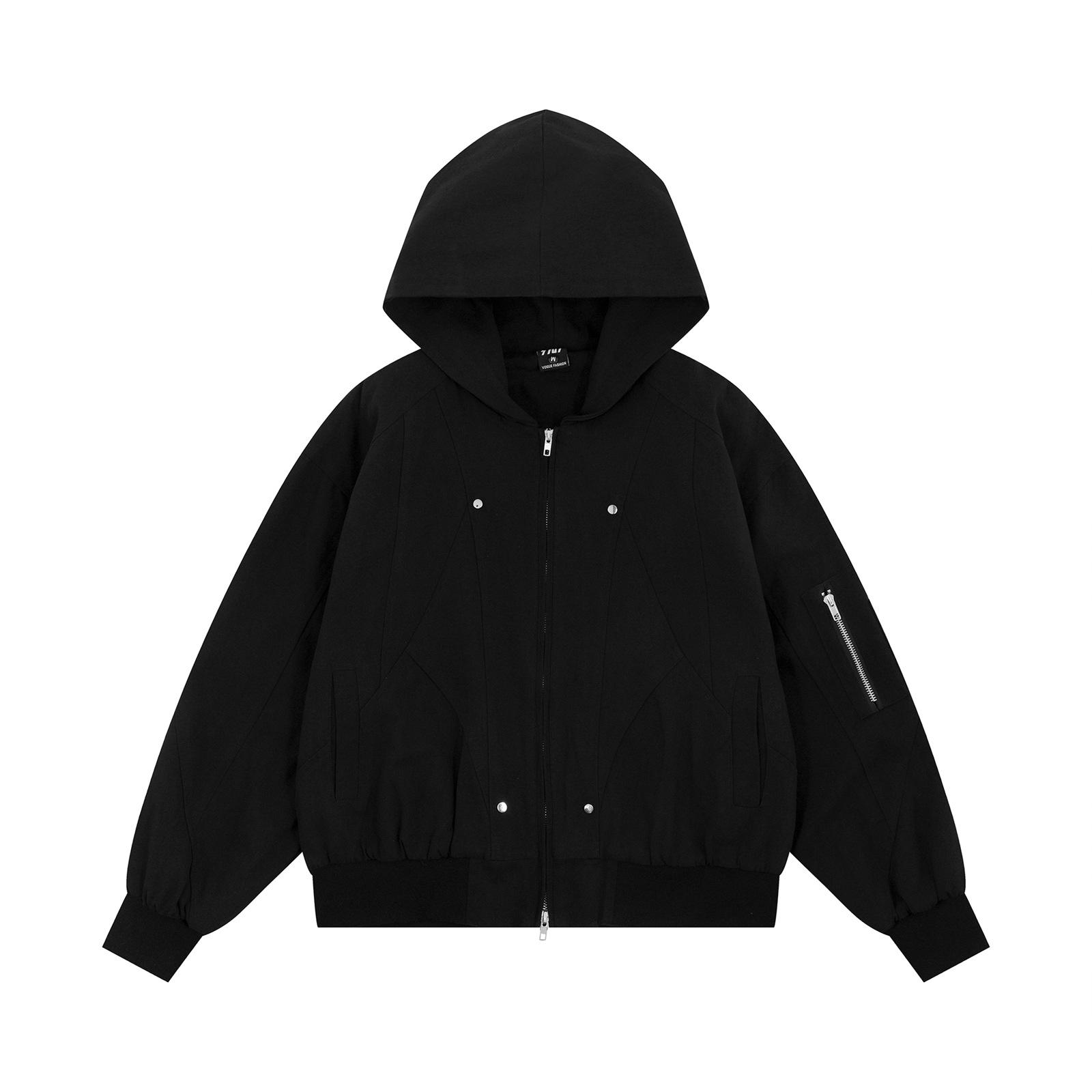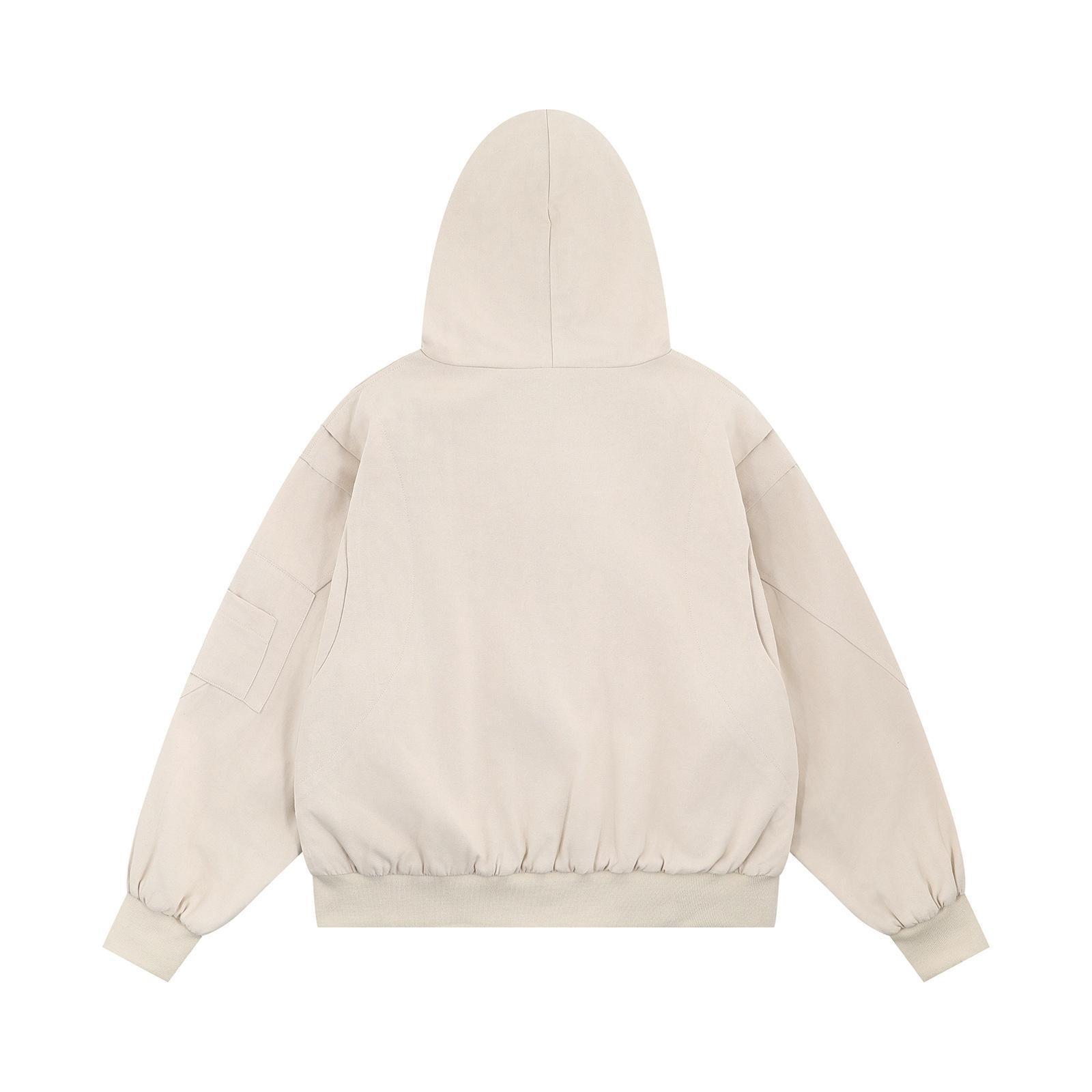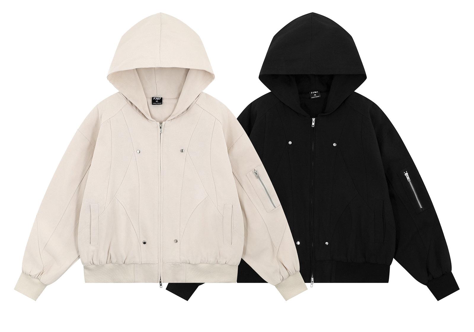 Chaqueta con capucha de color liso con costuras retro estilo americano para hombre y mujer, primavera 2025, con cremallera de doble cabeza, holgada e informal, estilo Duffy.