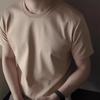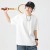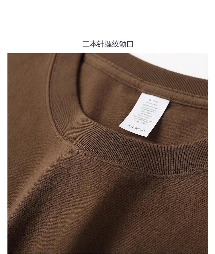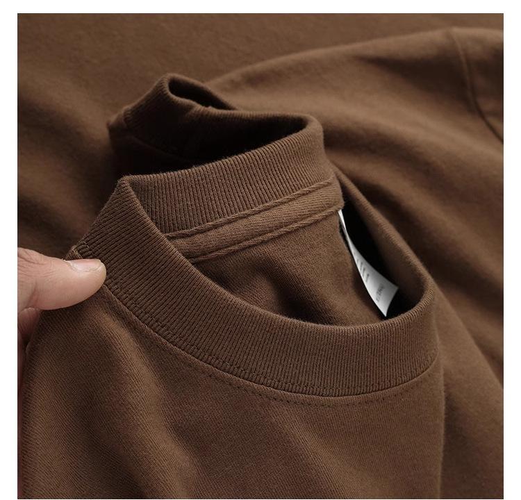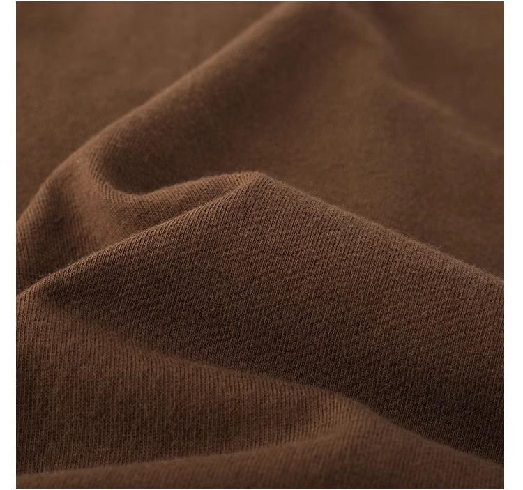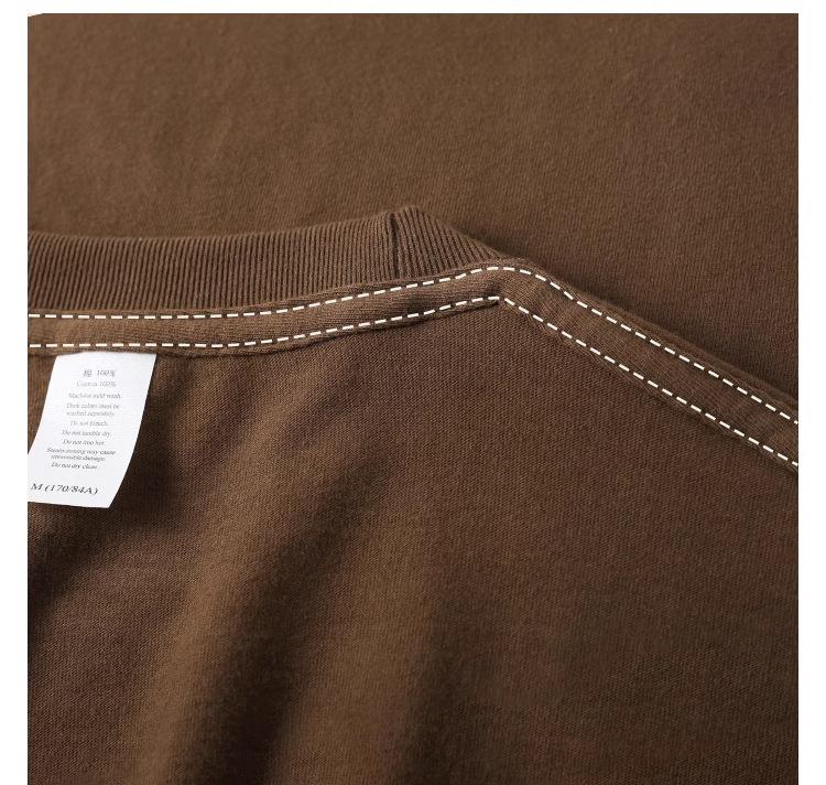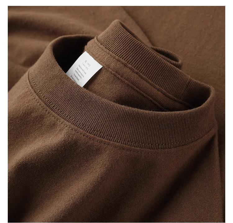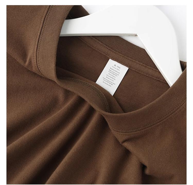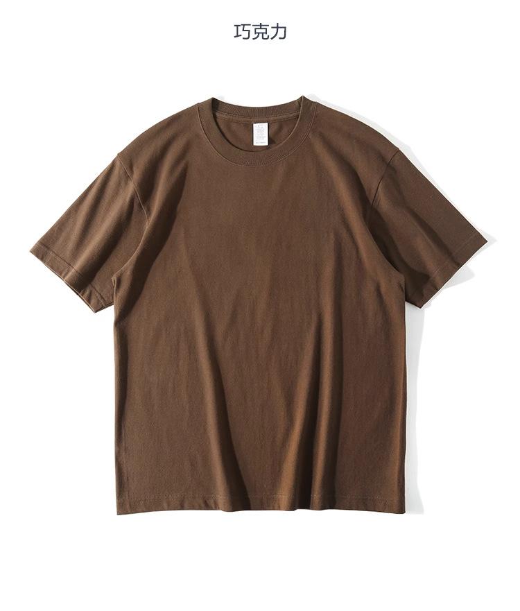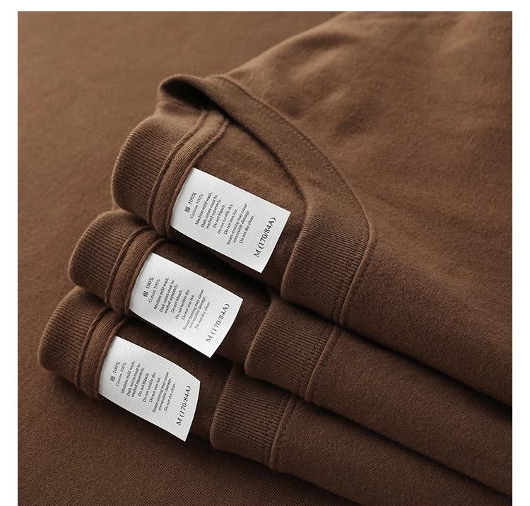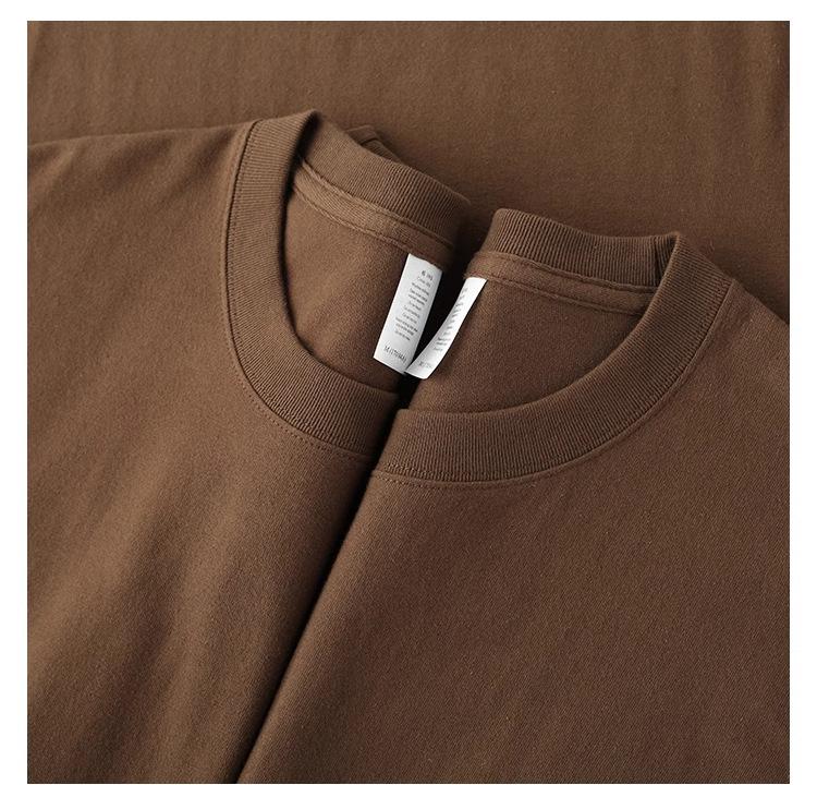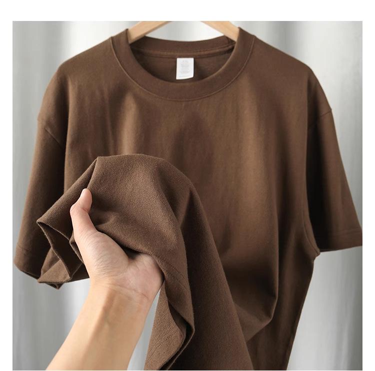 Camiseta retro marrón de algodón peinado grueso de 300 g, cuello redondo y manga corta, para hombre, holgada, informal, para ir al trabajo