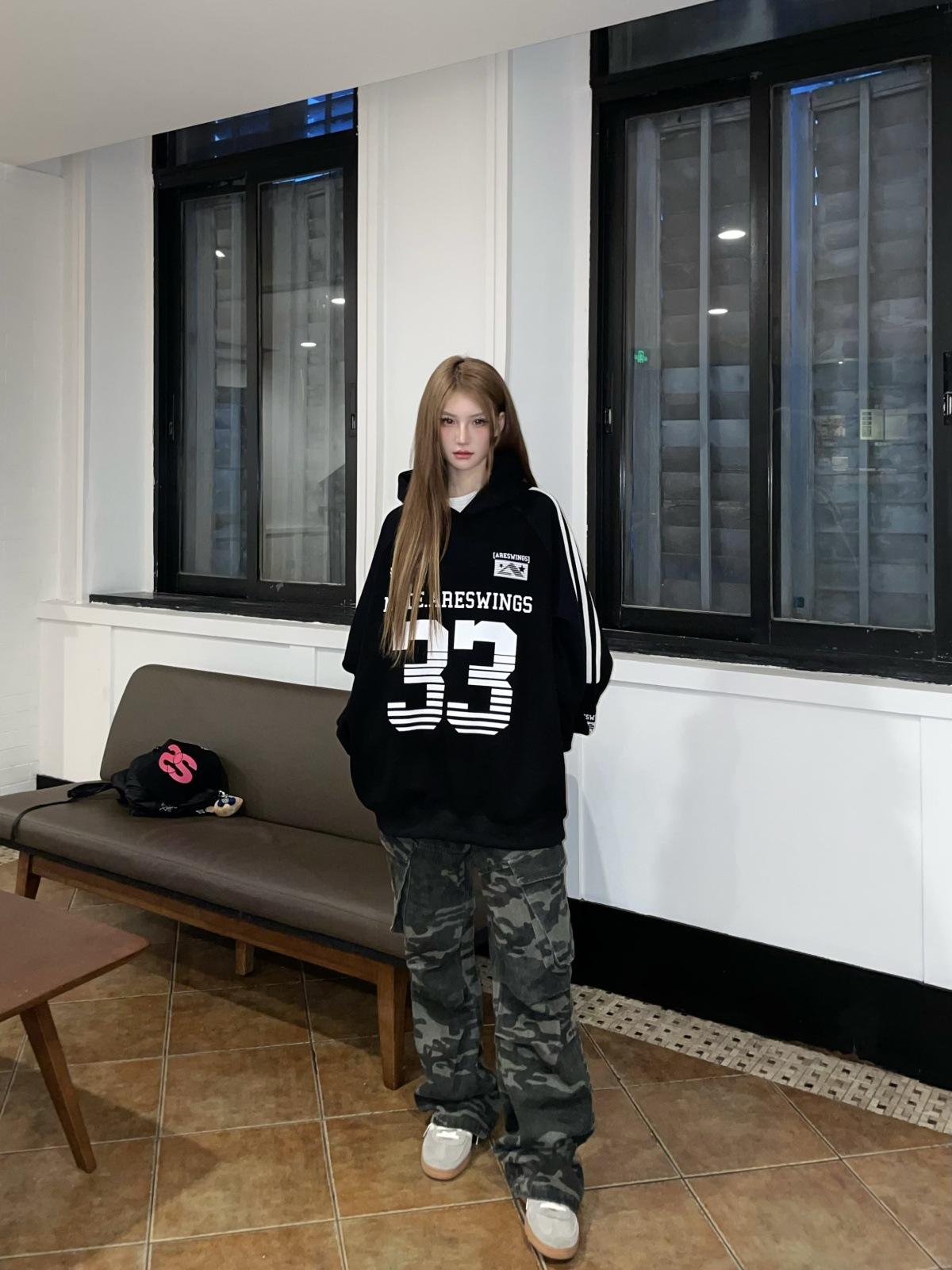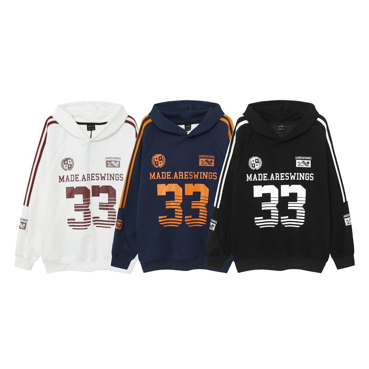 Estilo de Jersey Retro Americano No. Sudadera con capucha digital a rayas 33 para hombre y mujer, top holgado de otoño