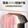 Camiseta de Verano 300g Peso Pesado Algodón Puro Cuello Redondo Manga Corta, Top Unisex de Capa Base Blanca, Estilo Pareja