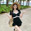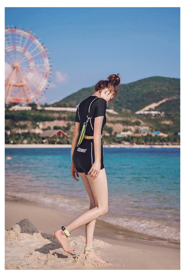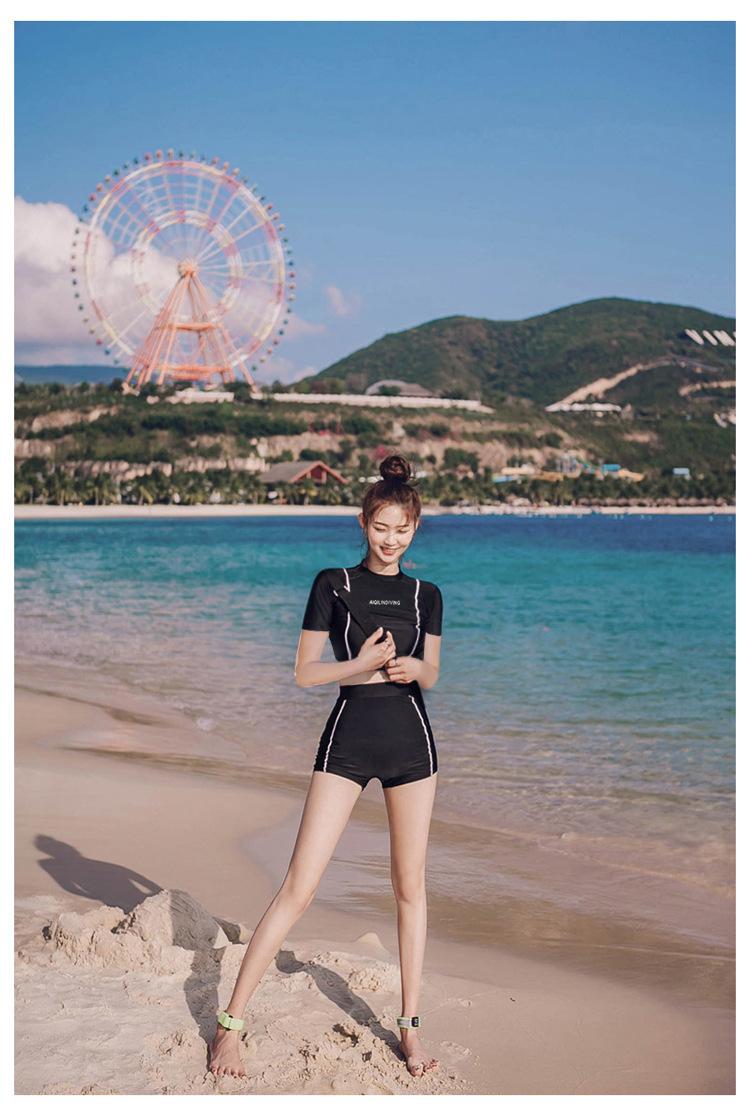 Traje de baño de dos piezas para mujer, deportivo, conservador, para aguas termales, cubre abdomen, adelgazante, natación, estudiante, plano, esnórquel, surf