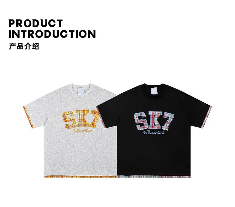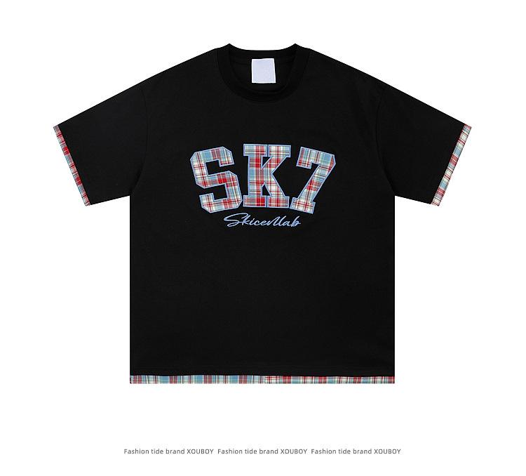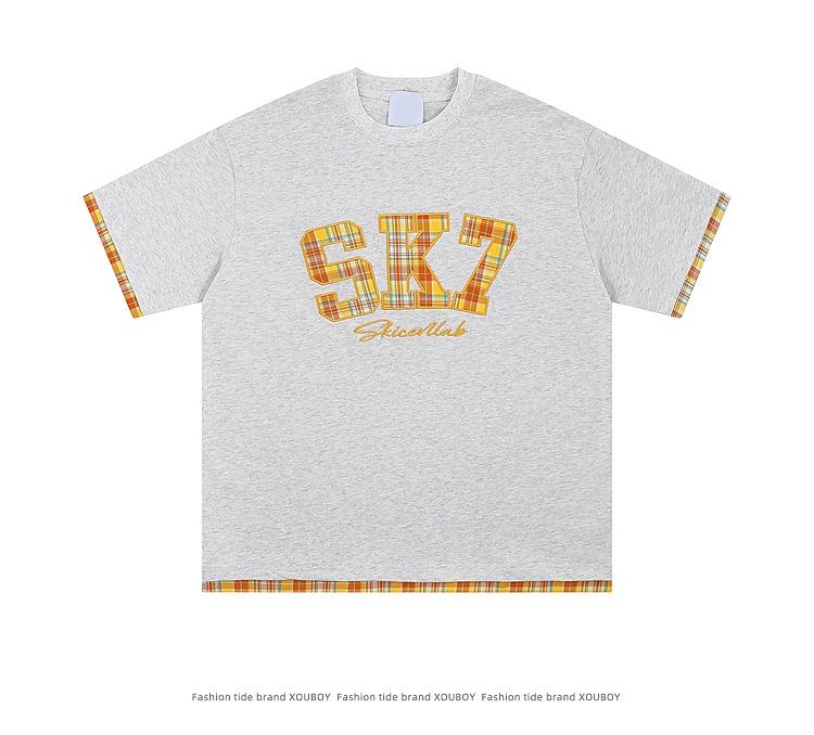Camiseta de manga corta con letras bordadas y pegatinas para hombre y mujer, primavera y verano 2025, nuevo diseño retro urbano, manga corta, holgada.